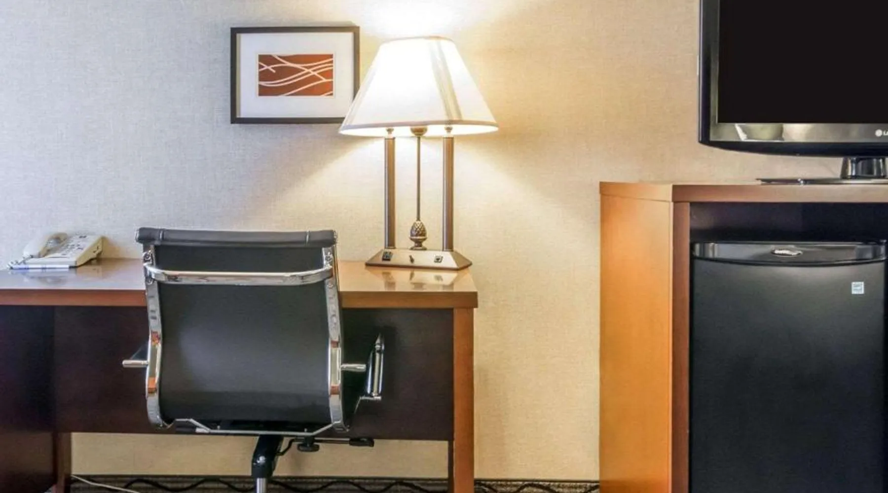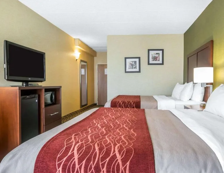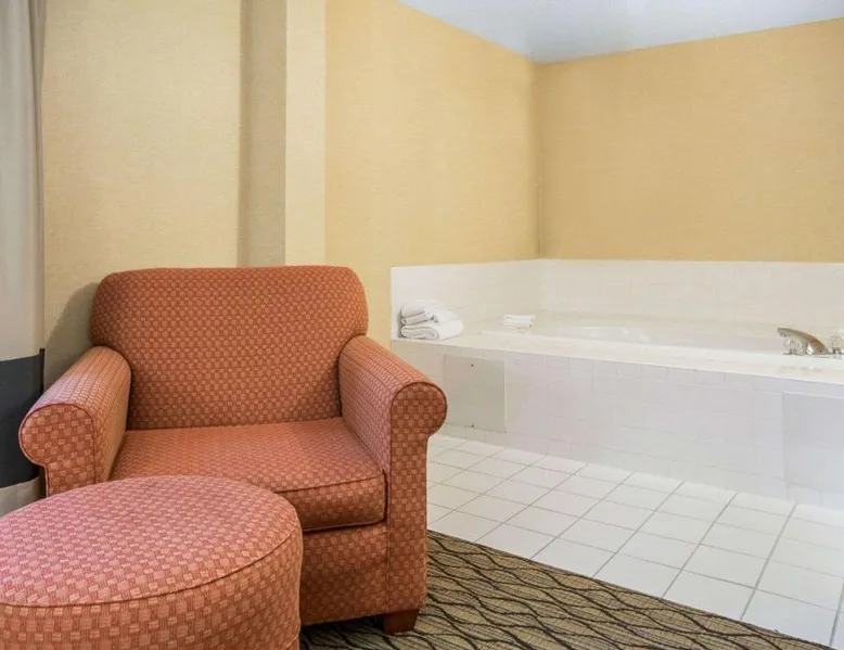 Comfortable Accommodations: Comfort Inn Winchester in Winchester offers 2-star rooms with free WiFi and an indoor swimming pool. Guests can relax in the business area or take advantage of the full-day security and bicycle parking. Convenient Facilities: The inn features a elevator, allowing easy access to all floors. Additional amenities include a tea and coffee maker, refrigerator, and microwave, ensuring a pleasant stay. Local Attractions: Fort Boonesborough State Park is 9.9 mi away, while Mets Center and Hunt-Morgan House are 16 mi from the property. Other attractions include Ashland The Henry Clay Estate and Rupp Arena, each 19 mi distant. Blue Grass Airport is 24 mi away. This room features a flat-screen TV with cable channels and a seating area.