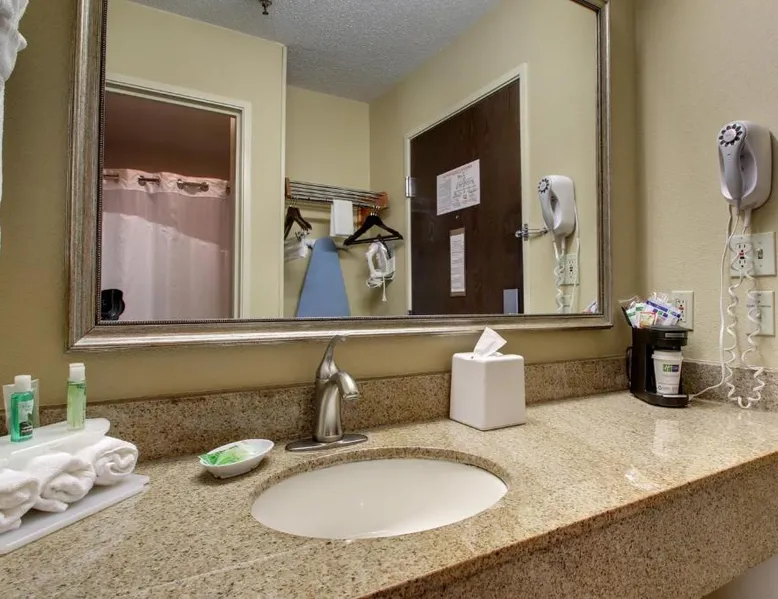 Comfortable Accommodations: Holiday Inn Express Hotel Fort Campbell-Oak Grove by IHG in Oak Grove offers family rooms with air-conditioning, private bathrooms, and modern amenities including a work desk and TV. Exceptional Facilities: Guests enjoy an indoor swimming pool, free WiFi, and a solarium. Additional facilities include a elevator, 24-hour front desk, housekeeping, business area, outdoor seating, picnic area, and barbecue facilities. Convenient Location: Located 64 mi from Nashville International Airport, the hotel is near attractions such as Fort Defiance Civil War Park & Interpretive Center (12 mi) and Customs House Museum and Cultural Center (14 mi). Free on-site parking is available. Guest Satisfaction: Highly rated for its breakfast, attentive staff, and convenient location, the hotel ensures a pleasant stay for all visitors. Bed type and smoking preferences are subject to availability and cannot be guaranteed.
