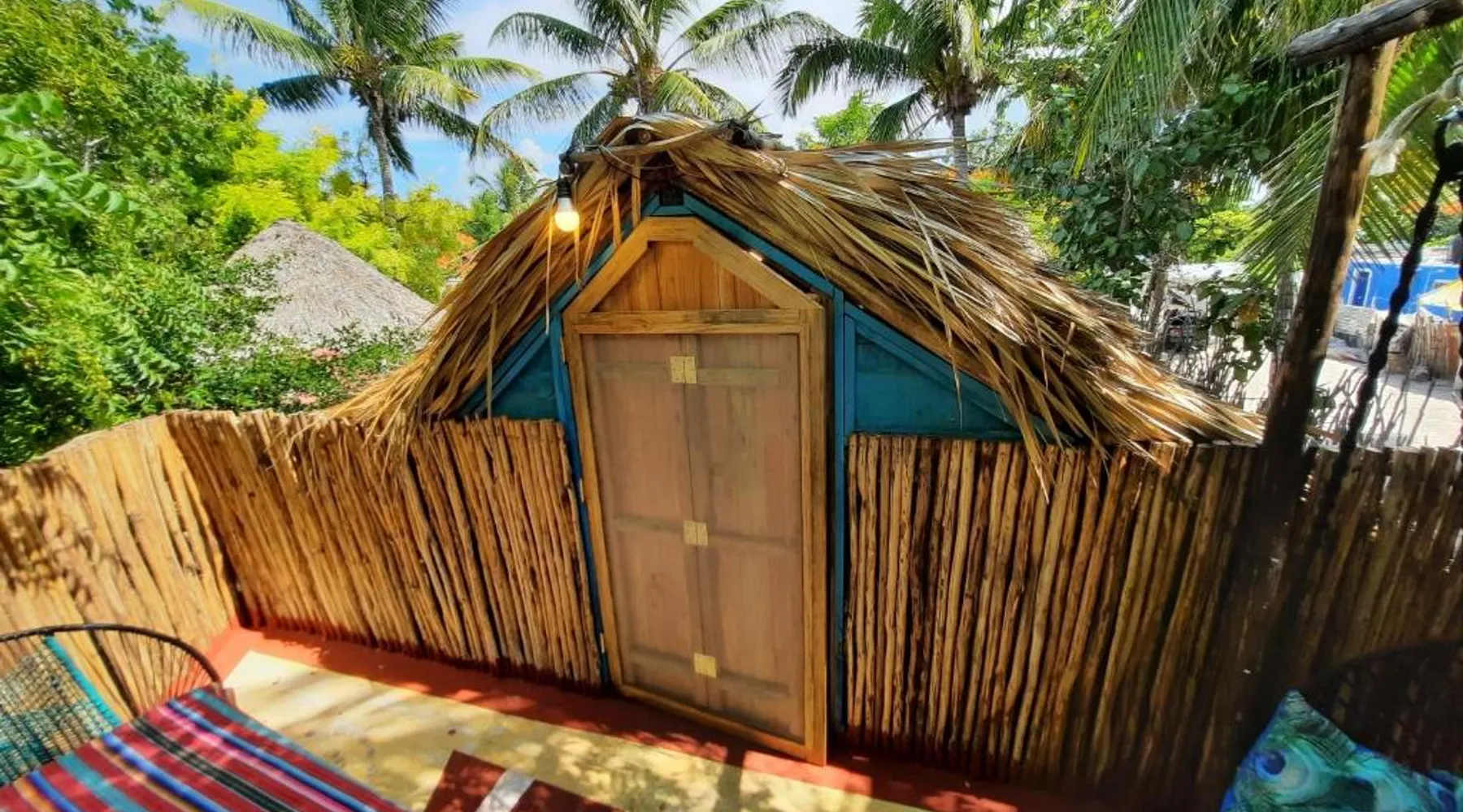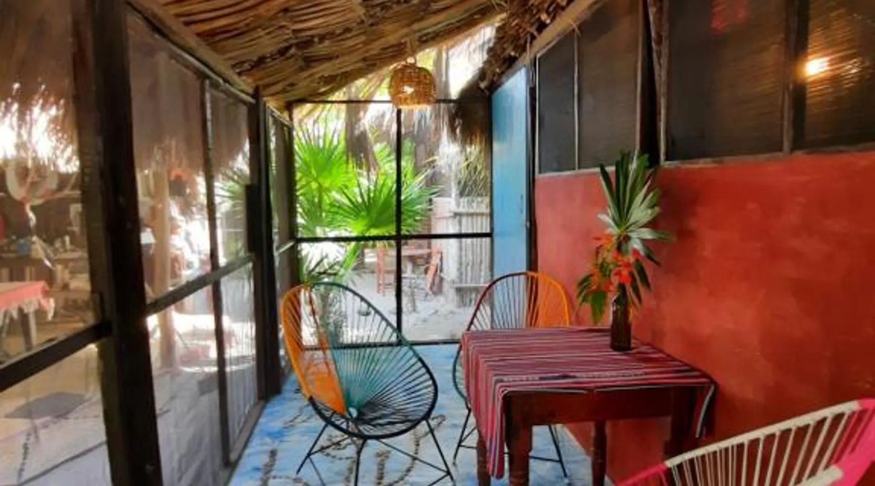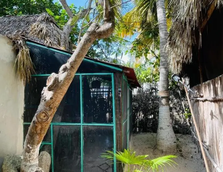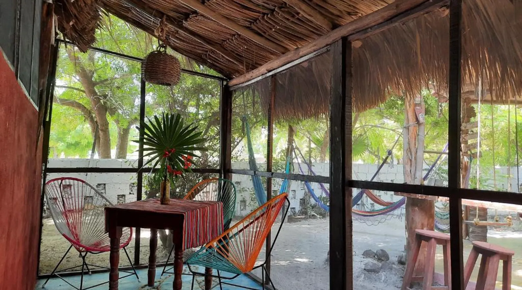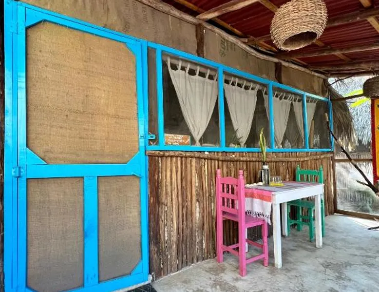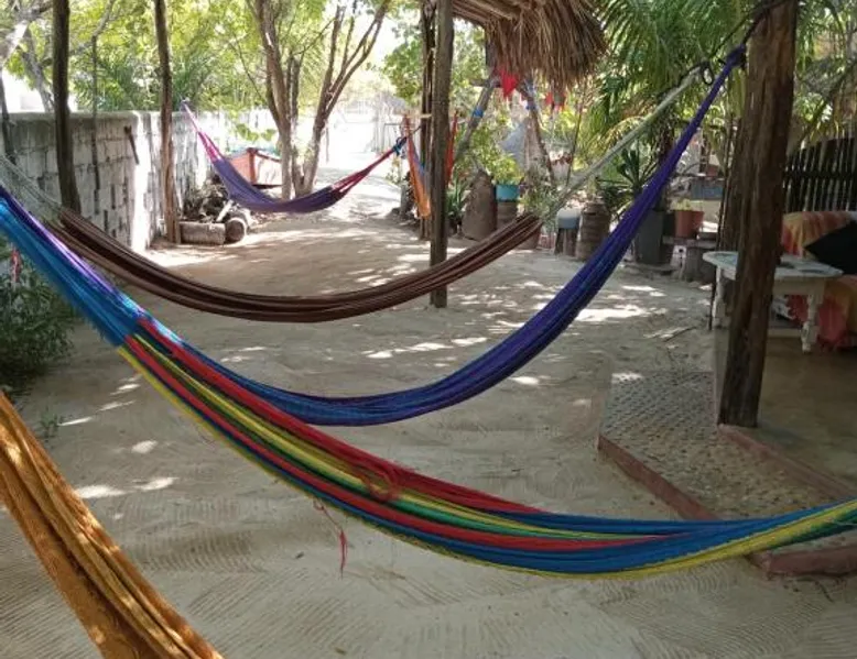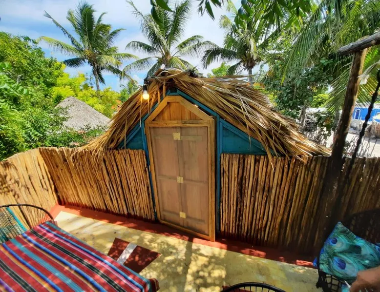 Casa Jade offers you a stay with a total connection with nature. We offer ecobungalows that are private spaces for our guests, with private bathrooms in some of the rooms. In the common area you can enjoy walking on the sand, hanging out in the hammocks, going to the beach who is located 656 feet from Casa Jade or playing some table games. We recommend tour services in the Rio Lagartos biosphere. We also have space to park your vehicles in our private space or in front of the property. We offer breakfasts and dinners, prepared at the moment with fresh products with previous reservation. In Casa Jade you do not have the option to pay by card, only cash. There is no ATM in Las Coloradas, but a Hotel where you can get Cash. The closest ATM is in Rio Lagartos. This triple room has a private entrance and a private exterior bathroom.
