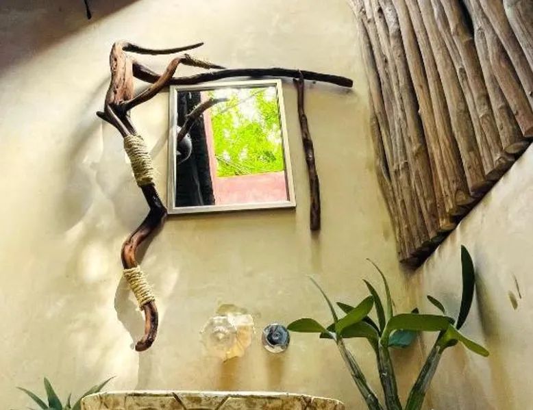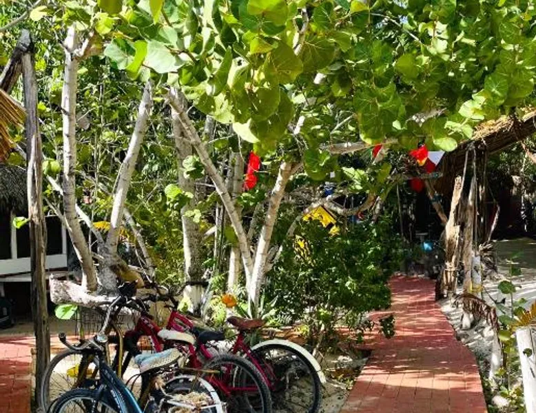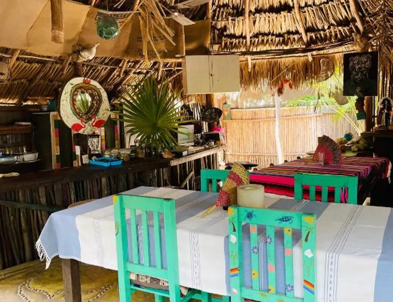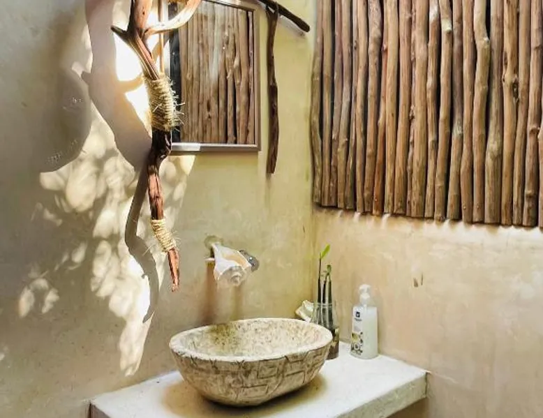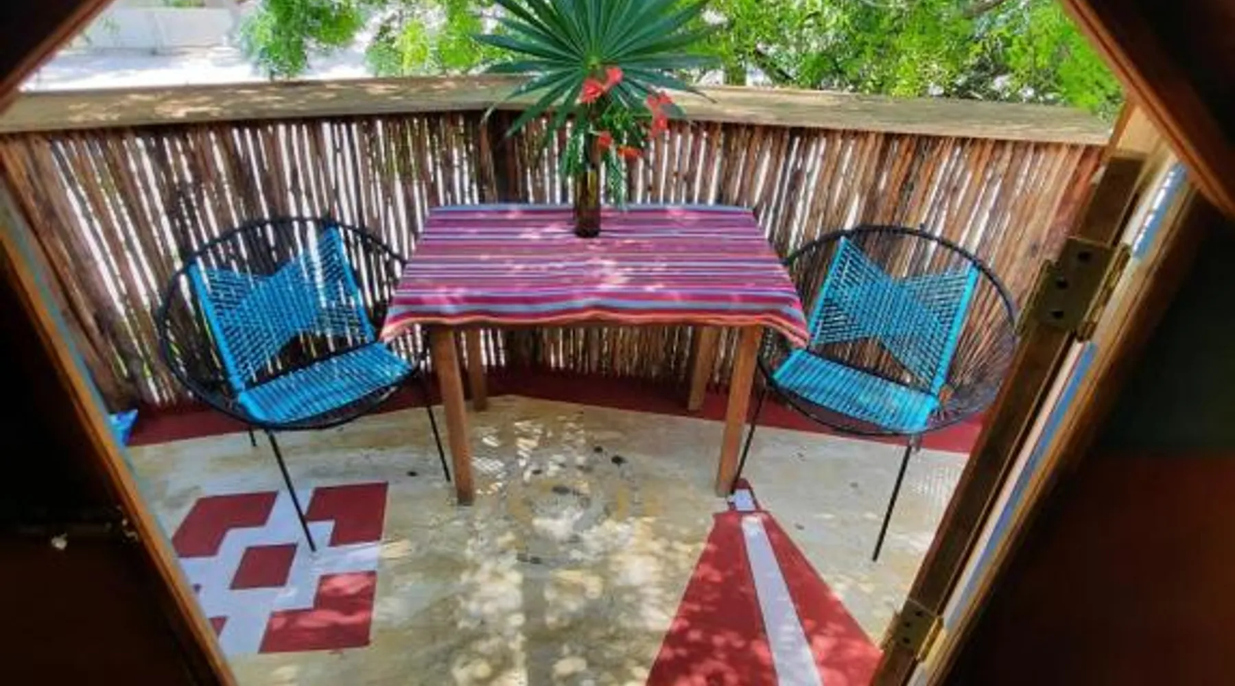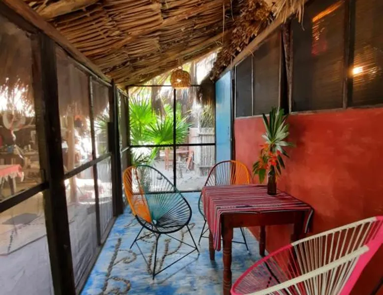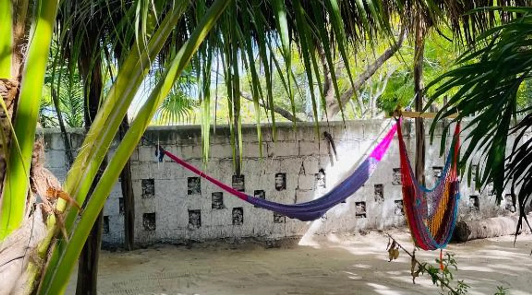 Casa Jade offers you a stay with a total connection with nature. We offer ecobungalows that are private spaces for our guests, with private bathrooms in some of the rooms. In the common area you can enjoy walking on the sand, hanging out in the hammocks, going to the beach who is located 656 feet from Casa Jade or playing some table games. We recommend tour services in the Rio Lagartos biosphere. We also have space to park your vehicles in our private space or in front of the property. We offer breakfasts and dinners, prepared at the moment with fresh products with previous reservation. In Casa Jade you do not have the option to pay by card, only cash. There is no ATM in Las Coloradas, but a Hotel where you can get Cash. The closest ATM is in Rio Lagartos. This triple room has a private entrance and a private exterior bathroom.