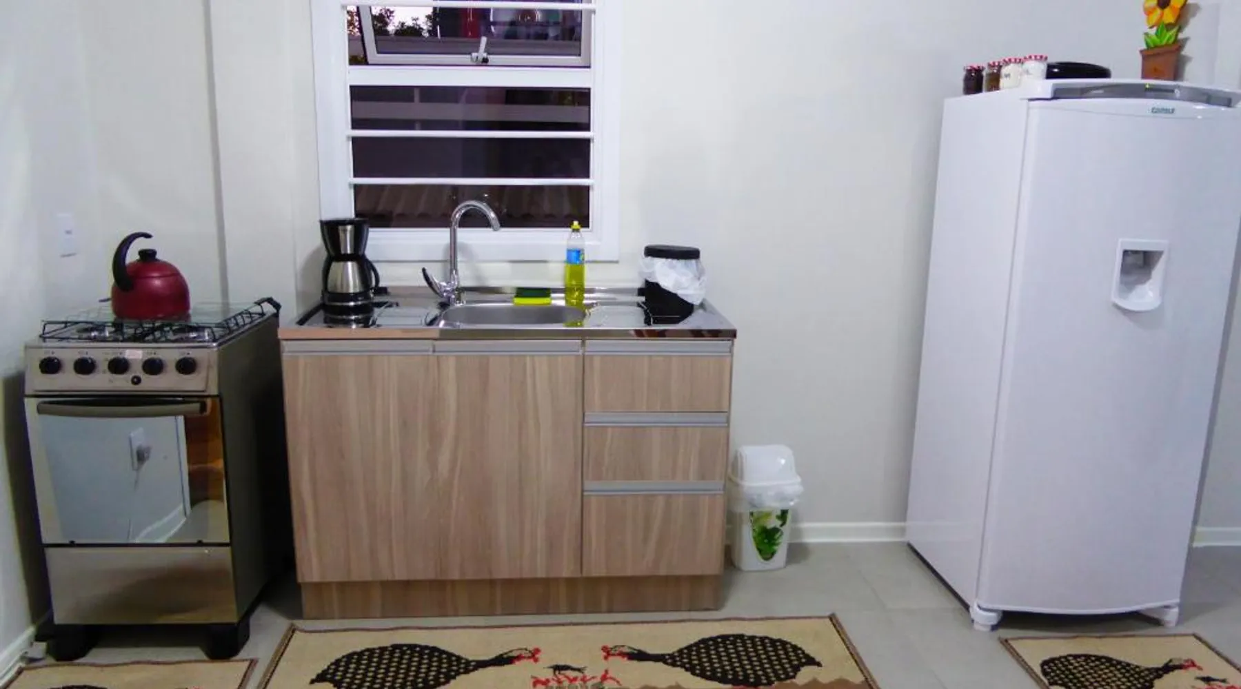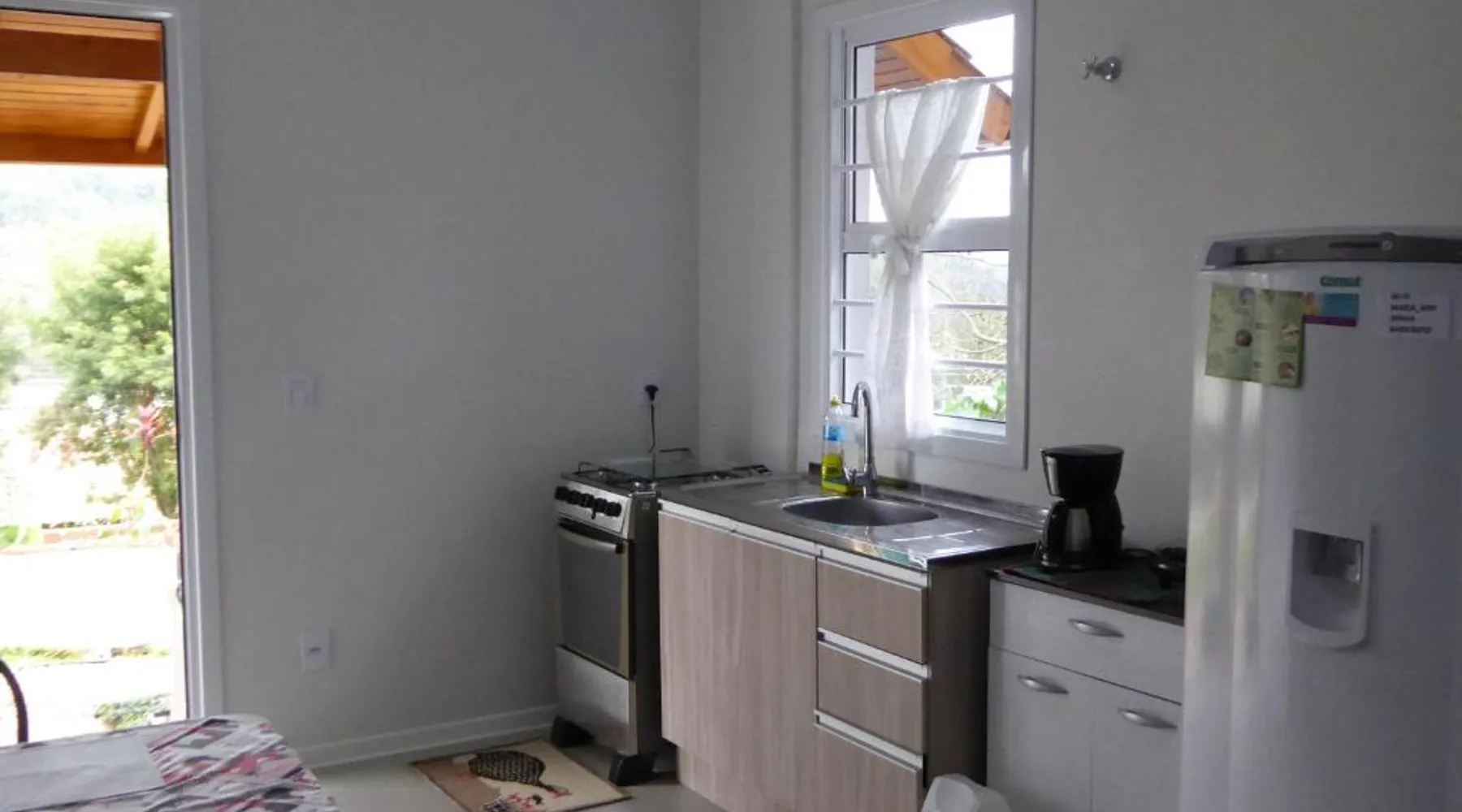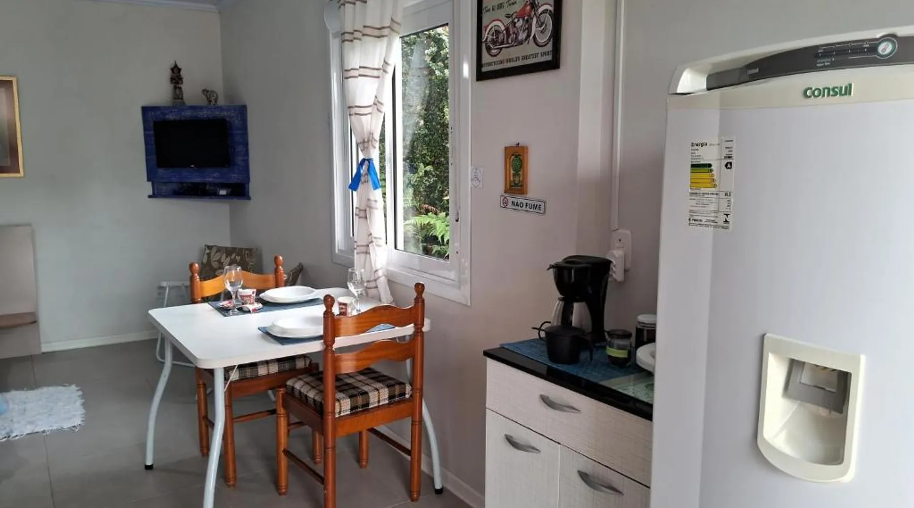 Modern Comforts: Villa Holística in Nova Petrópolis offers a recently renovated apartment with air-conditioning, a terrace, balcony, and a fully equipped kitchenette. Guests enjoy free WiFi, a private bathroom, and a dining area. Outdoor Spaces: The property features a sun terrace and a garden with garden and mountain views. An outdoor seating area and family rooms provide relaxing spaces. Convenient Amenities: Free on-site private parking is available. Additional amenities include a TV, coffee machine, and free toiletries. Local Attractions: Located 22 mi from Hugo Cantergiani Regional Airport, Villa Holística is near Imigrant Valley Park (2.4 mi), Malakoff Mount (9.3 mi), and Gramado Bus Station (20 mi). Walking tours and hiking are popular activities. Featuring a private entrance, this air-conditioned apartment consists of a kitchen, 1 bedroom and 1 bathroom with a shower and a hairdryer. Guests can make meals in the kitchen that is equipped with a stovetop, a refrigerator, kitchenware and an oven. Boasting a terrace with garden views, this apartment also provides a tea and coffee maker and a flat-screen TV with satellite channels. The unit offers 2 beds.