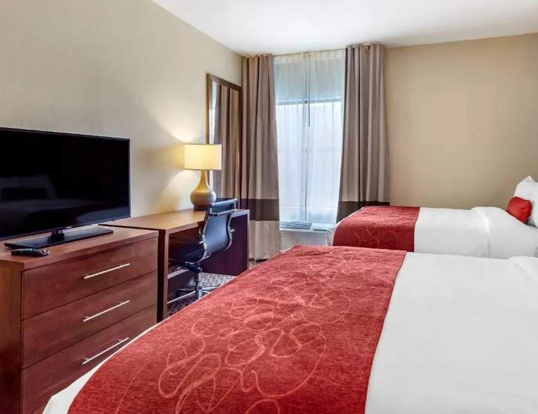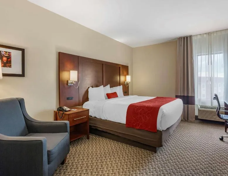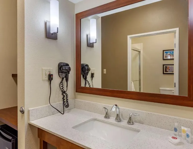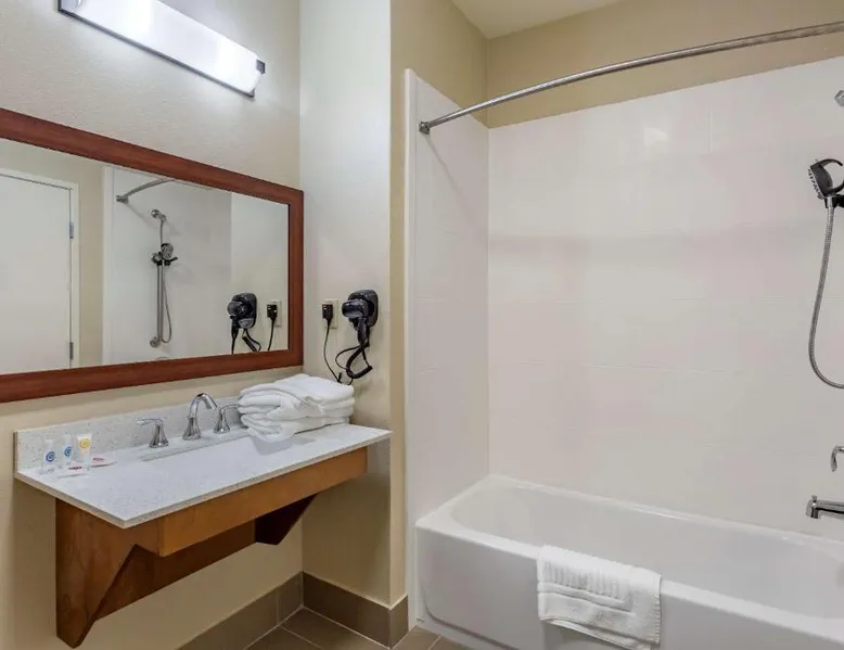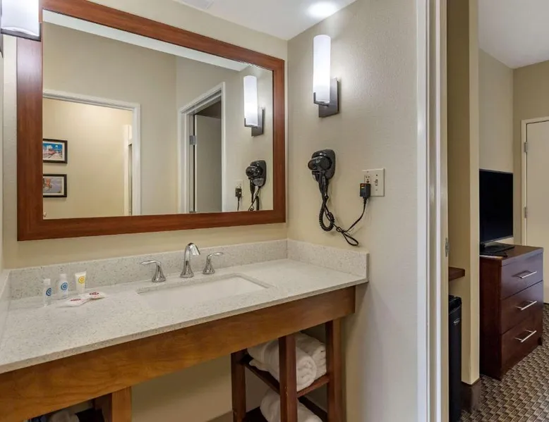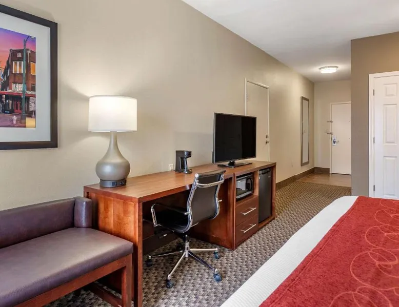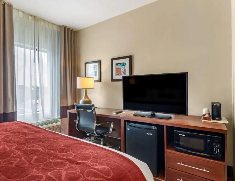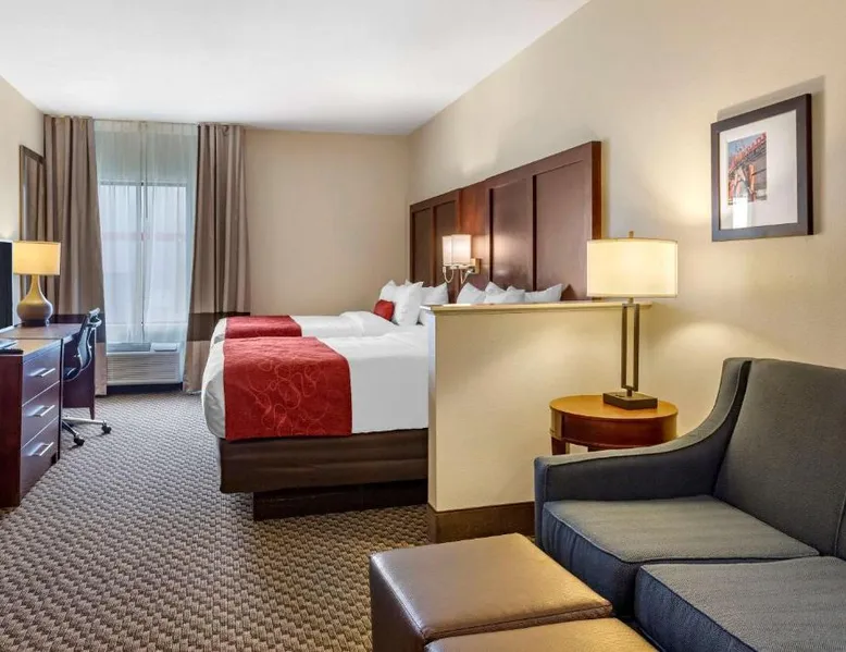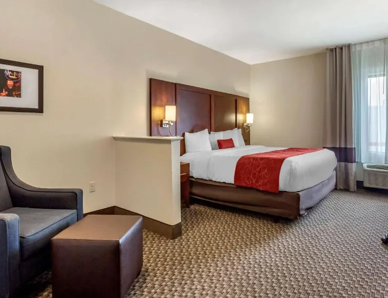 Comfortable Accommodations: Comfort Suites Cordova in Cordova offers family rooms with air-conditioning, refrigerators, work desks, seating areas, microwaves, and TVs. Each room includes a bath and shower. Exceptional Facilities: Guests enjoy an indoor swimming pool and free WiFi. The hotel provides a 24-hour front desk and free on-site parking. Convenient Location: Located 17 mi from Memphis International Airport, the hotel is close to attractions such as the Fire Museum of Memphis (17 mi), Brown Park (17 mi), and Graceland (22 mi). The air-conditioned suite is furnished with a desk and a seating area. The unit has 1 bed.