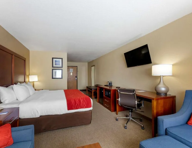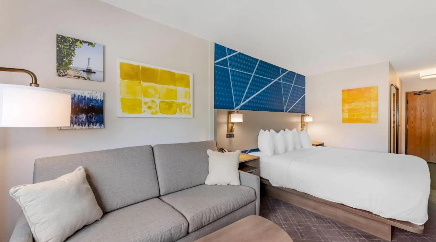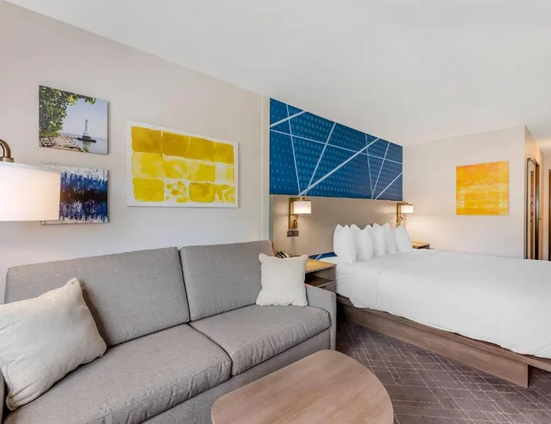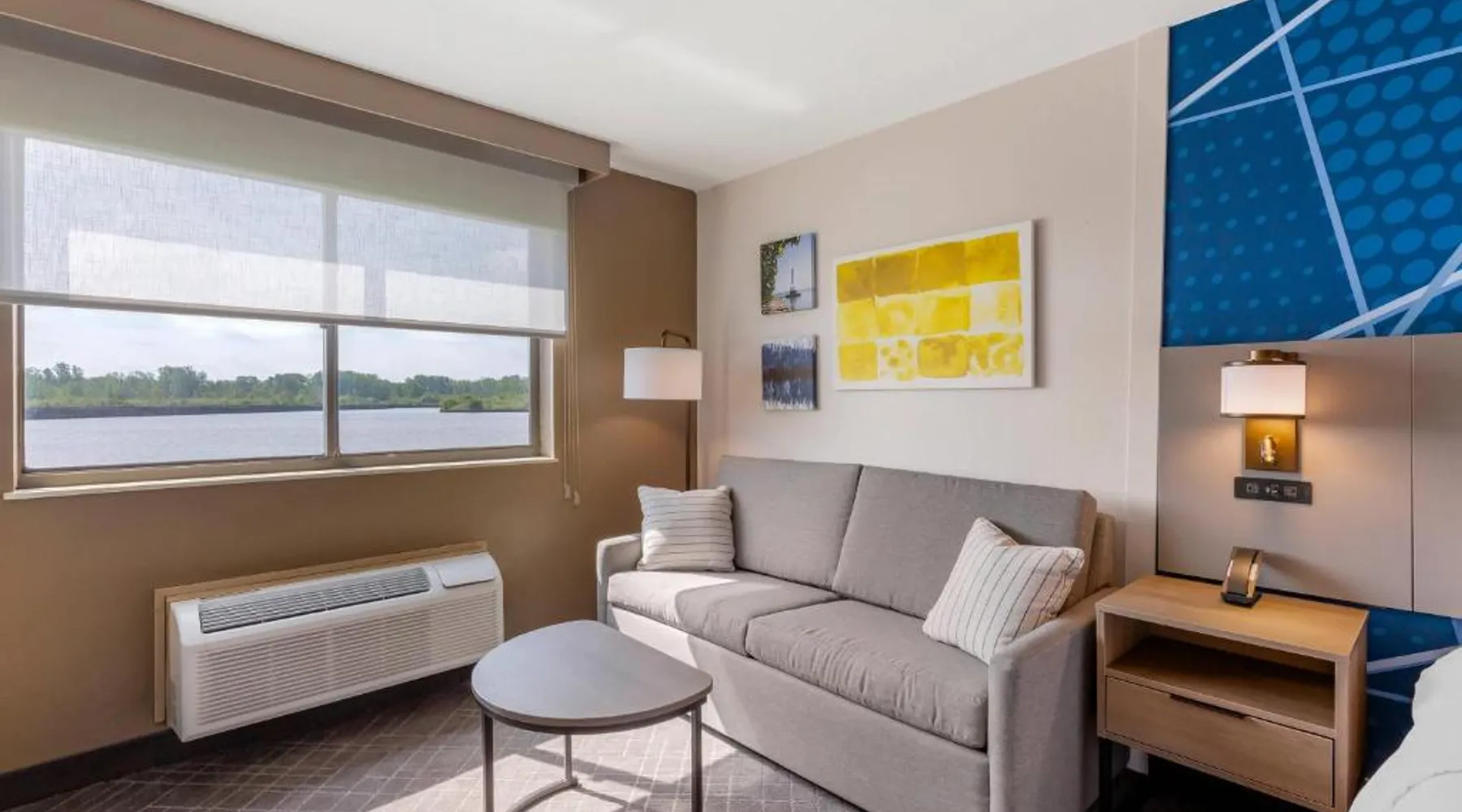 Located on the banks of the Huron River, this hotel in Huron includes free WiFi access and a heated indoor pool for guests. Cedar Point Amusement Park is 9.9 mi away from the hotel. A cable TV with satellite channels and a coffee machine are featured in every room at Comfort Inn River’s Edge. A microwave and refrigerator are provided for as well. The River’s Edge Comfort Inn has a sun terrace overlooking the river and a business center with fax/copying capabilities. It provides laundry facilities, free newspapers, and a picnic area. Guests are welcome to a free hot breakfast every morning. Eggs, yogurt, fresh fruit, cereal, and waffles are mainstays on the breakfast menu. Shopping at the Sandusky Mall is 7.5 mi away from the hotel. The Huron Playhouse is 1969 feet away and The Huron Public Boat Landing is 1640 feet away. The spacious double room features a tea and coffee maker, a safe deposit box, heating and a TV with cable channels. The unit has 2 beds.