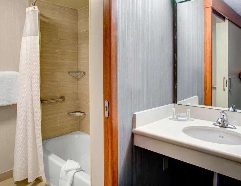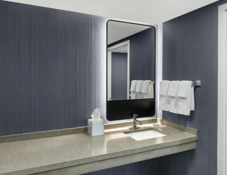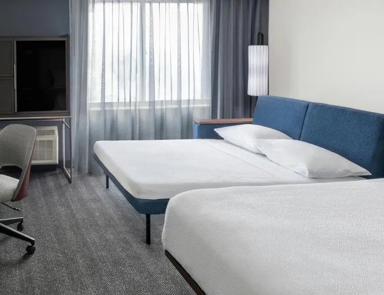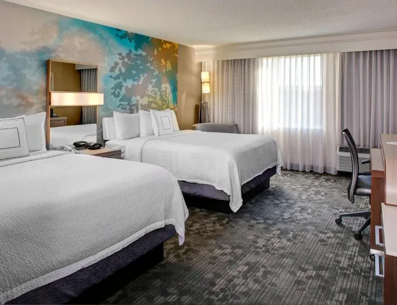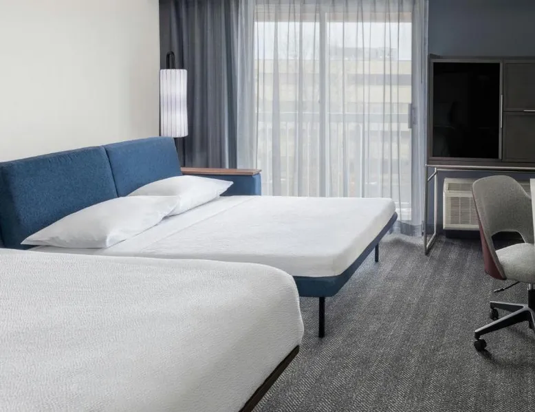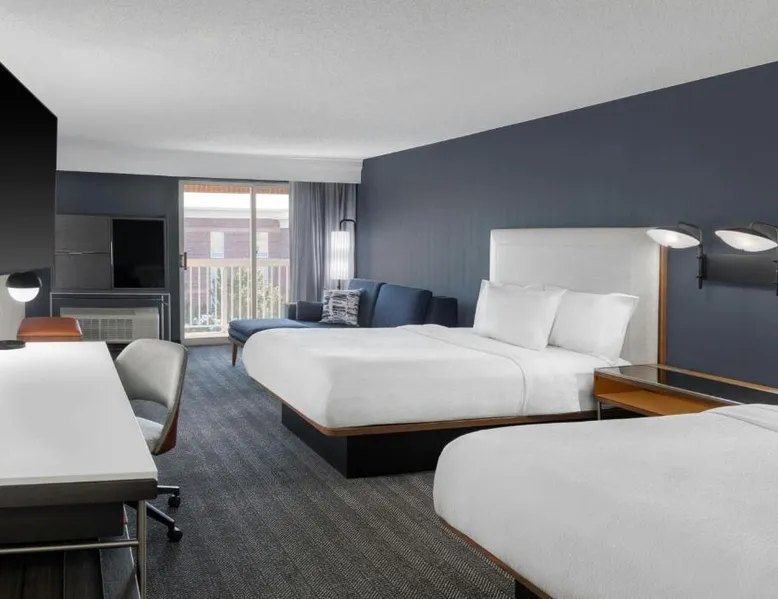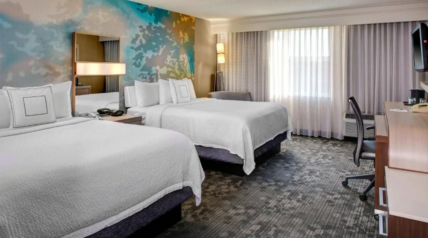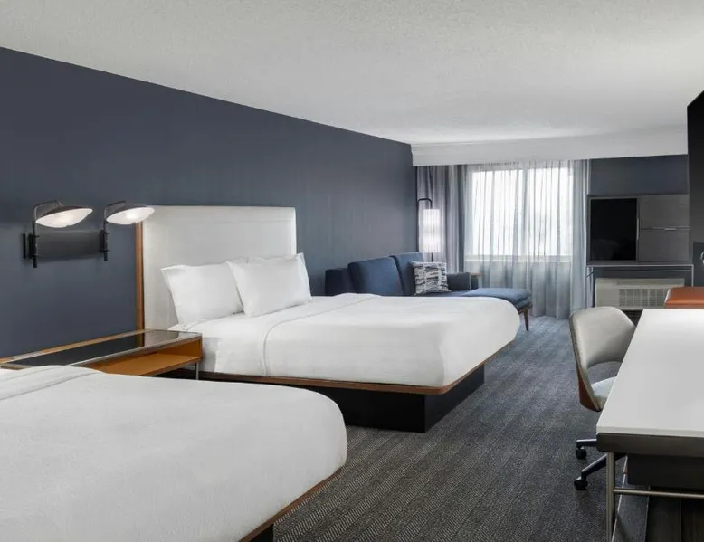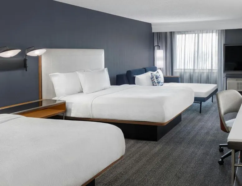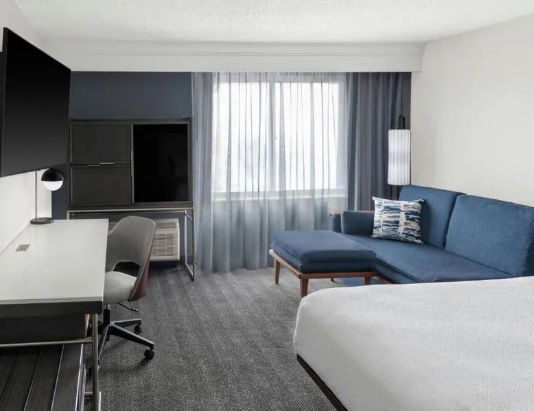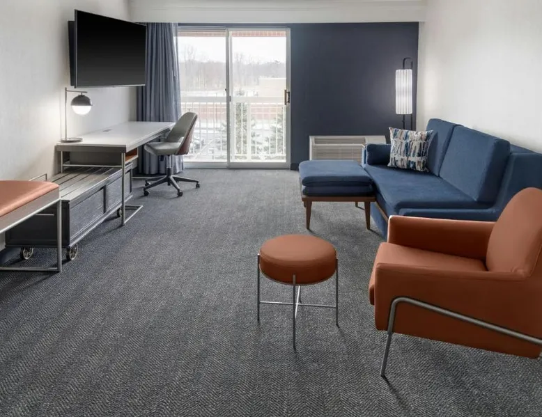 Comfortable Accommodations: Courtyard Cleveland Airport South in Middleburg Heights offers air-conditioned rooms with private bathrooms, hairdryers, work desks, and seating areas. Each room includes a bath or shower. Essential Facilities: Guests enjoy free WiFi, a restaurant serving dinner, and a elevator. The hotel provides a 24-hour front desk and free on-site parking. Convenient Location: Located 3.1 mi from Cleveland Hopkins International Airport, the hotel is near attractions such as I-X Center (3.7 mi) and Beera Union Depot (2.5 mi). This room has a desk and a coffee machine.