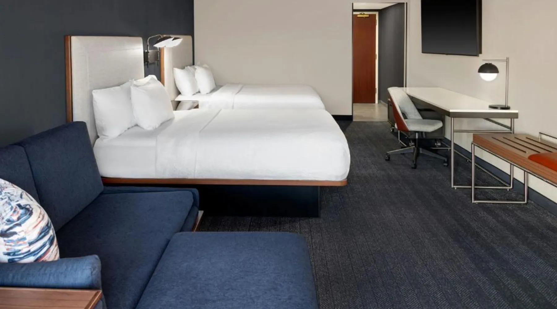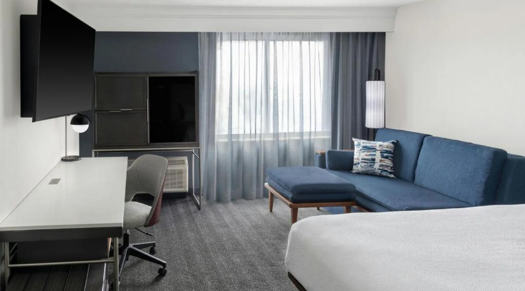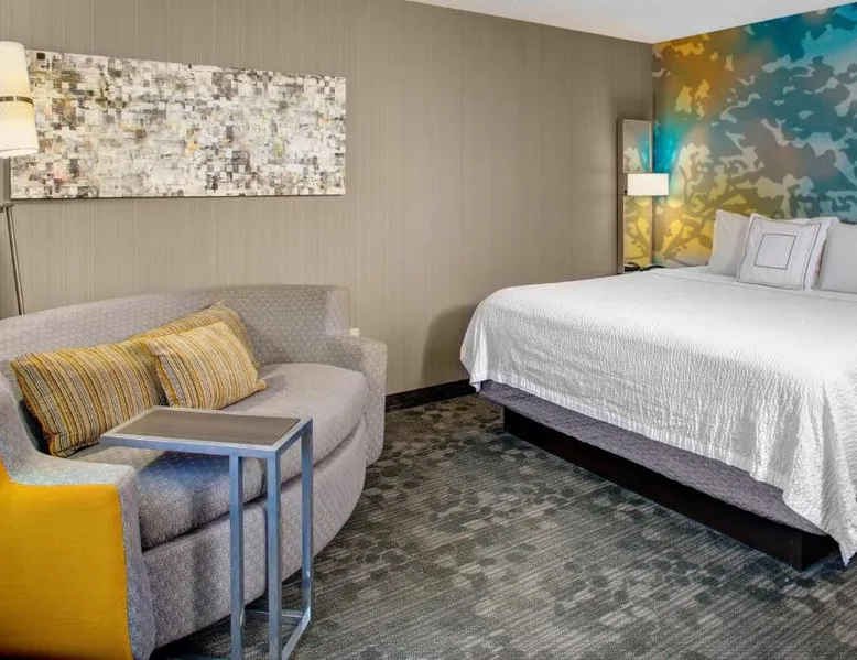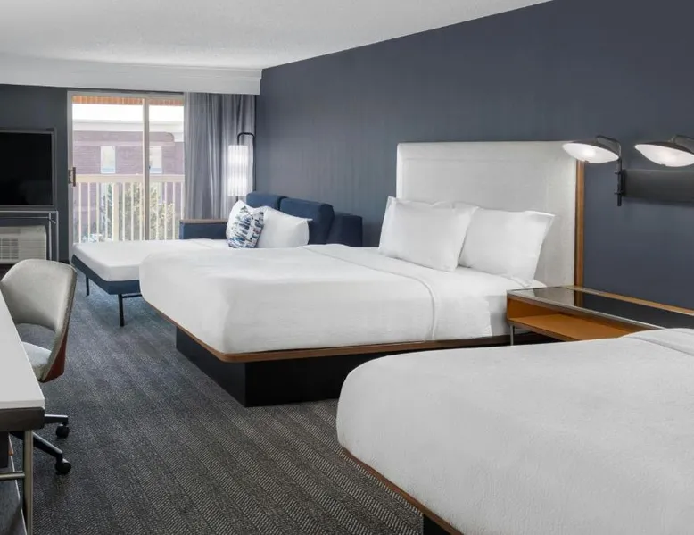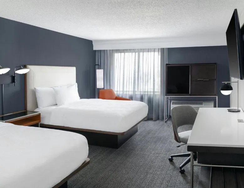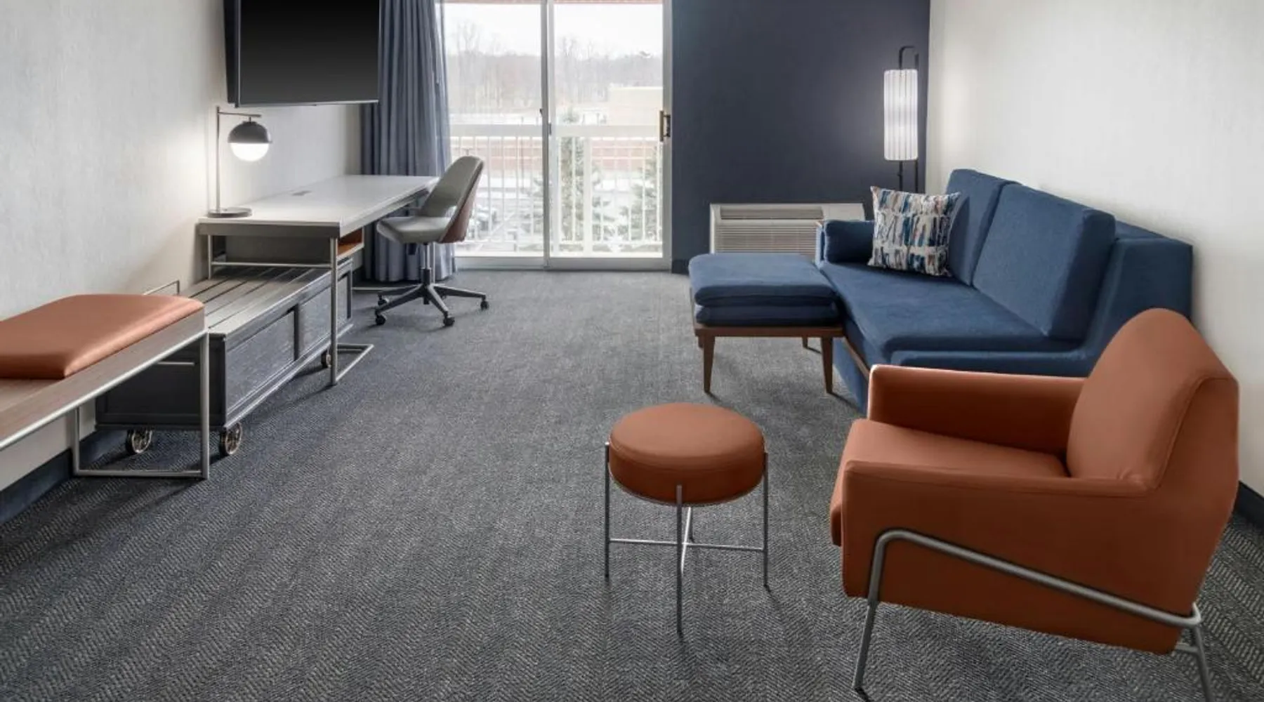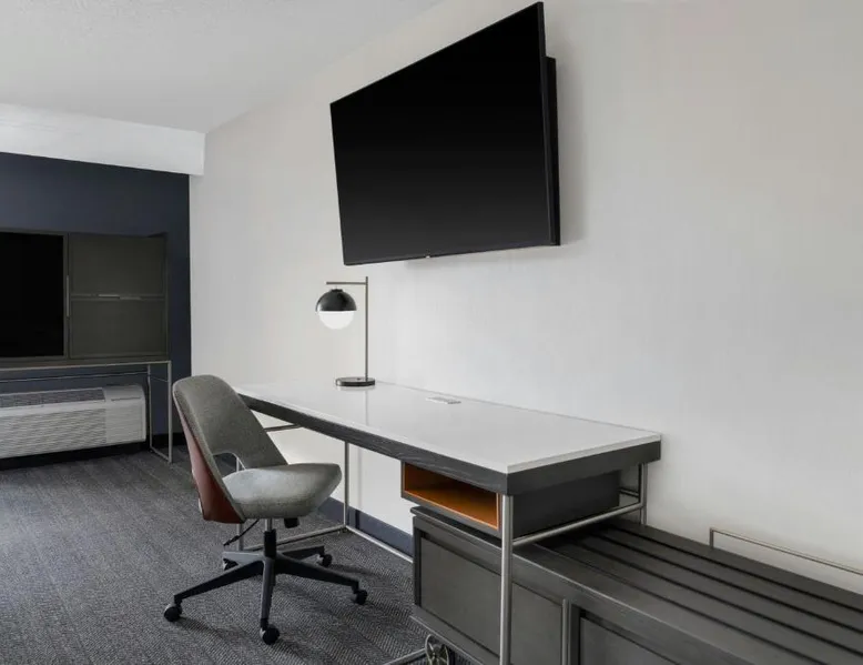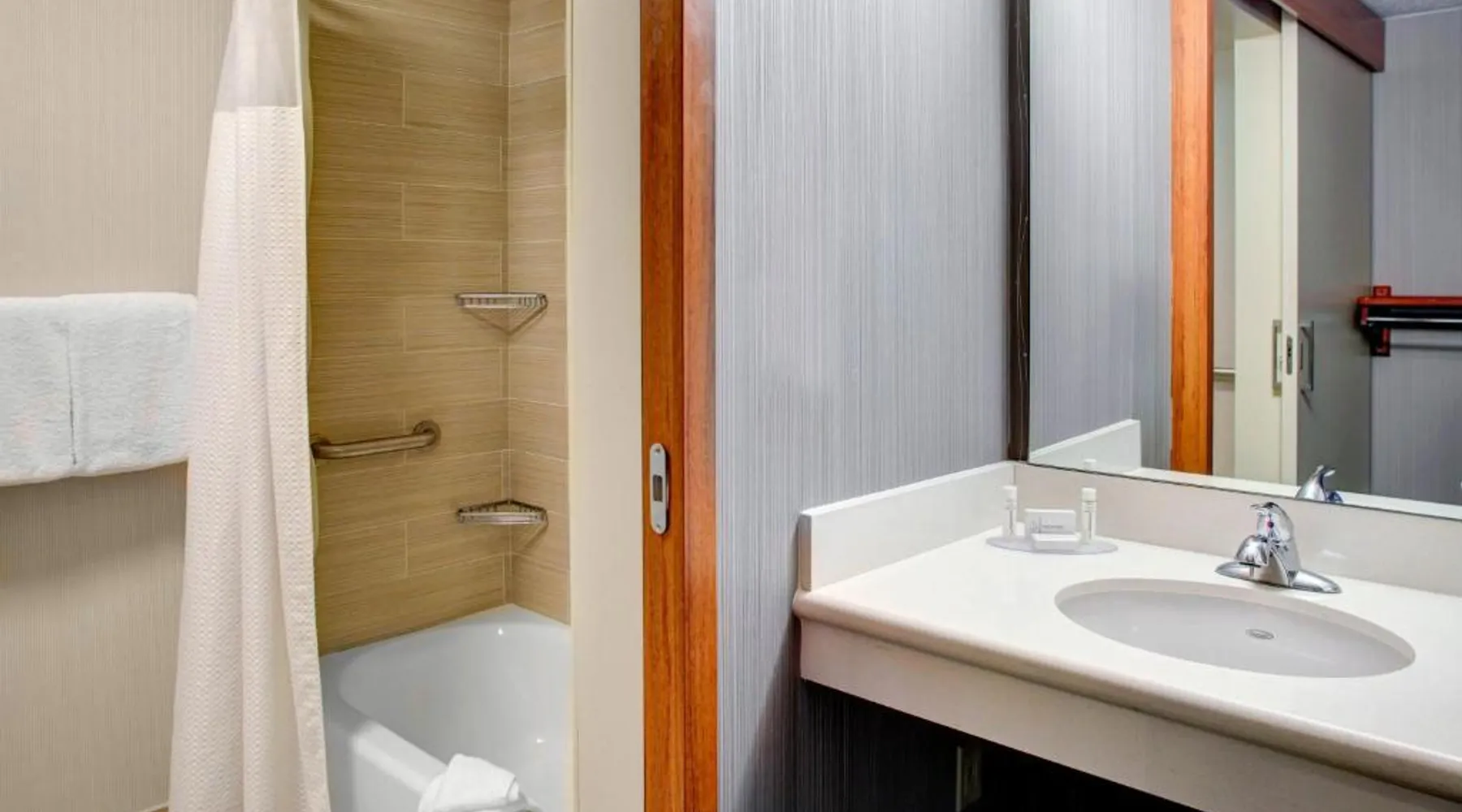 Comfortable Accommodations: Courtyard Cleveland Airport South in Middleburg Heights offers air-conditioned rooms with private bathrooms, hairdryers, work desks, and seating areas. Each room includes a bath or shower. Essential Facilities: Guests enjoy free WiFi, a restaurant serving dinner, and a elevator. The hotel provides a 24-hour front desk and free on-site parking. Convenient Location: Located 3.1 mi from Cleveland Hopkins International Airport, the hotel is near attractions such as I-X Center (3.7 mi) and Beera Union Depot (2.5 mi). This room has a desk and a coffee machine.