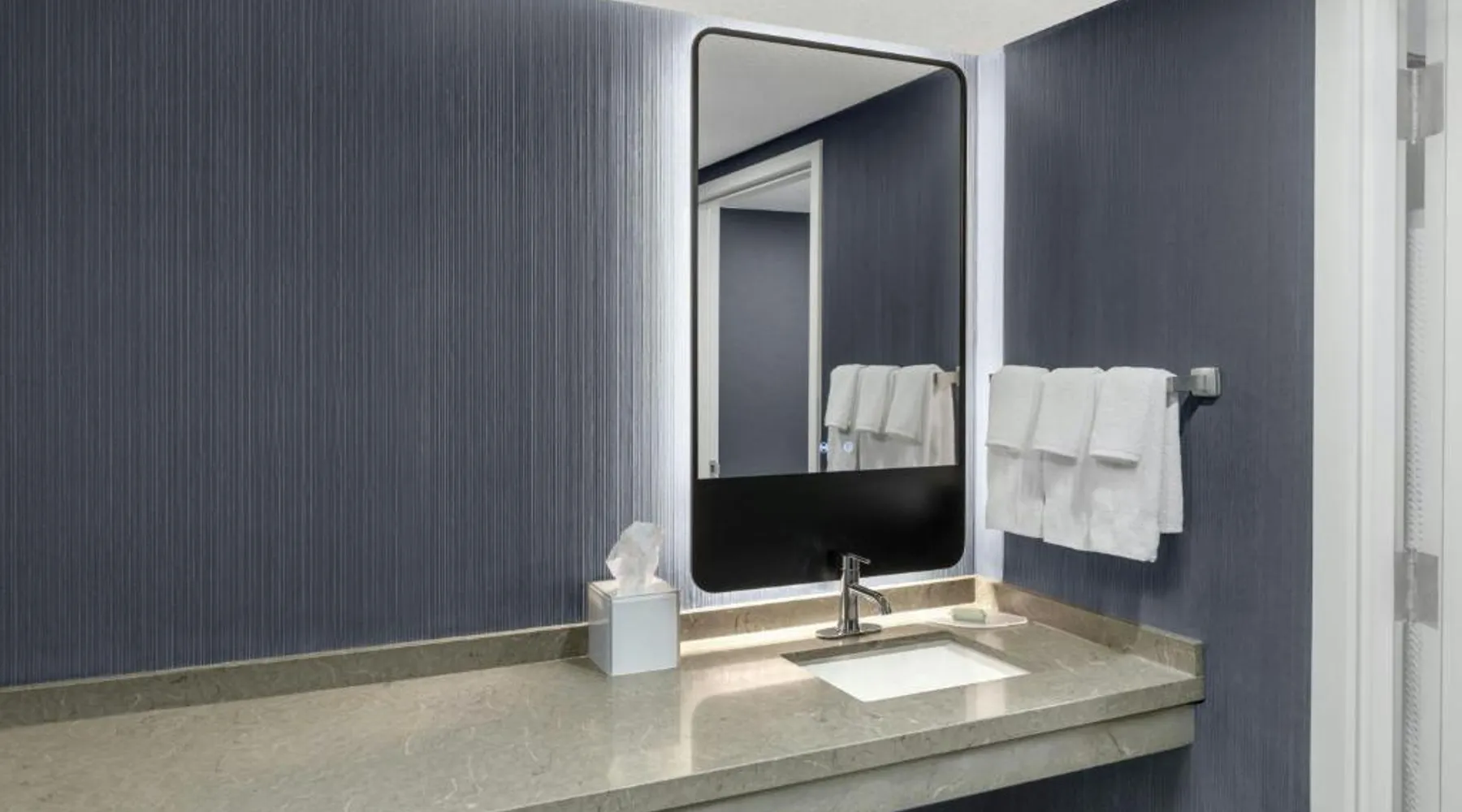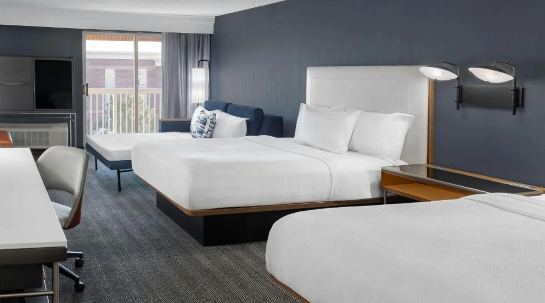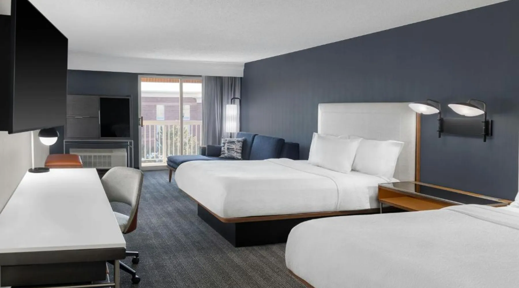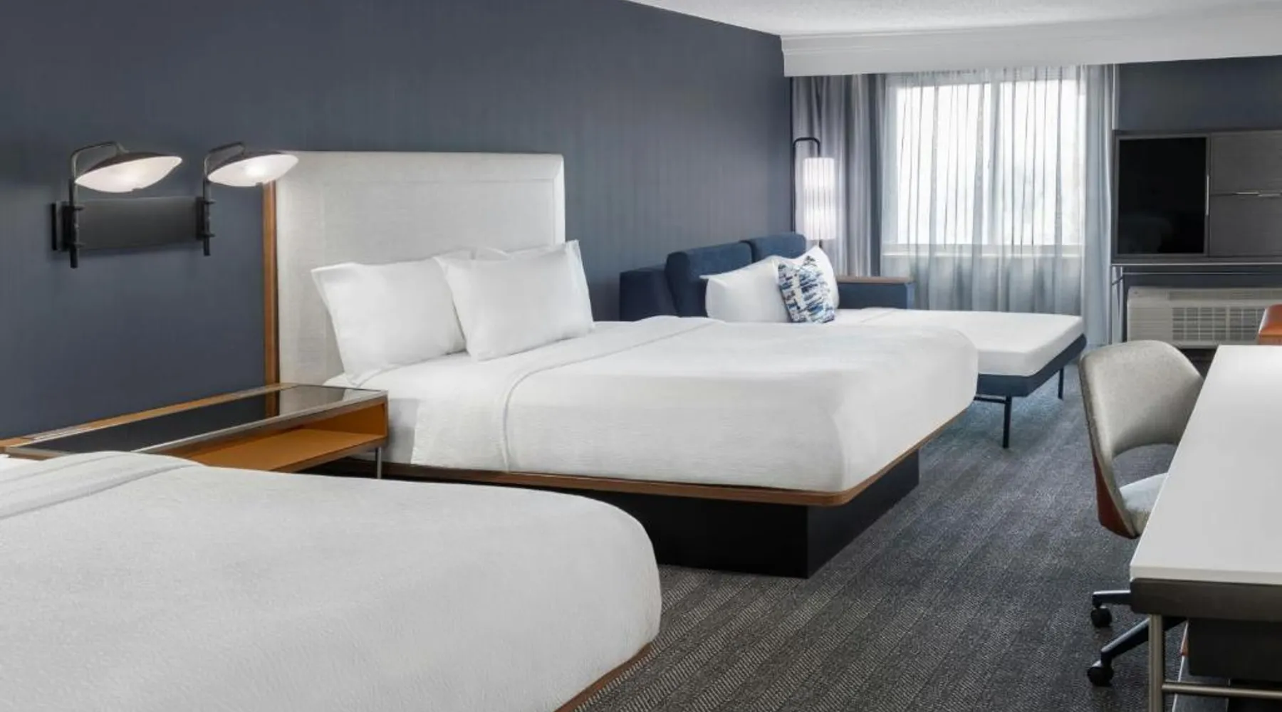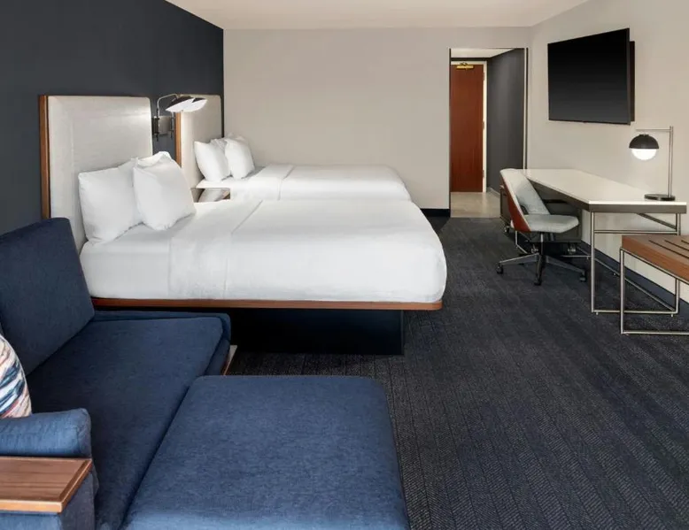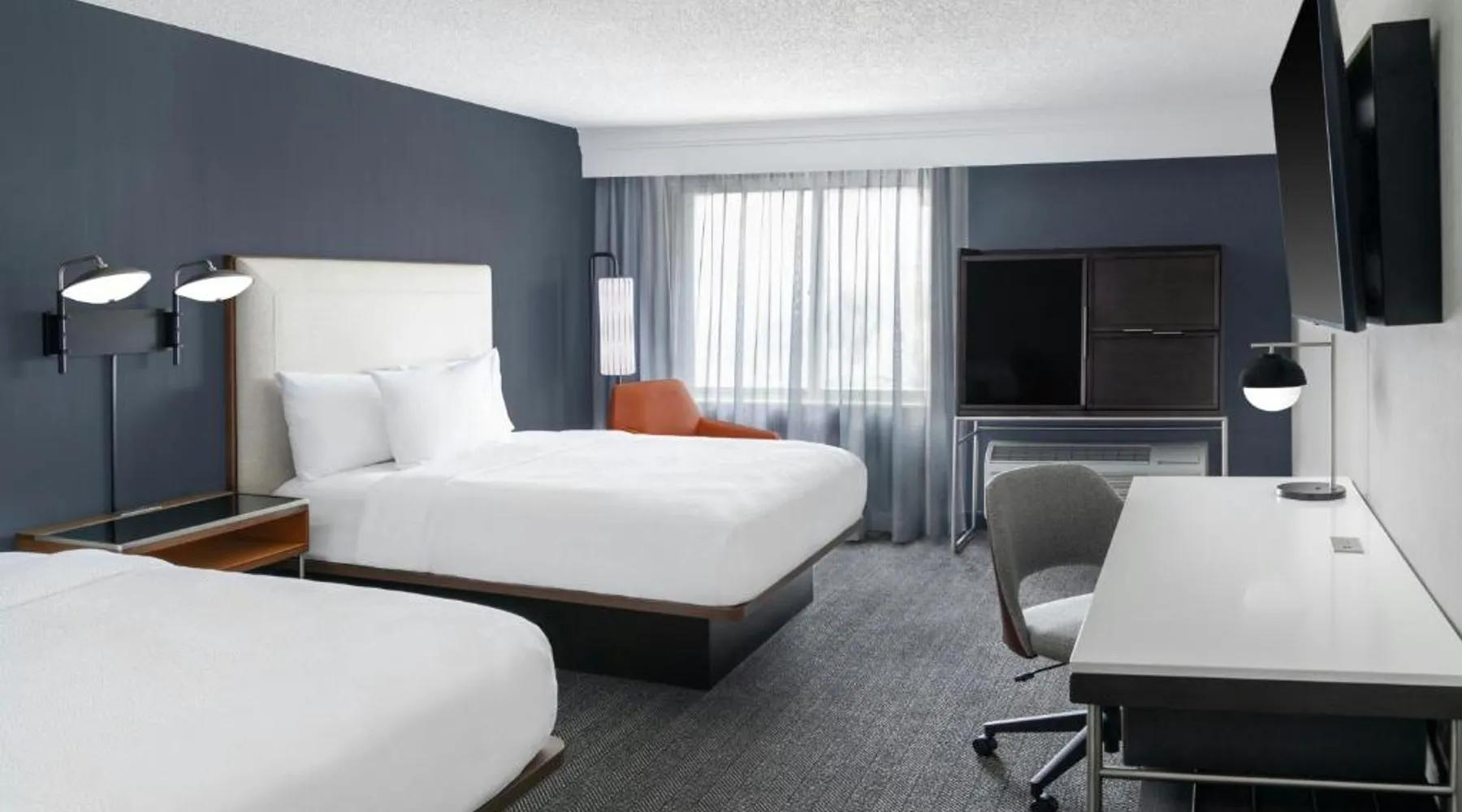 Comfortable Accommodations: Courtyard Cleveland Airport South in Middleburg Heights offers air-conditioned rooms with private bathrooms, hairdryers, work desks, and seating areas. Each room includes a bath or shower. Essential Facilities: Guests enjoy free WiFi, a restaurant serving dinner, and a elevator. The hotel provides a 24-hour front desk and free on-site parking. Convenient Location: Located 3.1 mi from Cleveland Hopkins International Airport, the hotel is near attractions such as I-X Center (3.7 mi) and Beera Union Depot (2.5 mi). This room has a desk and a coffee machine.