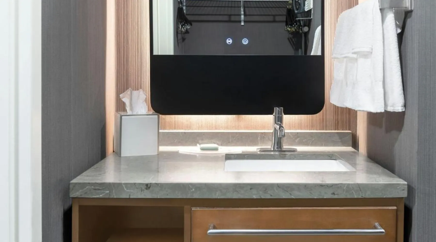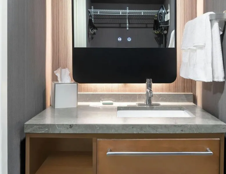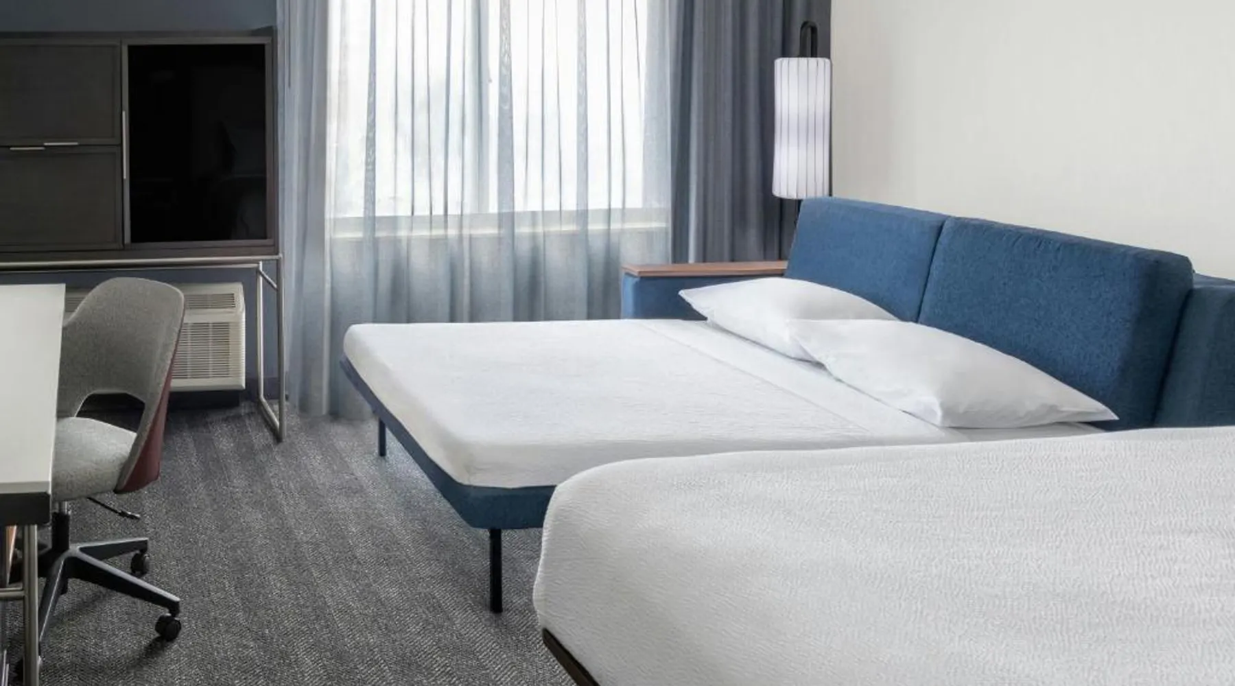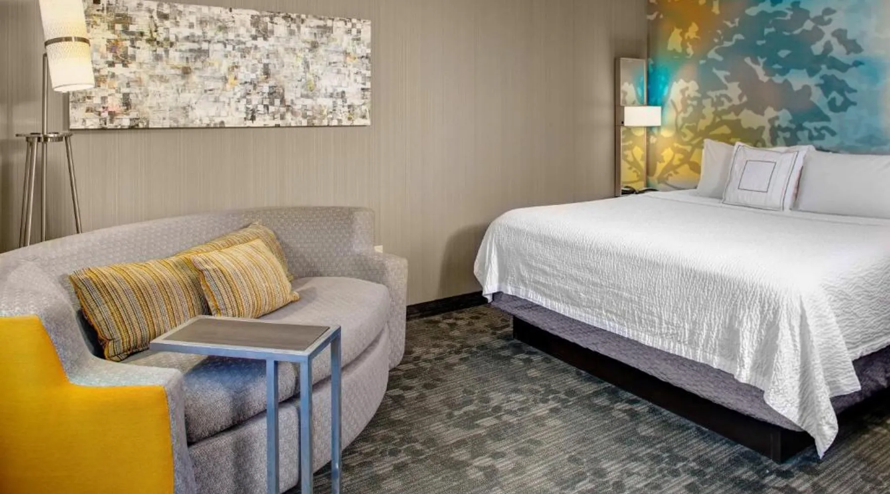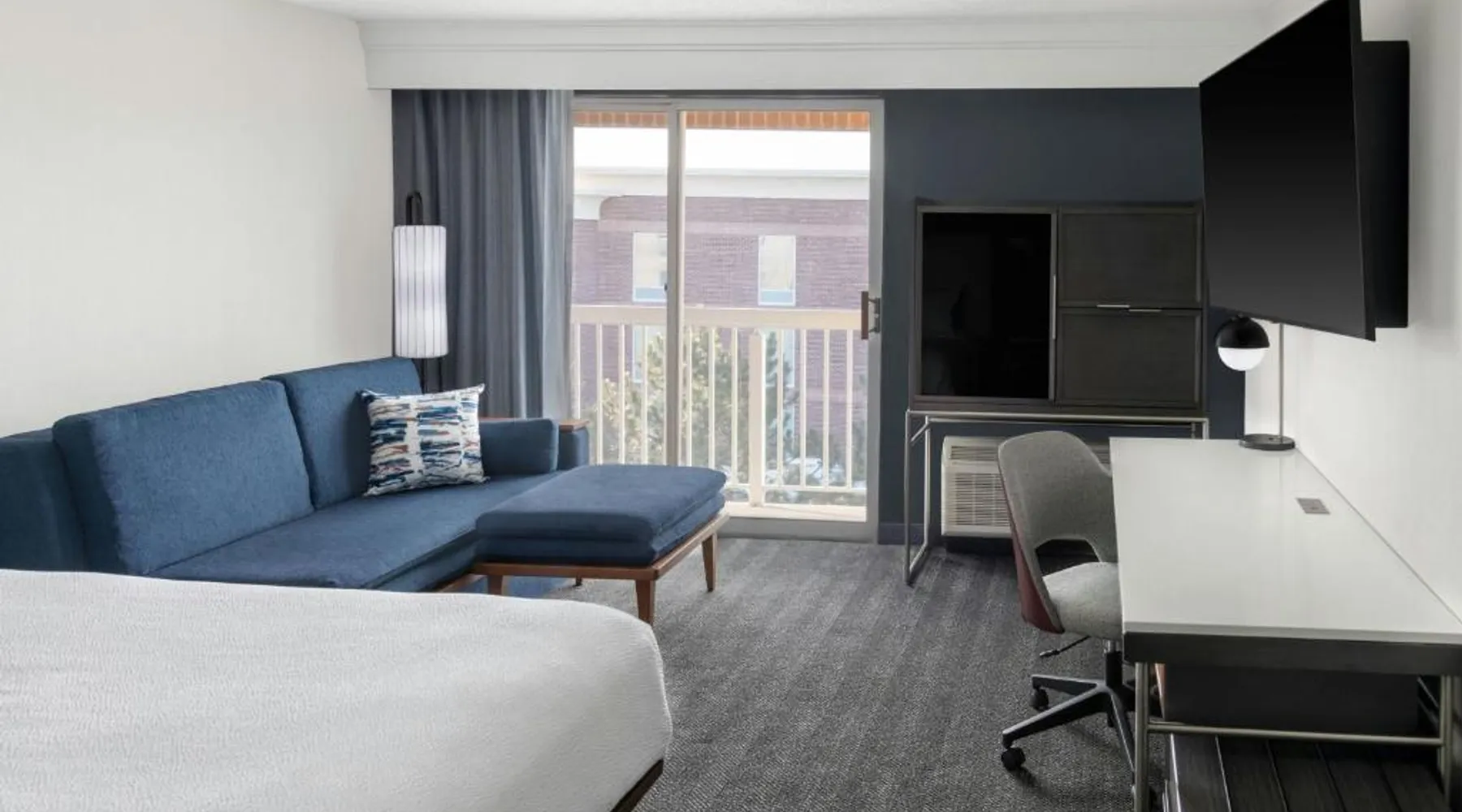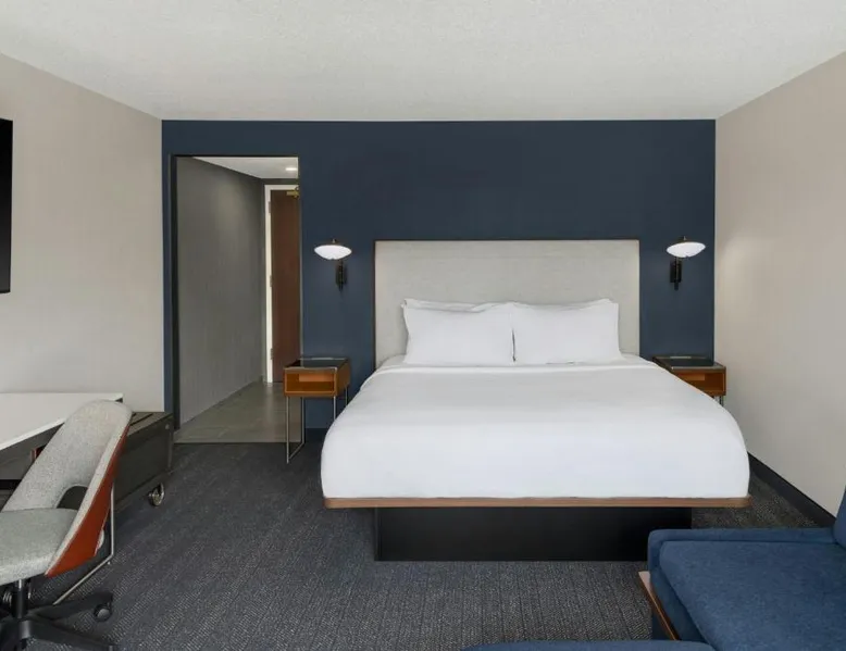 Comfortable Accommodations: Courtyard Cleveland Airport South in Middleburg Heights offers air-conditioned rooms with private bathrooms, hairdryers, work desks, and seating areas. Each room includes a bath or shower. Essential Facilities: Guests enjoy free WiFi, a restaurant serving dinner, and a elevator. The hotel provides a 24-hour front desk and free on-site parking. Convenient Location: Located 3.1 mi from Cleveland Hopkins International Airport, the hotel is near attractions such as I-X Center (3.7 mi) and Beera Union Depot (2.5 mi). This room has a desk and a coffee machine.