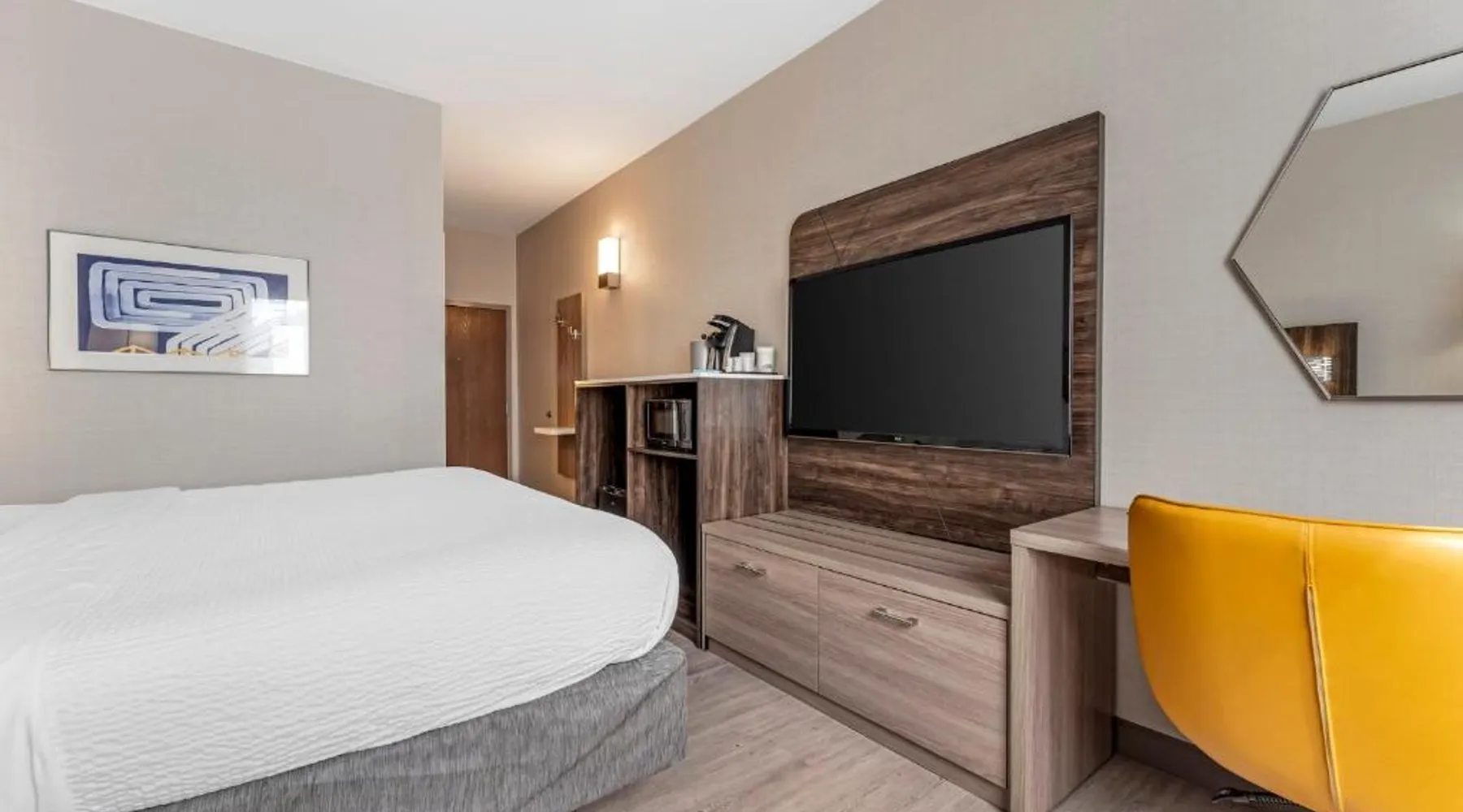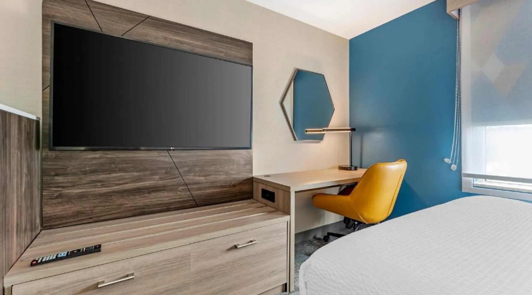 Comfortable Accommodations: Holiday Inn Express Pittsburgh - Munhall by IHG in Munhall offers air-conditioned rooms with private bathrooms, city views, and modern amenities including free WiFi and a fitness center. Convenient Facilities: Guests enjoy free on-site parking, a 24-hour front desk, private check-in and check-out services, a minimarket, daily housekeeping, and a business area. Additional features include an outdoor seating area, picnic area, and express check-in and check-out services. Delicious Breakfast: A continental, American, or buffet breakfast is served daily, featuring juice, pancakes, and fruits. Guests appreciate the quality and variety of the breakfast offerings. Prime Location: Located 21 mi from Pittsburgh International Airport, the hotel is near attractions such as Waterfront (1.1 mi), Kennywood Amusement Park (2.9 mi), and Chatham University (5 mi). Guests value the attentive staff and excellent service support. This air-conditioned double room includes a flat-screen TV with cable channels, a private bathroom as well as outdoor furniture. The unit offers 1 bed.