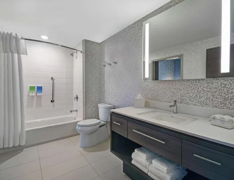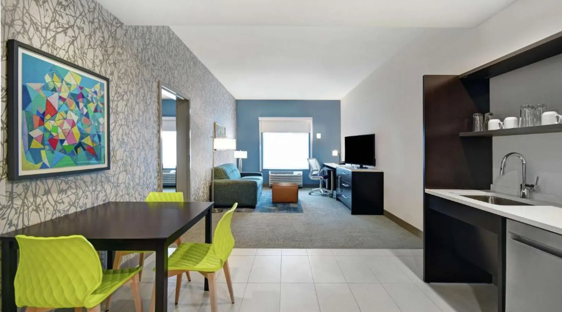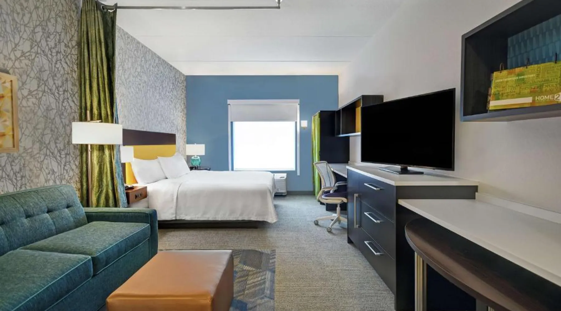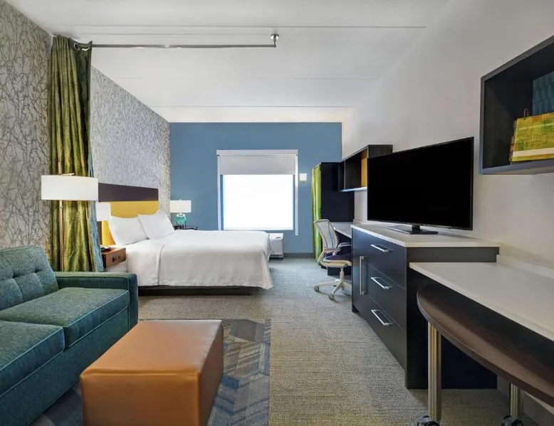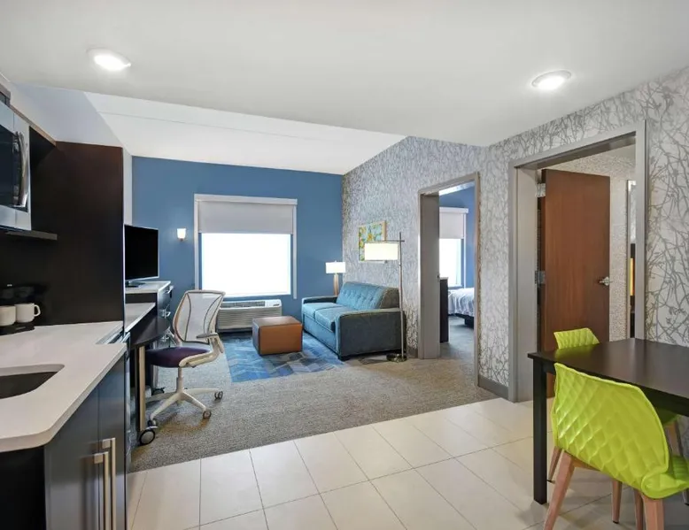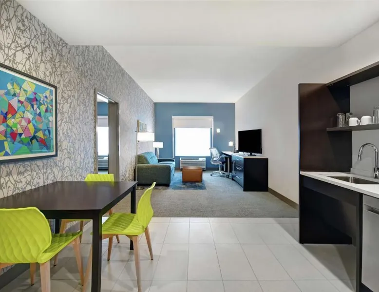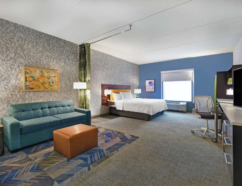 Comfortable Accommodations: Home2 Suites By Hilton Lawrenceville Atlanta Sugarloaf in Lawrenceville offers family rooms with air-conditioning, free WiFi, and modern amenities. Each room includes a sofa bed, work desk, and free toiletries. Leisure Facilities: Guests can enjoy a seasonal outdoor swimming pool, outdoor fireplace, and fitness room. Additional facilities include a elevator, 24-hour front desk, electric vehicle charging station, and paid on-site parking. Dining Options: A buffet breakfast is provided each morning. The hotel also offers a variety of dining options, including a coffee shop and room service. Local Attractions: Located 19 mi from Historic Stone Mountain Village and 24 mi from Atlanta History Center, the hotel is near attractions such as Stone Mountain Carving and Atlanta Botanical Garden. The studio features air conditioning, a tea and coffee maker, a seating area and a flat-screen TV. The unit has 2 beds.