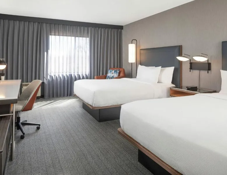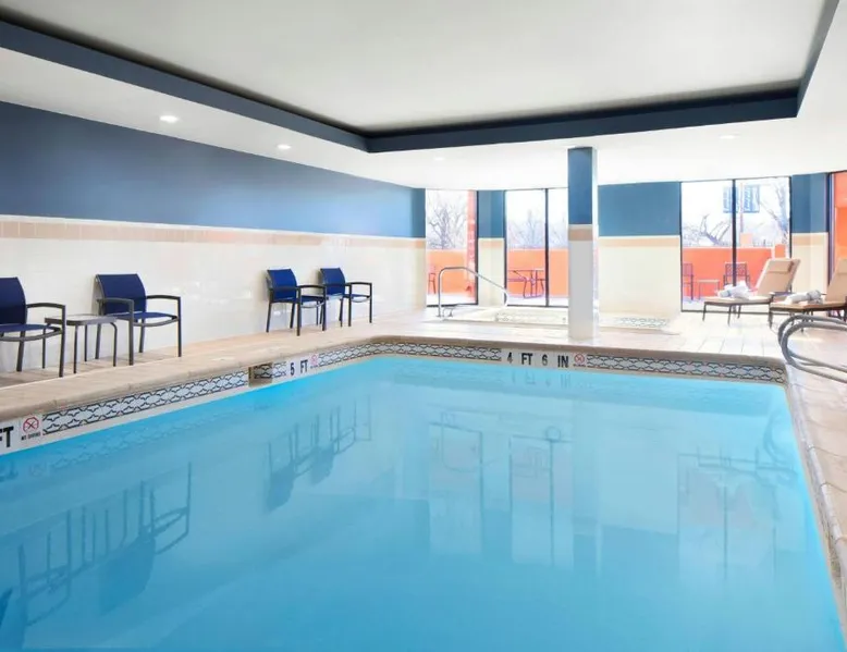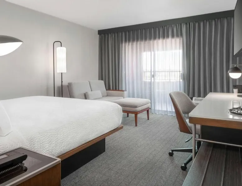 Comfortable Accommodations: Courtyard Farmington in Farmington offers rooms with air-conditioning, private bathrooms, tea and coffee makers, hairdryers, work desks, bath or showers, and TVs. Guests appreciate the room cleanliness, comfort, and attentive staff. Exceptional Facilities: The hotel features a sun terrace, indoor swimming pool, free WiFi, and complimentary bicycles. Additional amenities include an outdoor fireplace, outdoor seating, picnic area, and electric vehicle charging station. Dining and Leisure: A restaurant serves American cuisine, and a bar provides a relaxing atmosphere. Free on-site parking is available, along with a minimarket and coffee shop. Convenient Services: Private check-in and check-out, a 24-hour front desk, concierge service, and express services enhance the guest experience. Cable TV and tea and coffee-making facilities are included in this room.