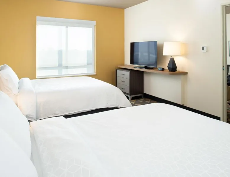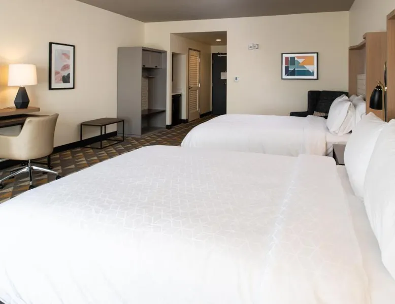 Comfortable Accommodations: Holiday Inn & Suites - Idaho Falls by IHG in Idaho Falls offers family rooms with air-conditioning, private bathrooms, and modern amenities. Each room includes a tea and coffee maker, refrigerator, microwave, and TV. Exceptional Facilities: Guests enjoy a fitness center, indoor swimming pool, and free WiFi. Additional facilities include a restaurant, bar, and outdoor fireplace. Free on-site parking is available. Dining Experience: The on-site restaurant serves American cuisine with breakfast options including champagne, warm dishes, fresh pastries, and pancakes. Room service and meals for kids are also available. Convenient Location: Located 20 mi from Idaho Falls Regional Airport and 30 mi from Eliza R. Snow Performing Arts Center. Highly rated for its restaurant, attentive staff, and comfortable rooms. The spacious suite offers air conditioning, a tea and coffee maker, as well as a private bathroom boasting a bath and a shower. This suite provides heating and a flat-screen TV. The unit has 2 beds.