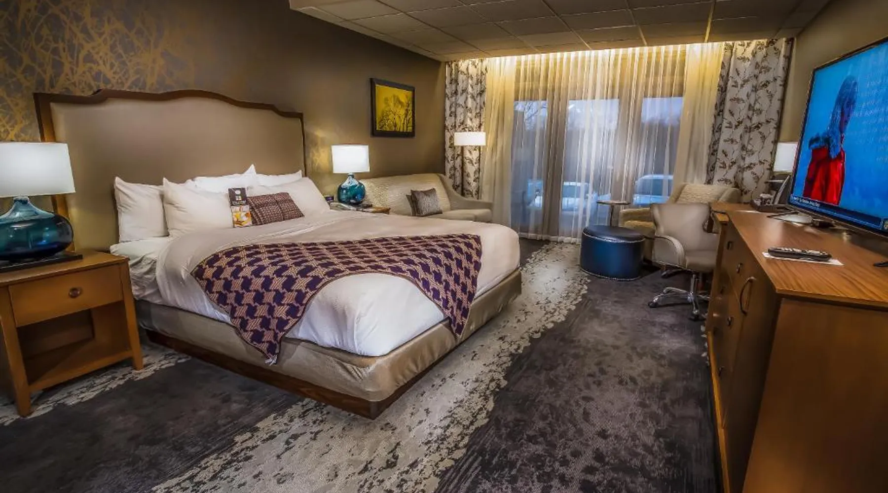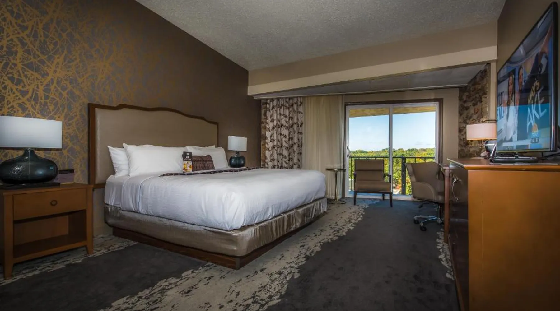 Just off the shores of the Lake of the Ozarks, this beachfront resort features guest rooms with free Wi-Fi. Guests can enjoy a swim indoor/outdoor pool or relax in the spa and wellness center on the property. A TV with cable channels is offered in every room at The Lodge of Four Seasons. Some rooms include balconies which boast views of the surrounding lake and gardens. A variety of activities including boating, fishing, hiking and biking are available at Ozarks Four Seasons Lodge. An on-site 250-seat theater plays free movies each night. The property also features an 18-hole golf course. The resort includes 5 on-site restaurants, lunch and dinner. Osage Beach Premium Outlets are within 8 miles of this hotel. Grand Glaize Recreation Area is 23 minutes’ drive away. The air-conditioned suite has 1 bedroom and 1 bathroom with a bath and a shower. Boasting outdoor furniture, this suite also features a coffee machine, a carpeted floor and a flat-screen TV with cable channels. The unit has 1 bed.