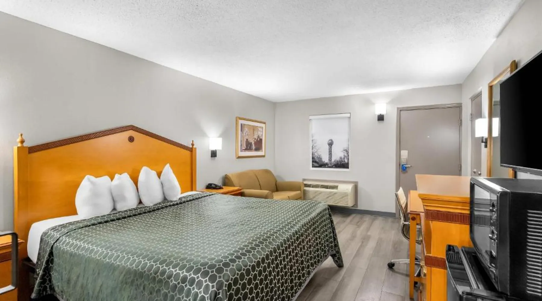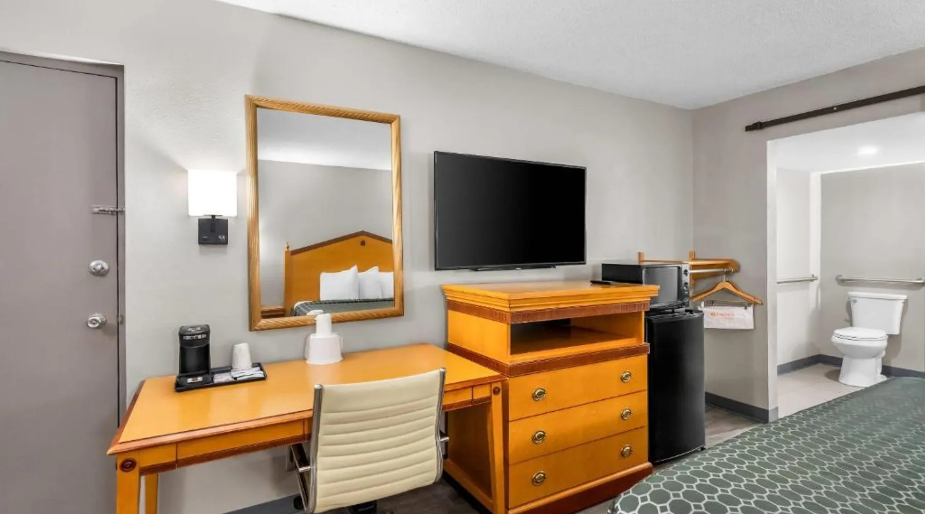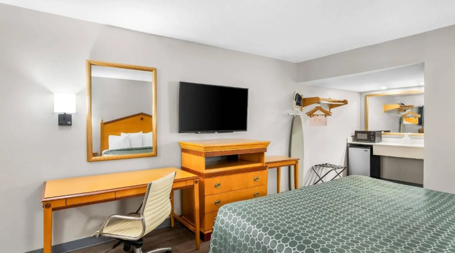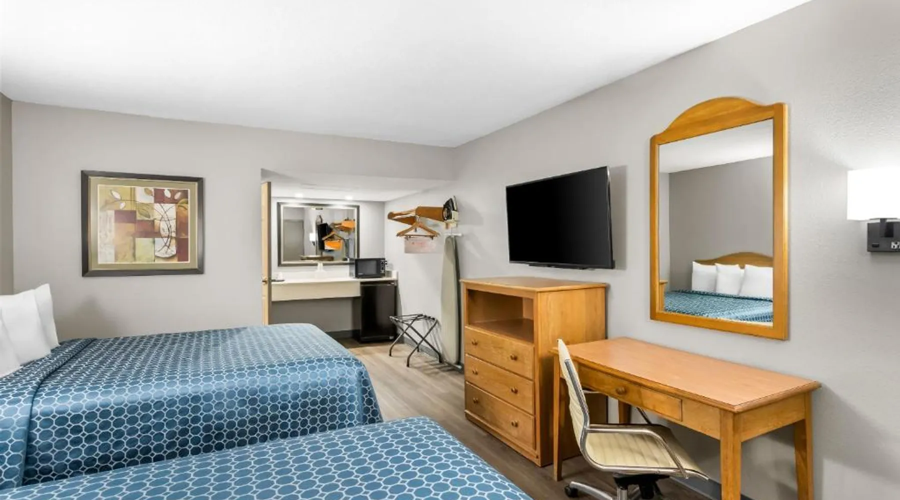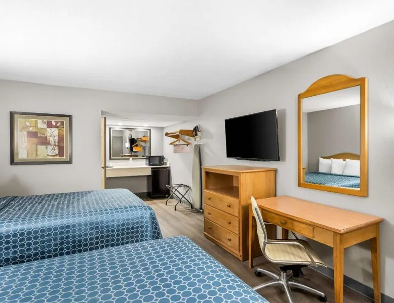 Comfortable Accommodations: Rooms feature air-conditioning, private bathrooms with bath and shower, hairdryers, coffee machines, refrigerators, work desks, microwaves, and TVs. Guests appreciate the room cleanliness and excellent service. Leisure Facilities: The inn offers a seasonal outdoor swimming pool and free WiFi. Additional amenities include a 24-hour front desk, daily housekeeping, business area, and barbecue facilities. Free on-site parking is available. Dining Options: A continental buffet breakfast with juice and fruits is served each morning. Guests can also enjoy the on-site bar for refreshments. Local Attractions: Located 3.7 mi from Hot Springs Memorial Field Airport, the inn is near Magic Springs Crystal Falls (1.4 mi) and Ponce De Leon Golf Course (15 mi). Activities such as fishing, hiking, and cycling are available. The family room features air conditioning, a coffee machine, as well as a private bathroom boasting a bath and a hairdryer. This family room provides heating and a flat-screen TV with satellite channels. The unit has 2 beds.