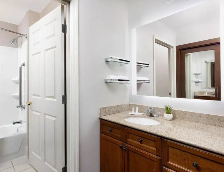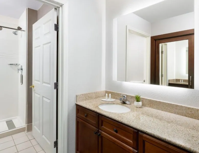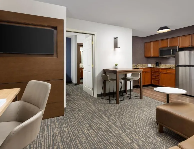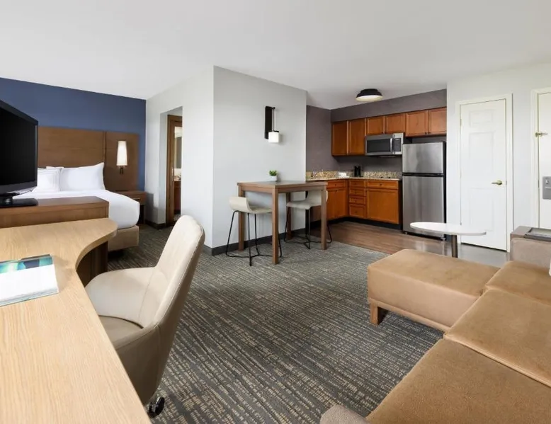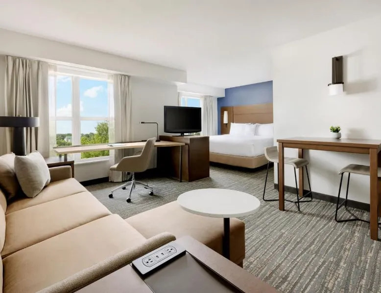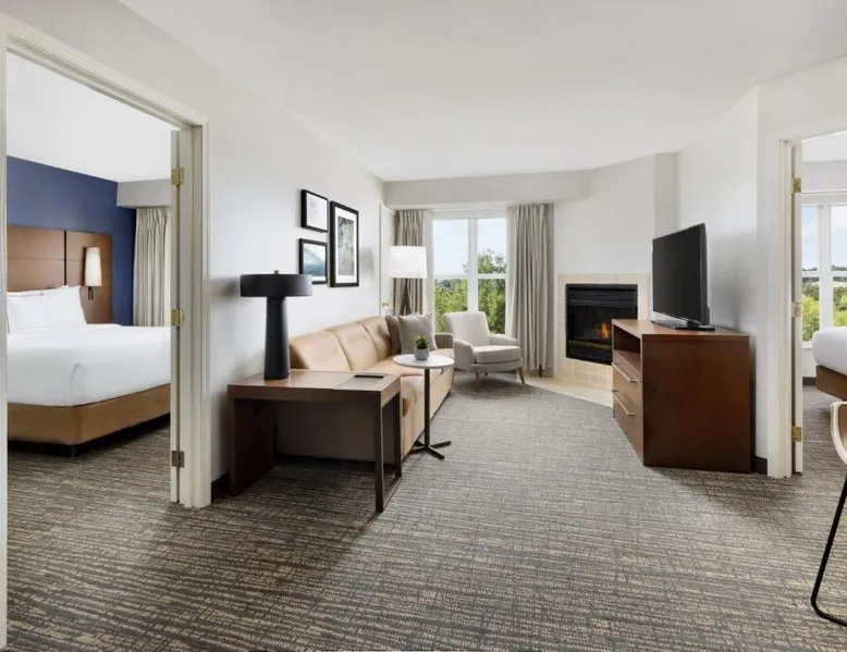 Comfortable Accommodations: Residence Inn Potomac Mills Woodbridge in Woodbridge offers family rooms with air-conditioning, kitchenettes, private bathrooms, and free WiFi. Each room includes a work desk, dining area, and soundproofing for a pleasant stay. Leisure Facilities: Guests can enjoy an indoor swimming pool, fitness center, tennis court, and hot tub. The outdoor seating area provides a relaxing space, while the continental, American, and buffet breakfasts cater to diverse preferences. Convenient Location: Located 24 mi from Ronald Reagan Washington National Airport, the hotel is near attractions such as Huntley Meadows Park (16 mi) and Old Town Waterfront (21 mi). Paid on-site private parking is available. Exceptional Service: Highly rated for its attentive staff and comfortable rooms, the hotel ensures a pleasant and memorable experience for all guests. Suite features a fireplace.