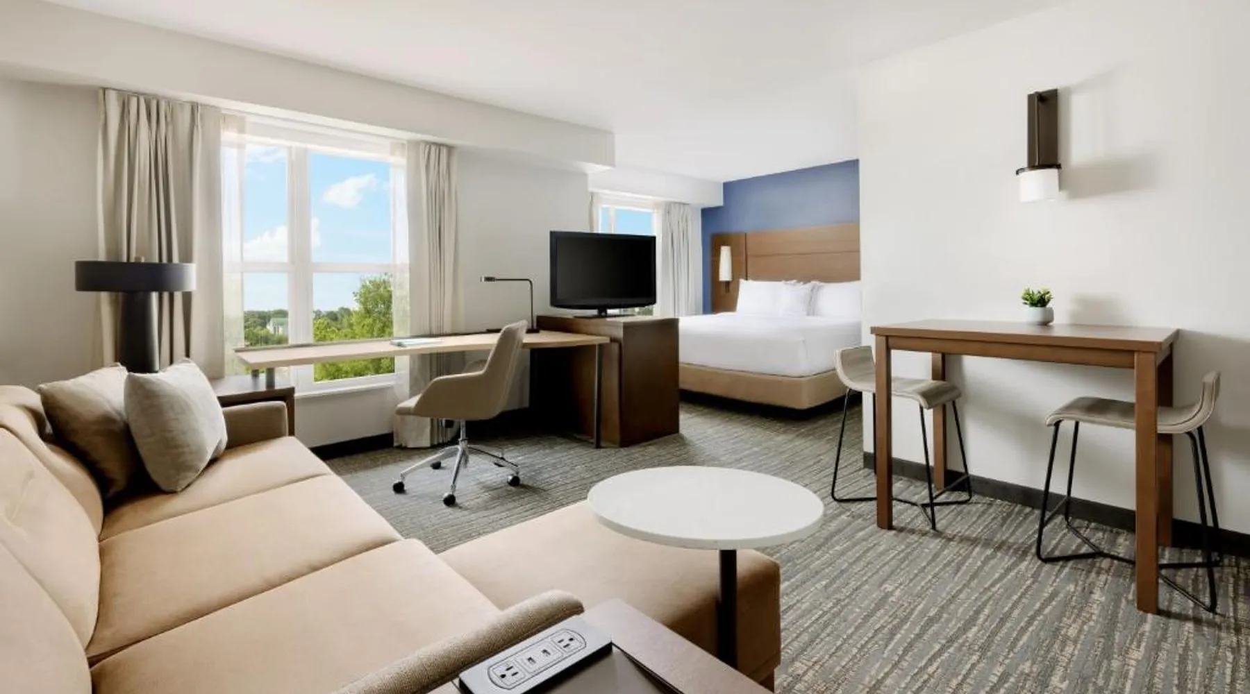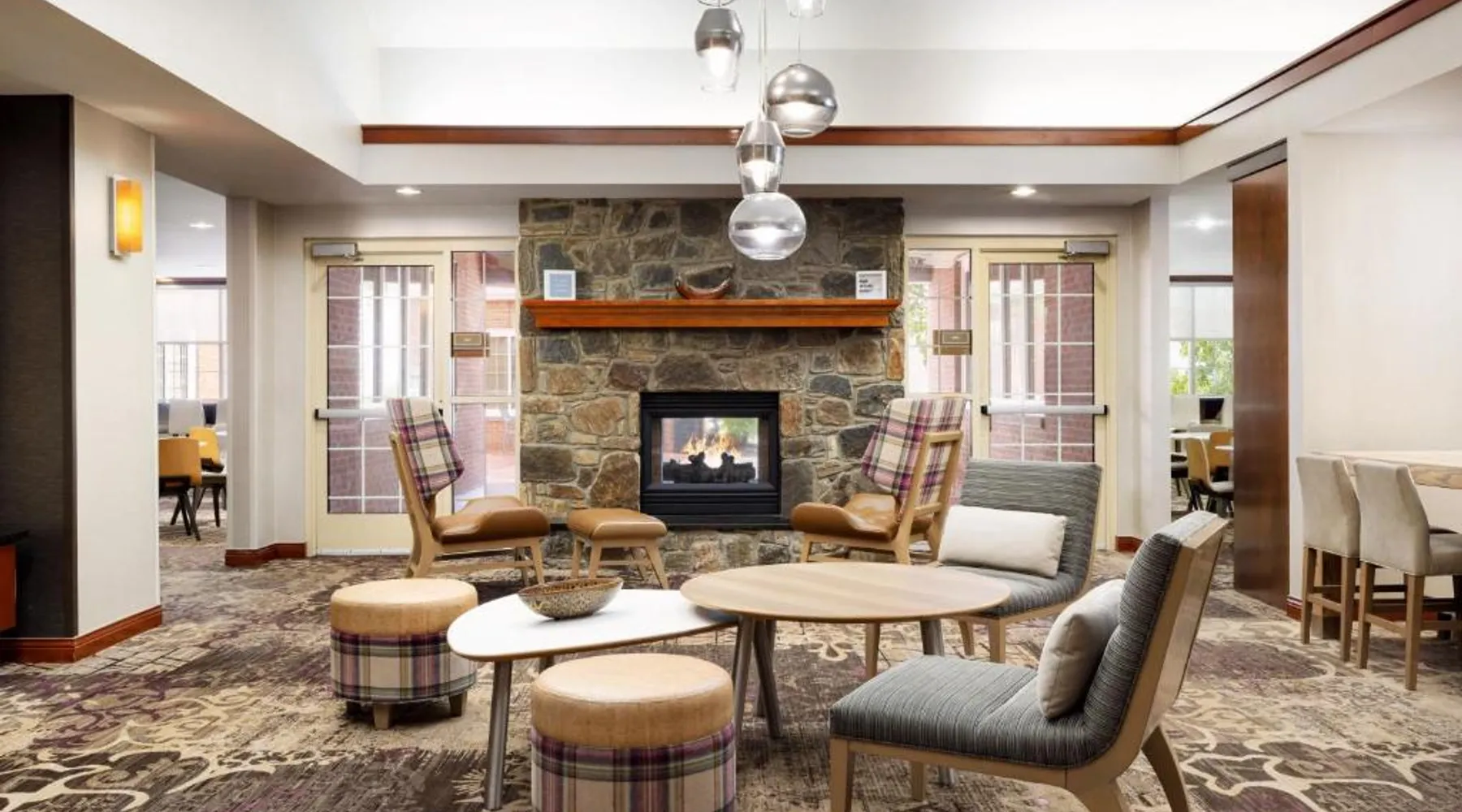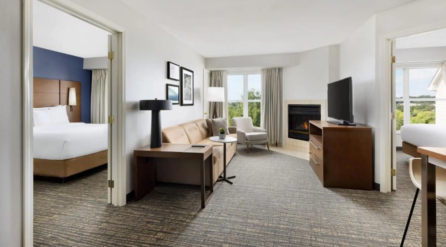 Comfortable Accommodations: Residence Inn Potomac Mills Woodbridge in Woodbridge offers family rooms with air-conditioning, kitchenettes, private bathrooms, and free WiFi. Each room includes a work desk, dining area, and soundproofing for a pleasant stay. Leisure Facilities: Guests can enjoy an indoor swimming pool, fitness center, tennis court, and hot tub. The outdoor seating area provides a relaxing space, while the continental, American, and buffet breakfasts cater to diverse preferences. Convenient Location: Located 24 mi from Ronald Reagan Washington National Airport, the hotel is near attractions such as Huntley Meadows Park (16 mi) and Old Town Waterfront (21 mi). Paid on-site private parking is available. Exceptional Service: Highly rated for its attentive staff and comfortable rooms, the hotel ensures a pleasant and memorable experience for all guests. Suite features a fireplace.