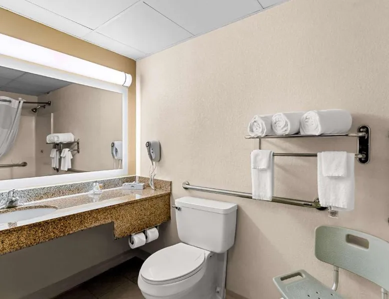 Comfortable Accommodations: Quality Inn Jessup in Jessup offers comfortable rooms with free WiFi, a 24-hour front desk, and room service. Guests can enjoy a continental breakfast with fresh fruits each morning. Convenient Facilities: The inn provides free on-site parking, a refrigerator, microwave, tea and coffee maker, hairdryer, and a seating area. Additional amenities include a bath and a seating area. Prime Location: Located 12 mi from Baltimore - Washington International Airport, the property is near attractions such as the National Security Agency (6.8 mi) and the National Cryptologic Museum (4.3 mi). Guests appreciate the convenient location, attentive staff, and excellent value for money. The double room offers a tea and coffee maker. The unit offers 1 bed.