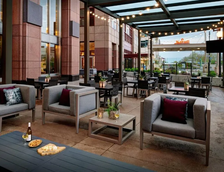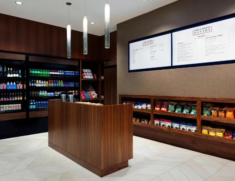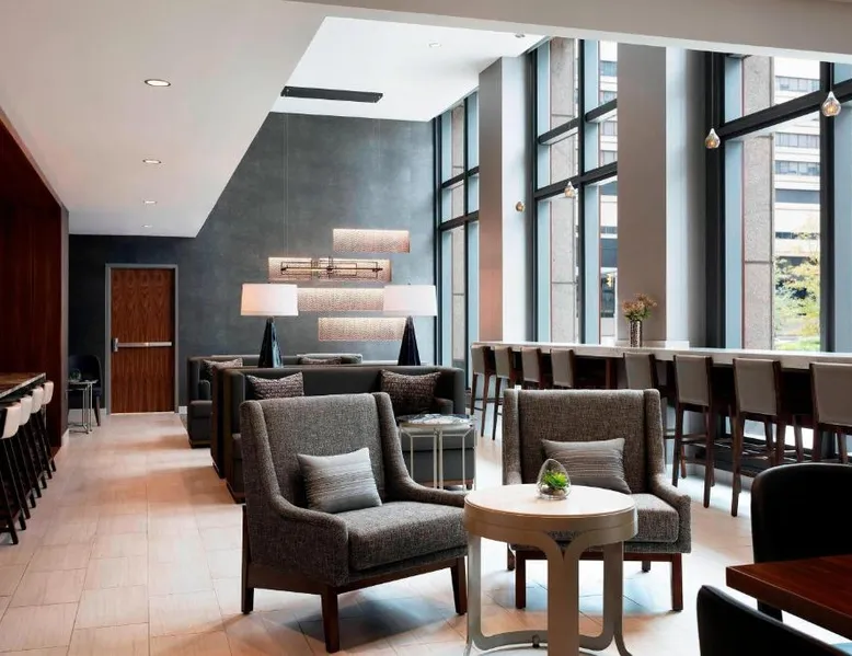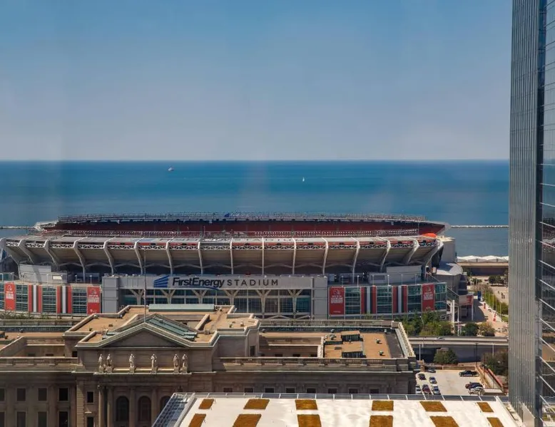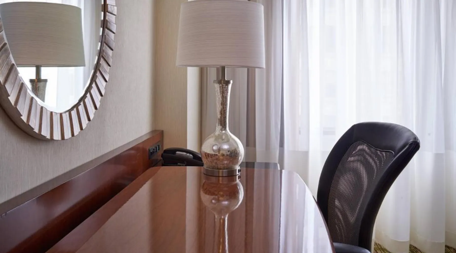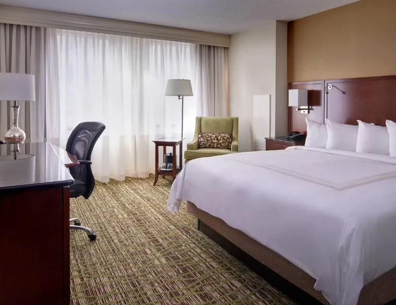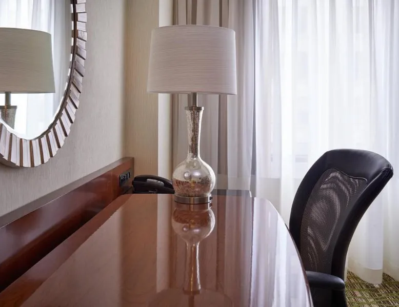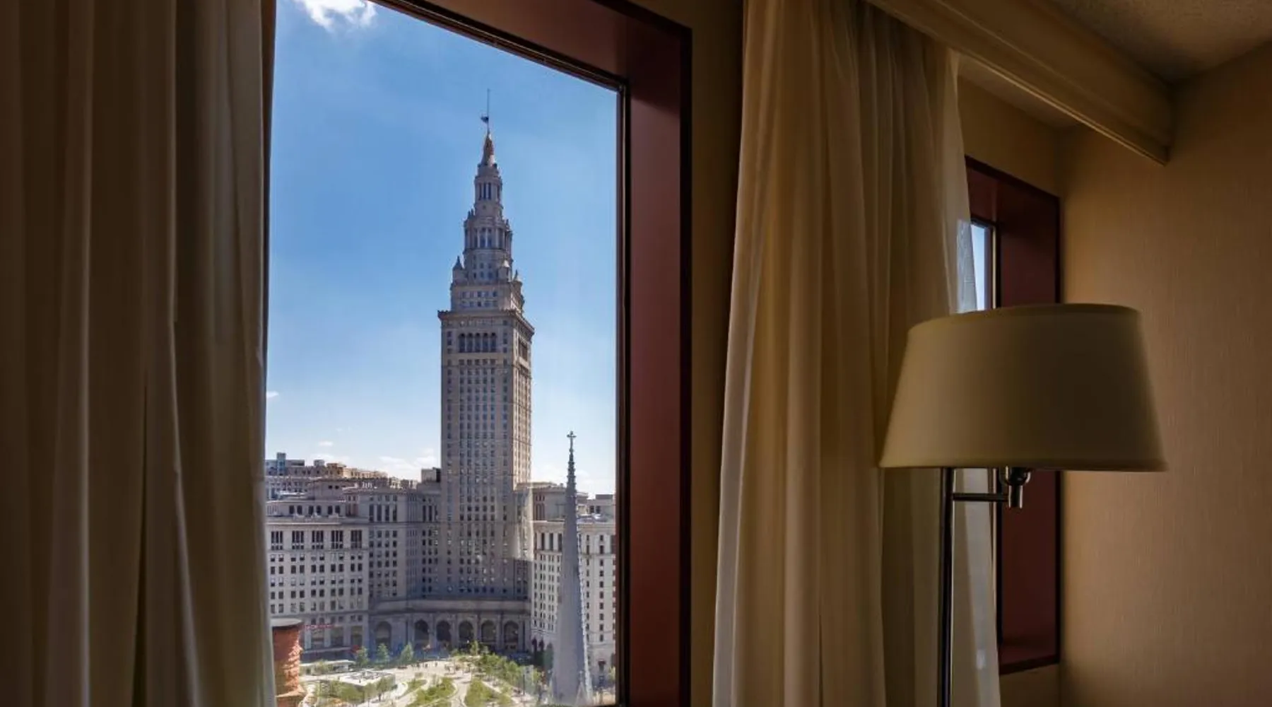 Located in the heart of downtown Cleveland, this hotel is less than a mile away from Cleveland Convention Center and offers a fitness center. Every room at Cleveland Marriott Downtown at Key Tower provides a flat-screen cable TV and marble bathrooms with rainfall shower heads. A seating area with a large chair and ottoman are also included. Guests can view sporting events on flat-screen plasma TVs while enjoying cocktails and casual dining at Greatroom Restaurant. 17,918 sq. ft. of meeting and event space is offered at Cleveland Marriott Downtown at Key Tower. Free WiFi is offered in the hotel lobby and public areas. Cleveland Marriott Downtown at Key Tower is within walking distance from Rocket Mortgage Field House, Progressive Field and the Rock & Roll Hall of Fame. Featuring a view of Lake Erie, this room includes a small refrigerator and a coffee maker. A desk and ironing facilities are also provided.