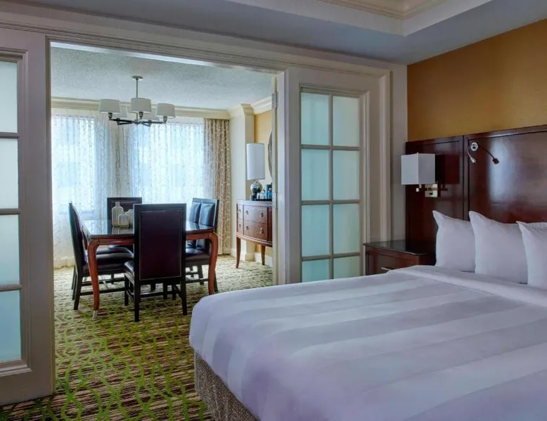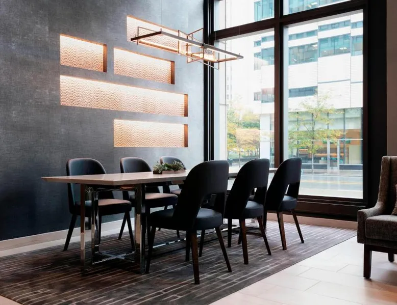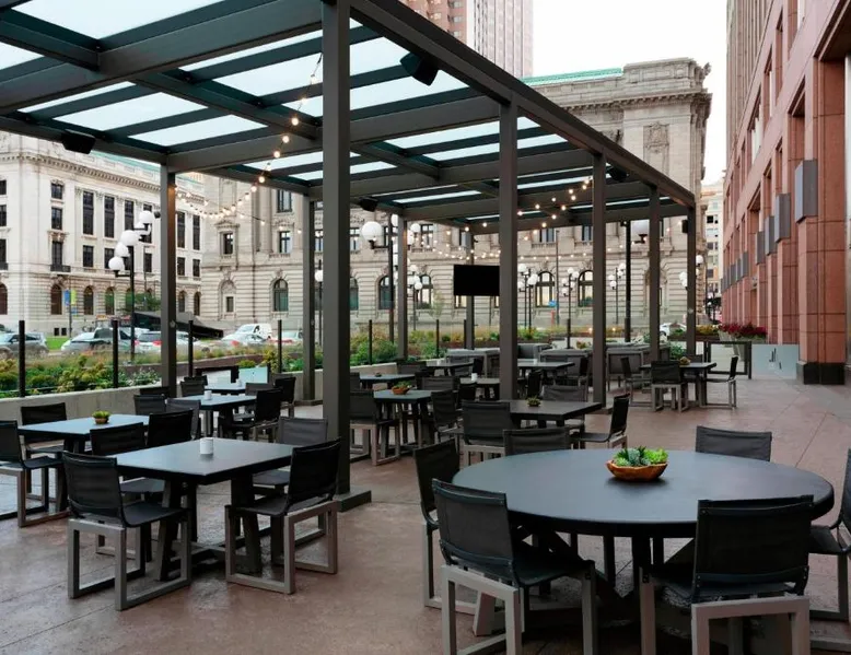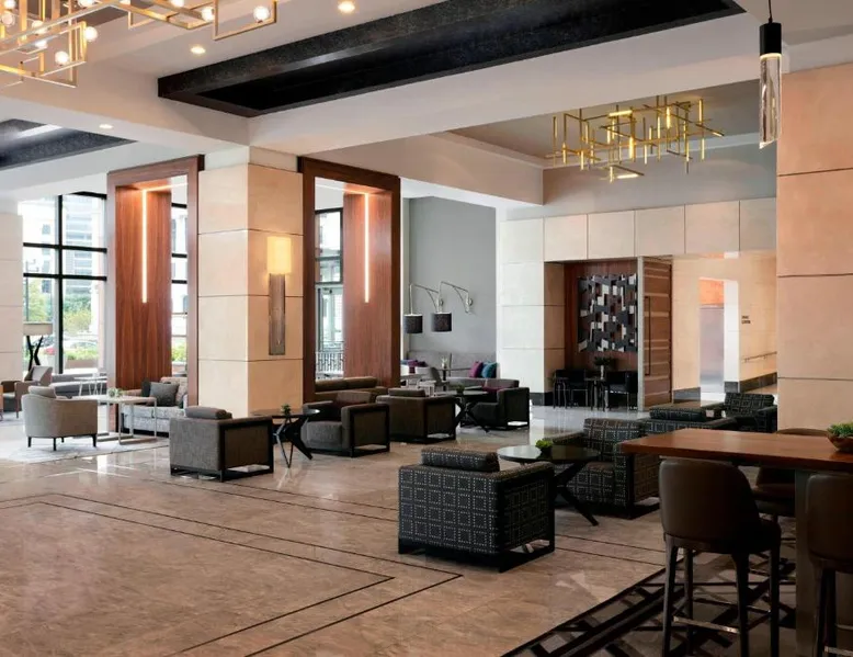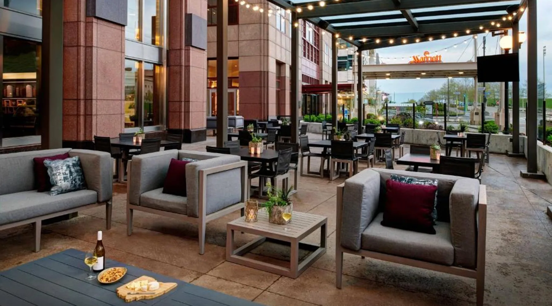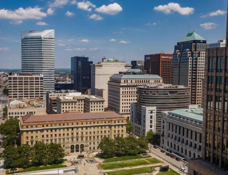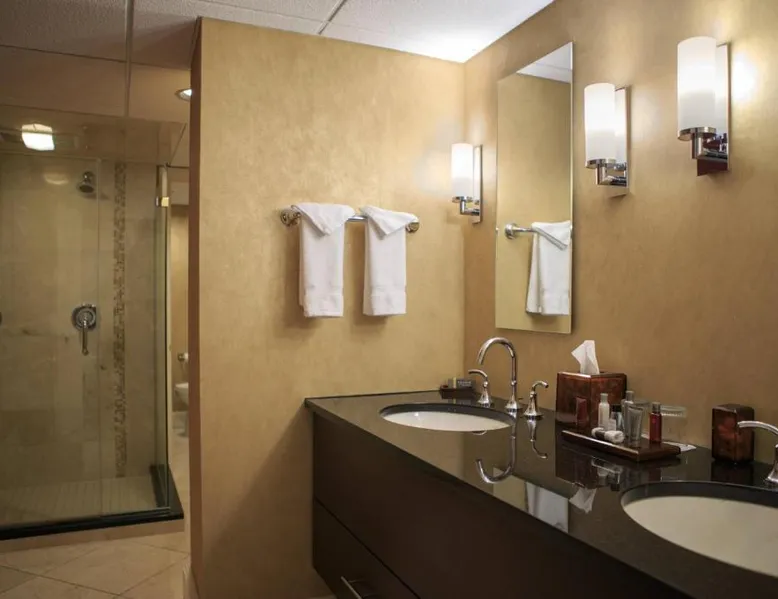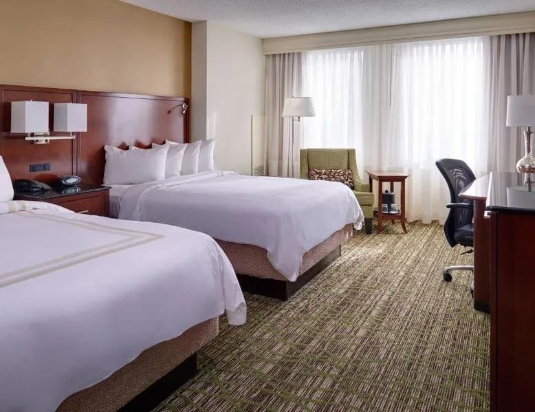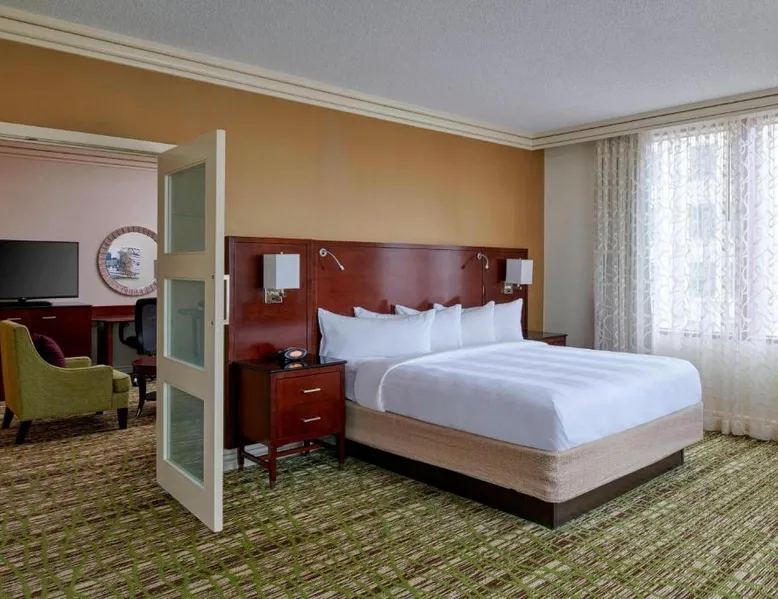 Located in the heart of downtown Cleveland, this hotel is less than a mile away from Cleveland Convention Center and offers a fitness center. Every room at Cleveland Marriott Downtown at Key Tower provides a flat-screen cable TV and marble bathrooms with rainfall shower heads. A seating area with a large chair and ottoman are also included. Guests can view sporting events on flat-screen plasma TVs while enjoying cocktails and casual dining at Greatroom Restaurant. 17,918 sq. ft. of meeting and event space is offered at Cleveland Marriott Downtown at Key Tower. Free WiFi is offered in the hotel lobby and public areas. Cleveland Marriott Downtown at Key Tower is within walking distance from Rocket Mortgage Field House, Progressive Field and the Rock & Roll Hall of Fame. Featuring a view of Lake Erie, this room includes a small refrigerator and a coffee maker. A desk and ironing facilities are also provided.