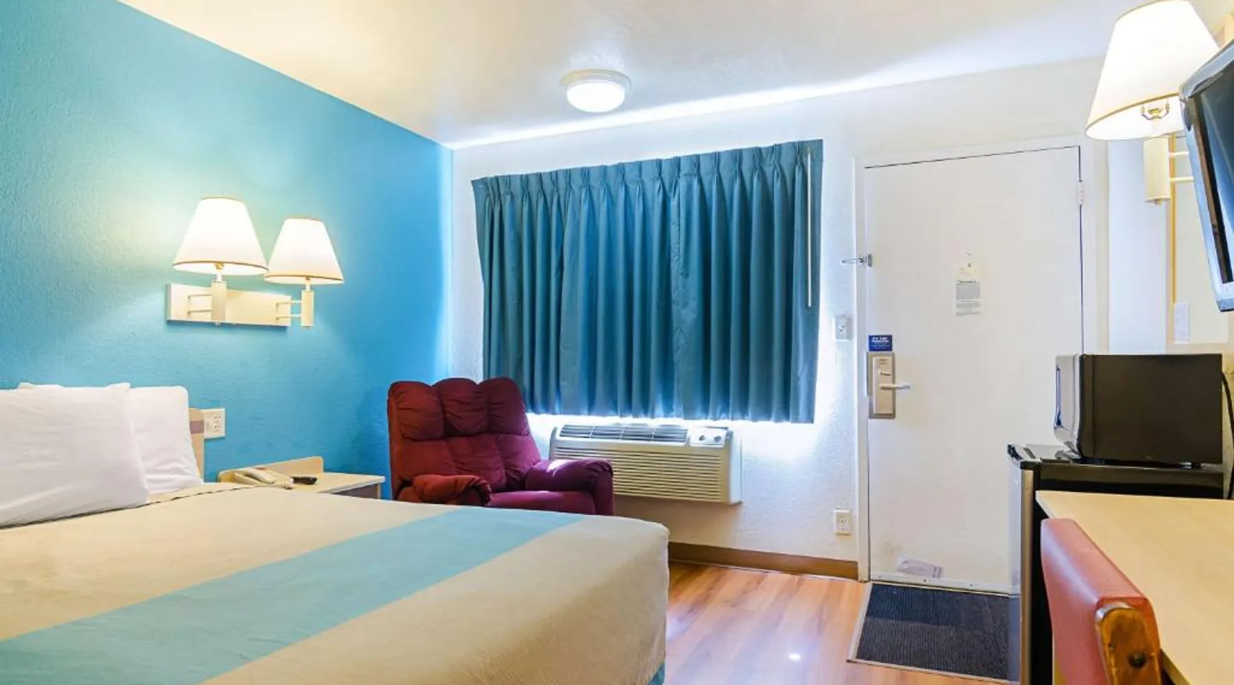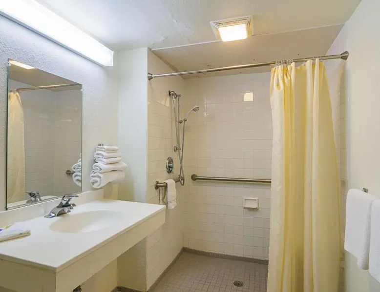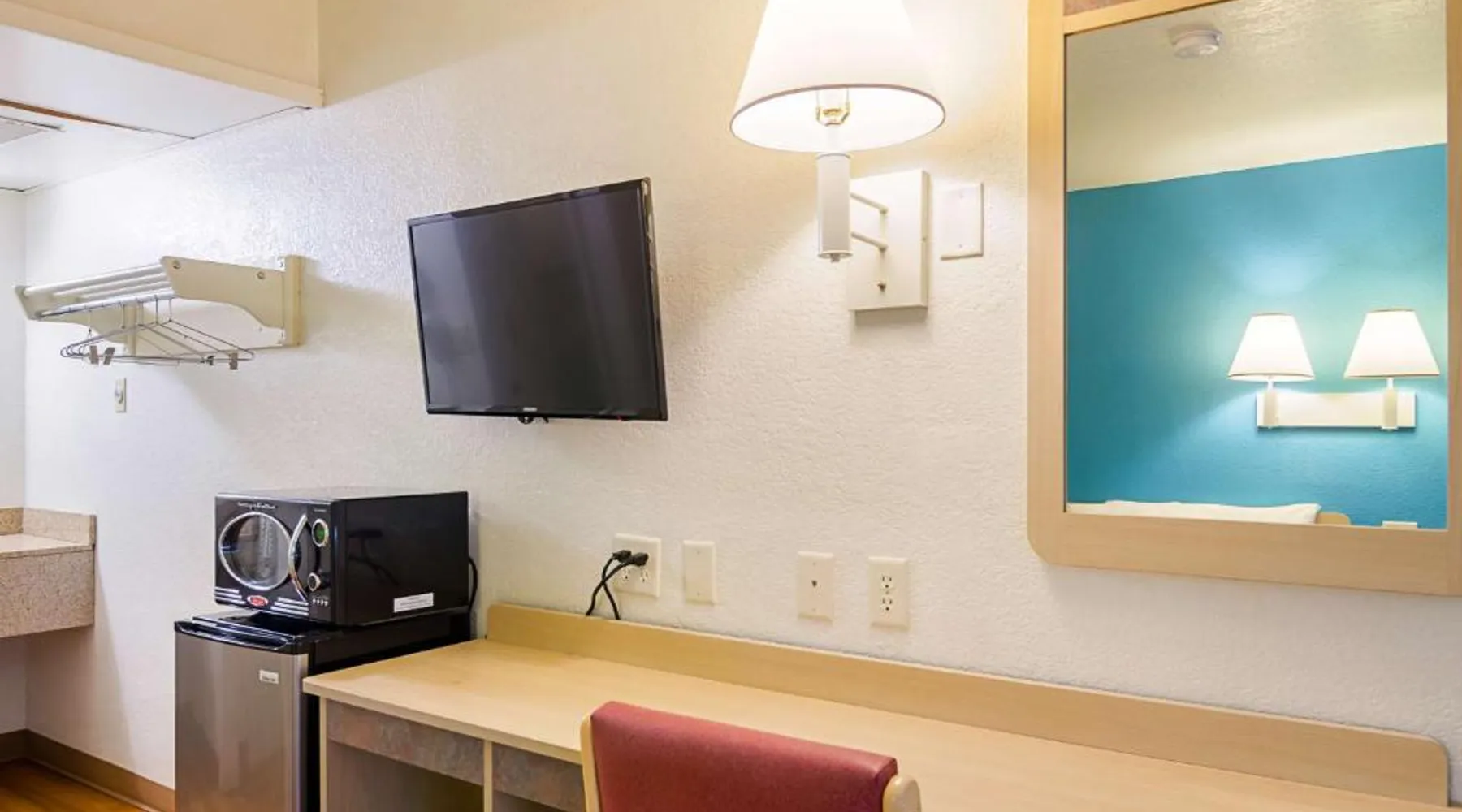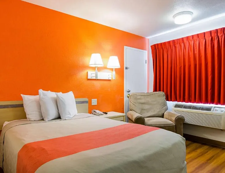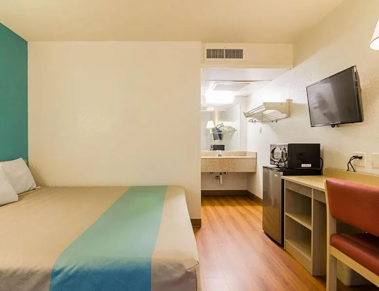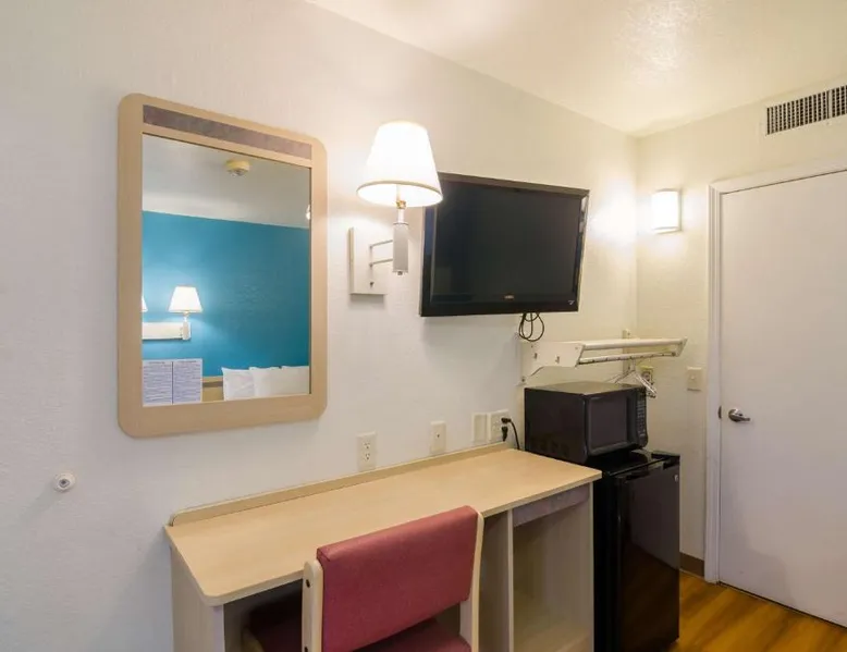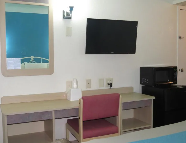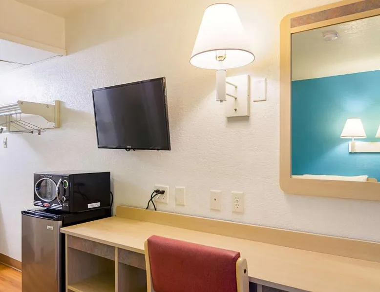 Comfortable Accommodations: Motel 6-Mitchell, SD in Mitchell offers air-conditioned rooms with private bathrooms, TVs, and free WiFi. Each room includes a bath with a walk-in shower, refrigerator, and microwave. Convenient Facilities: Guests benefit from a 24-hour front desk, free on-site private parking, and a pet-friendly environment. Additional amenities include a bath, walk-in shower, and shower. Prime Location: Located 73 mi from Sioux Falls Regional Airport, the hotel is near an ice-skating rink. Guests appreciate the value for money, attentive staff, and convenient location. A flat-screen cable TV is provided in this room. There are also a microwave and refrigerator.