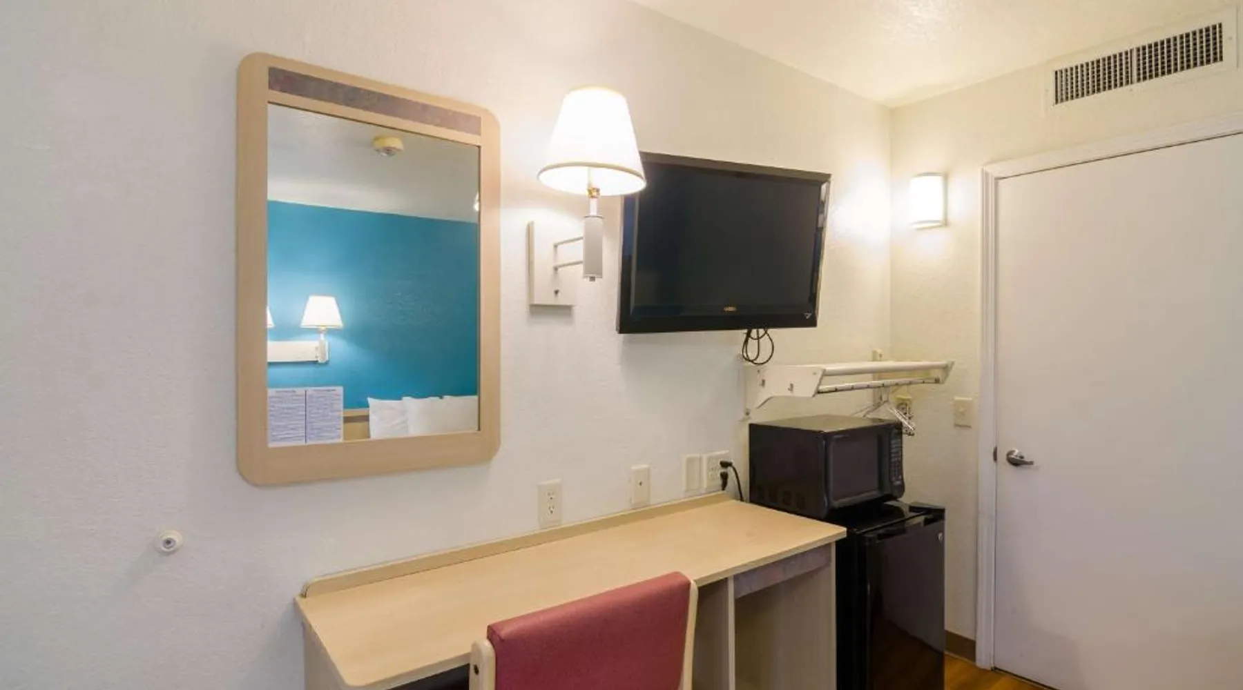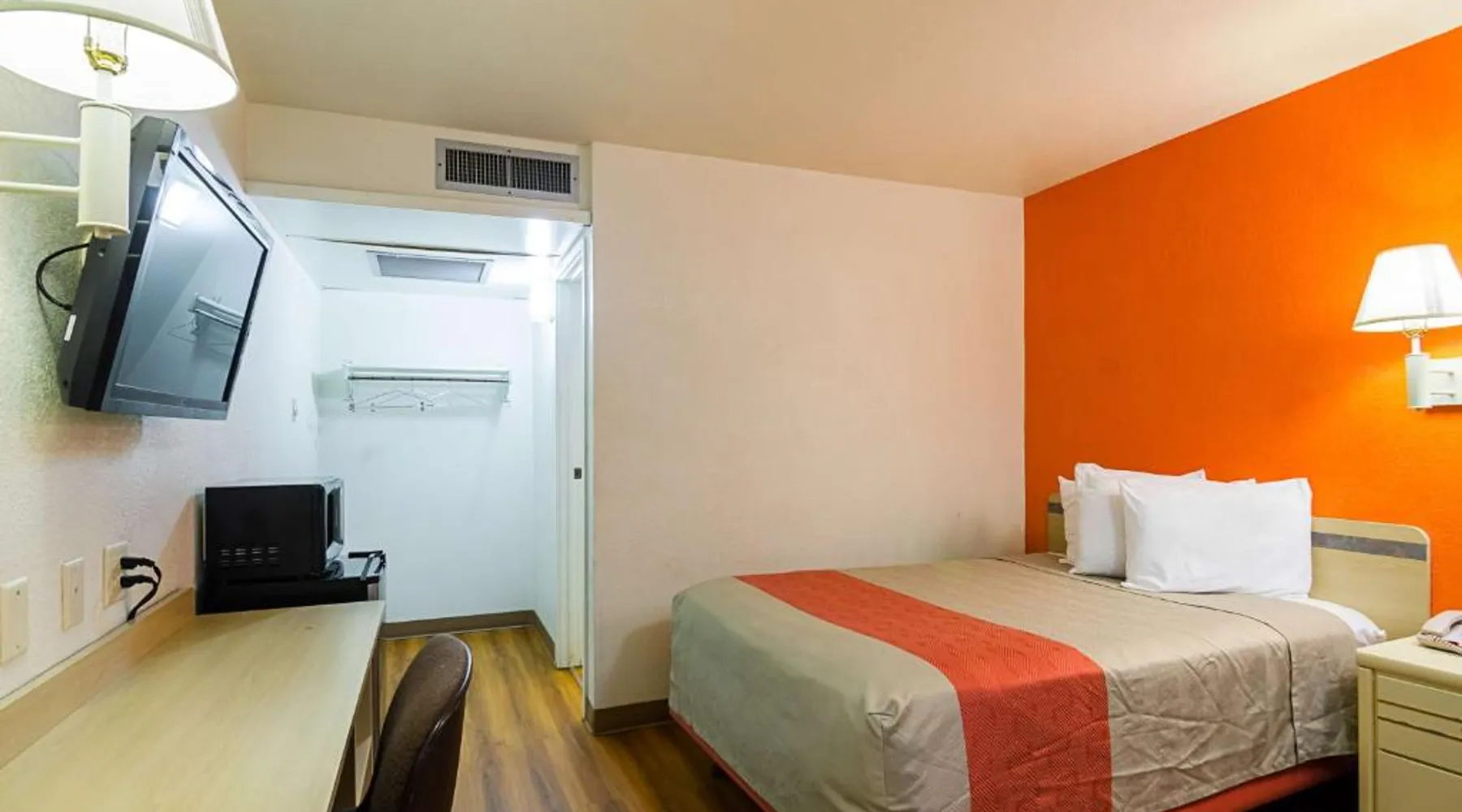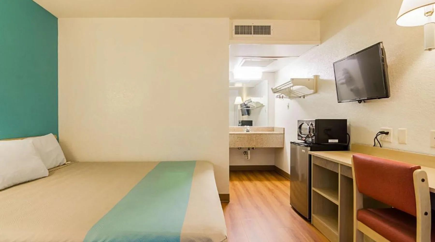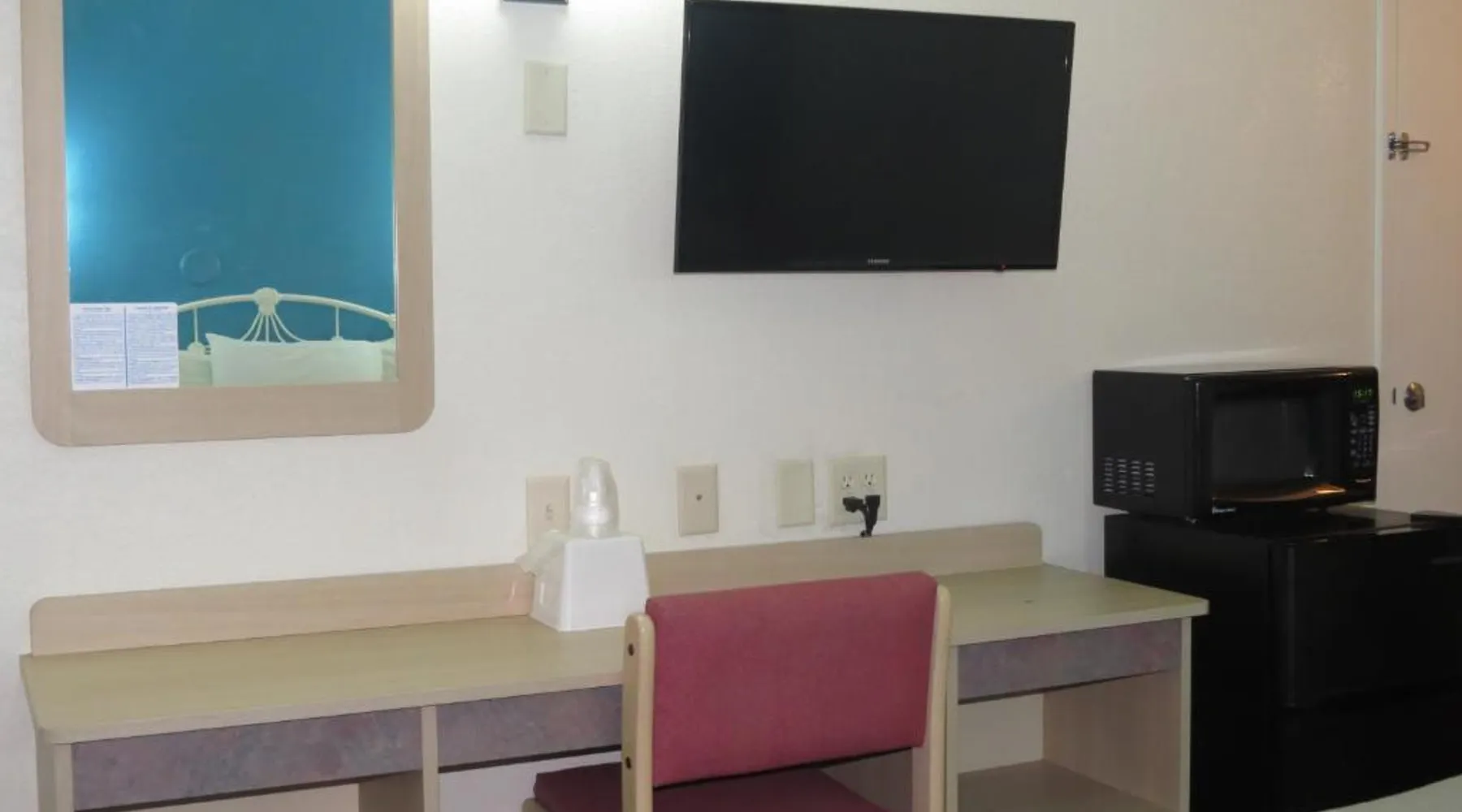 Comfortable Accommodations: Motel 6-Mitchell, SD in Mitchell offers air-conditioned rooms with private bathrooms, TVs, and free WiFi. Each room includes a bath with a walk-in shower, refrigerator, and microwave. Convenient Facilities: Guests benefit from a 24-hour front desk, free on-site private parking, and a pet-friendly environment. Additional amenities include a bath, walk-in shower, and shower. Prime Location: Located 73 mi from Sioux Falls Regional Airport, the hotel is near an ice-skating rink. Guests appreciate the value for money, attentive staff, and convenient location. A flat-screen cable TV is provided in this room. There are also a microwave and refrigerator.