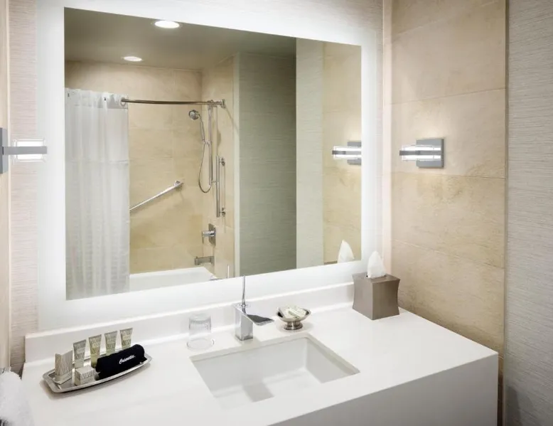 Less than a half-mile from shopping at Arundel Mills, this hotel offers a free shuttle to Baltimore Washington International Airport, 6 miles away. It features an indoor pool, an on-site restaurant and rooms with a 40-inch flat-screen TV. An iPod dock and free WiFi are provided in every spacious room at The Hotel at Arundel Preserve. A small fridge and a contemporary bathroom with luxury bath amenities are included. Arundel Preserve Hotel offers dining at Grillfire restaurant. It serves American cuisine and is open all day. A full bar with creative house cocktails is also available. 24-hour fitness and business facilities are located on-site for guest convenience. This hotel is 1 mile from the Baltimore/Washington Parkway and about 3.5 miles from the entrance to Fort Meade. Downtown Baltimore is 14 miles away. Located on the 7th floor, this spacious room features a daily $15 breakfast voucher for our Grillfire Restaurant, plush robes and slippers, microwave, and a 12pm late checkout. Lounge in the deluxe velour bathrobes and slippers, sip your complimentary bottled water as you request your daily housekeeping refresh service. Feel surrounded in luxury with custom-designed contemporary furniture, Samsung HD TV, complimentary Wi-Fi, a spacious work area, a single cup coffee maker, a mini refrigerator, and an in-room safe.