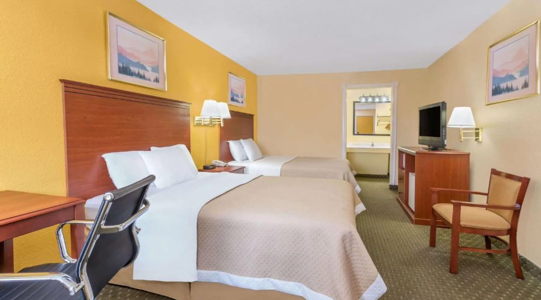 This Buffalo, Wyoming hotel offers a hot continental breakfast, free Wi-Fi and all rooms feature a large flat-screen TV. It is located 10 miles from Bighorn National Forest. Rooms at Alamo Inn are equipped with a microwave, refrigerator and cable TV. A work desk and seating area are included. Alamo Inn has an on-site business center for guests’ convenience. The front desk is open 24 hours and free parking is provided. Fort Phil Kearny Historic Site is a 20-minute drive from this hotel. Moose-watching on the Cloud Peak Sky, antique shopping and hiking are all nearby activities. Featuring free toiletries, this quadruple room includes a private bathroom with a bath. The quadruple room features air conditioning, a carpeted floor, heating and a flat-screen TV. The unit has 2 beds.