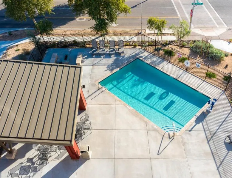Comfortable Accommodations: Sonesta Simply Suites Avondale in Avondale offers family rooms with air-conditioning, kitchenettes, private bathrooms, and free WiFi. Each room includes a work desk, TV, and free toiletries. Leisure Facilities: Guests can enjoy a year-round outdoor swimming pool, outdoor fireplace, and outdoor seating area. Additional amenities include a lounge, minimarket, and picnic area. Convenient Services: The hotel provides free on-site private parking, a 24-hour front desk, daily housekeeping, and express check-in and check-out services. Nearby Attractions: Phenix Sky Harbor International Airport is 17 mi away. Nearby points include State Farm Stadium (7.5 mi) and Phenix Art Museum (14 mi). Offering free toiletries, this quadruple room includes a private bathroom with a shower and a hairdryer. In the well-equipped kitchen, guests will find a stovetop, a refrigerator, a microwave and a toaster. This air-conditioned quadruple room is consisted of of a dining area, a flat-screen TV with cable channels a tea and coffee maker and a seating area. The unit offers 2 beds.