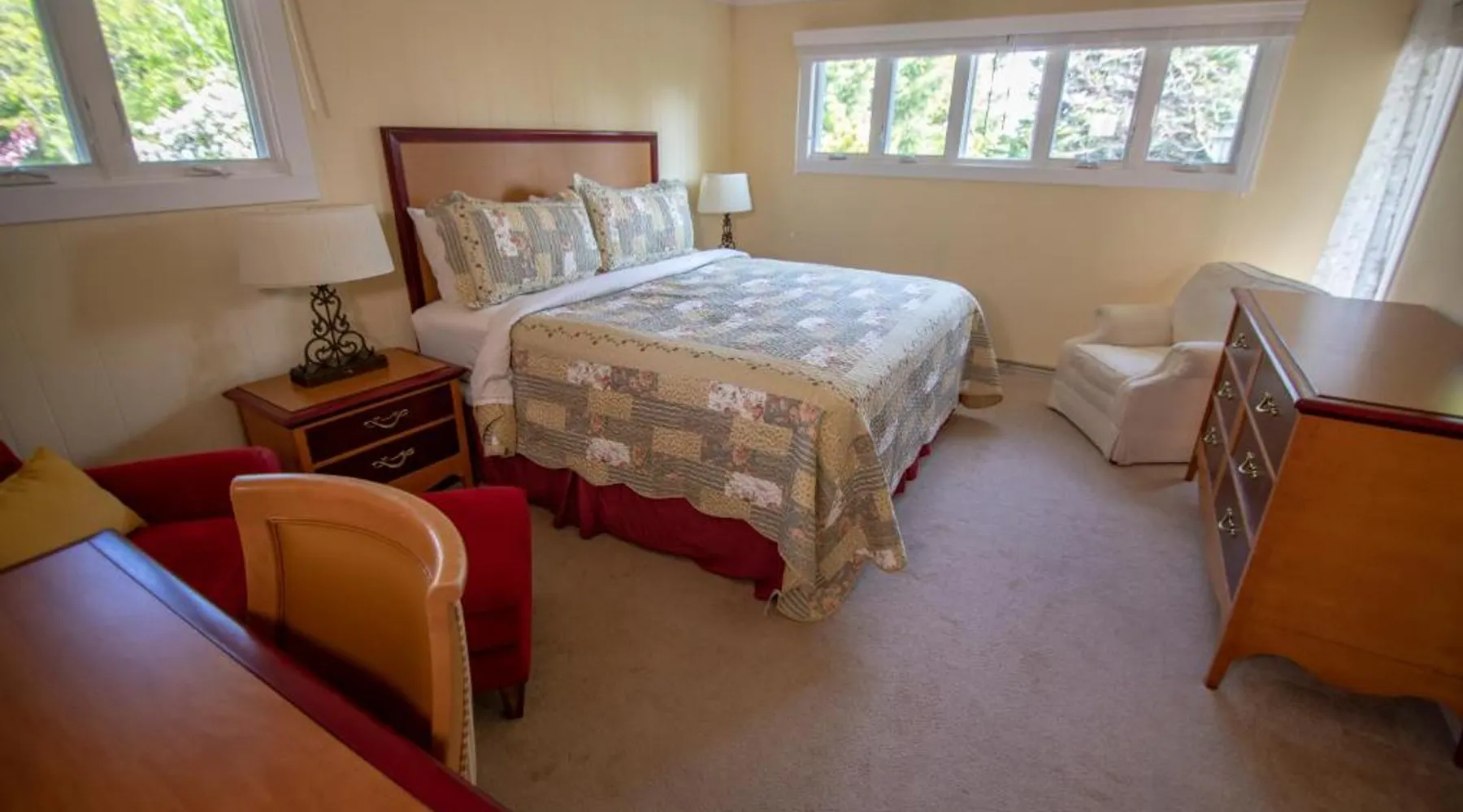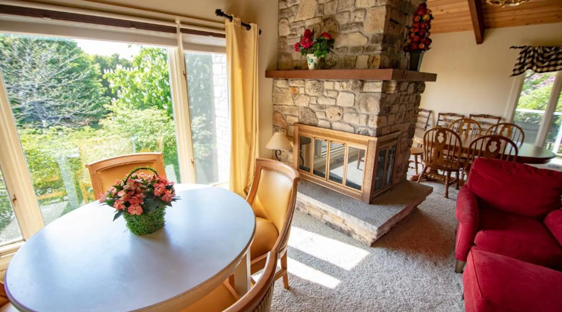 Comfortable Accommodations: Coachlite Inn in Sister Bay offers air-conditioned rooms with private bathrooms, tea and coffee makers, and free WiFi. Each room includes a refrigerator, microwave, TV, and wardrobe. Convenient Facilities: Guests can enjoy a lounge, outdoor seating area, picnic area, and bicycle parking. Additional amenities include a kitchenette, spa bath, patio, fireplace, and ground-floor unit. Prime Location: Located 82 mi from Green Bay–Austin Straubel International Airport, the inn is a short walk from Sister Bay Beach (17 minutes) and Frykman Studio Gallery (1969 feet). Nearby attractions include Cana Island Lighthouse (11 mi) and Waterfront Park (15 minutes). Guest Satisfaction: Highly rated for its convenient location, attentive staff, and comfortable beds. This suite features a fireplace. Boasting a private entrance, this air-conditioned suite features 1 living room, 3 separate bedrooms and 2 bathrooms with a walk-in shower and a bath. Meals can be prepared in the kitchen, which has a stovetop, a refrigerator, a dishwasher and an oven. The spacious suite features a tea and coffee maker, a wardrobe, a sofa, heating, as well as a flat-screen TV with cable channels. The unit has 7 beds.