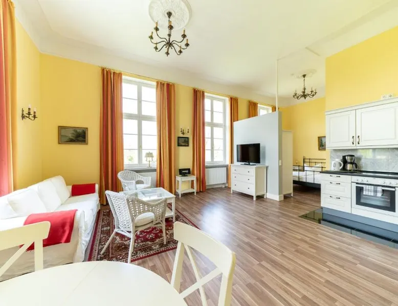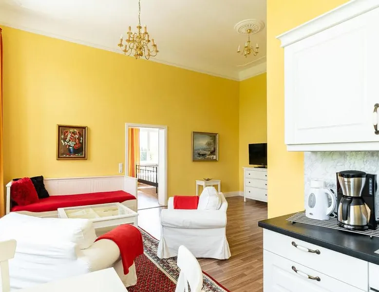 Historic Setting: Gutshaus Groß Helle in Mölln offers a unique apartment housed in a historic building. Guests enjoy a private beach area, spa facilities, sun terrace, and a beautiful garden. Comfortable Amenities: The apartment features a lounge, steam room, outdoor play area, and a children's playground. Additional amenities include free WiFi, a kitchenette, and free on-site private parking. Local Attractions: Located 50 mi from Rostock-Laage Airport, the property is near Neubrandenburg University of Applied Sciences (11 mi) and Marienkirche Neubrandenburg (11 mi). Guests appreciate the quietness of the area and nearby lakes. Boasting a private entrance, this apartment also comes with 1 bedroom, a seating area and 1 bathroom with a shower and a hairdryer. In the well-equipped kitchen, guests will find a stovetop, a refrigerator, a dishwasher and kitchenware. The apartment features a tea and coffee maker, a dining area, a wardrobe, a flat-screen TV with satellite channels, as well as lake views. The unit has 1 bed.