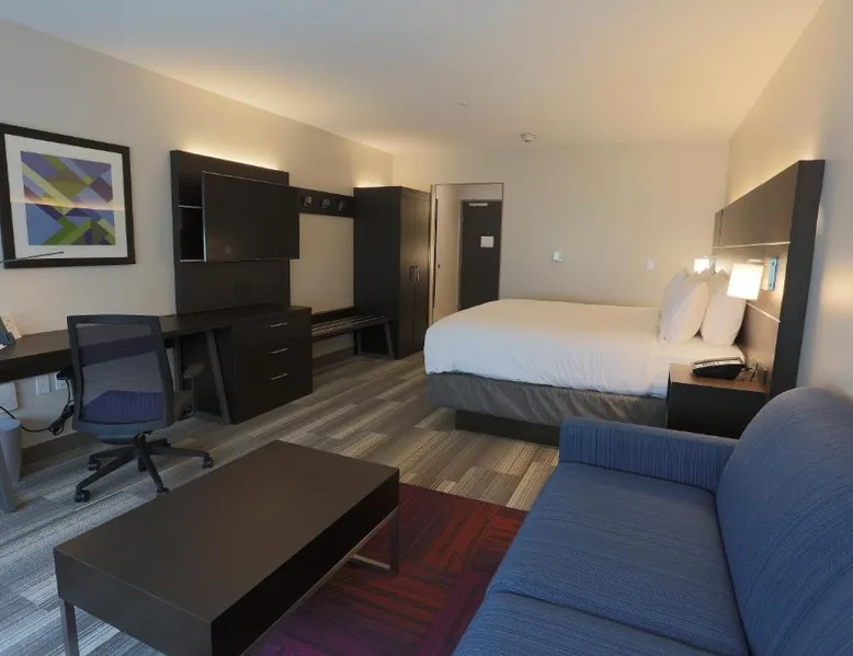 Comfortable Accommodations: Holiday Inn Express Oneonta by IHG in Oneonta offers air-conditioned rooms with private bathrooms, free WiFi, and modern amenities. Each room includes a tea and coffee maker, hairdryer, free toiletries, shower, TV, and work desk. Exceptional Facilities: Guests can enjoy an indoor swimming pool, fitness room, outdoor fireplace, and outdoor seating area. Additional facilities include a lounge, minimarket, business area, and free on-site parking. Convenient Location: Located 62 mi from Greater Binghamton Airport, the hotel is 23 mi from Doubleday Field and Baseball Hall of Fame. Suny Oneonta is 2.5 mi away, providing easy access to local attractions. Guest Satisfaction: Highly rated for its breakfast, attentive staff, and room cleanliness, the property ensures a pleasant stay for all visitors. This room features a coffee maker, microwave, refrigerator, iron with ironing board, in-room safe, hairdryer and cable TV. It is equipped with multiple outlets as well as a USB port. Bath amenities are provided as well.