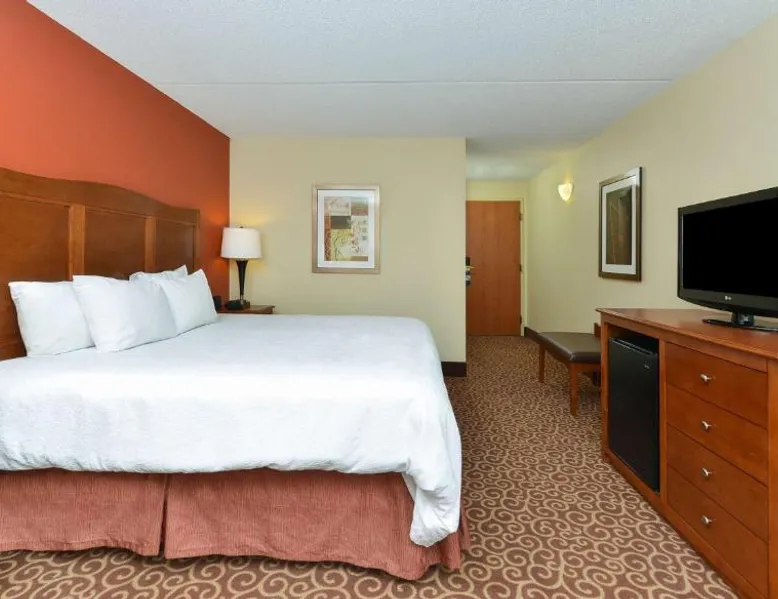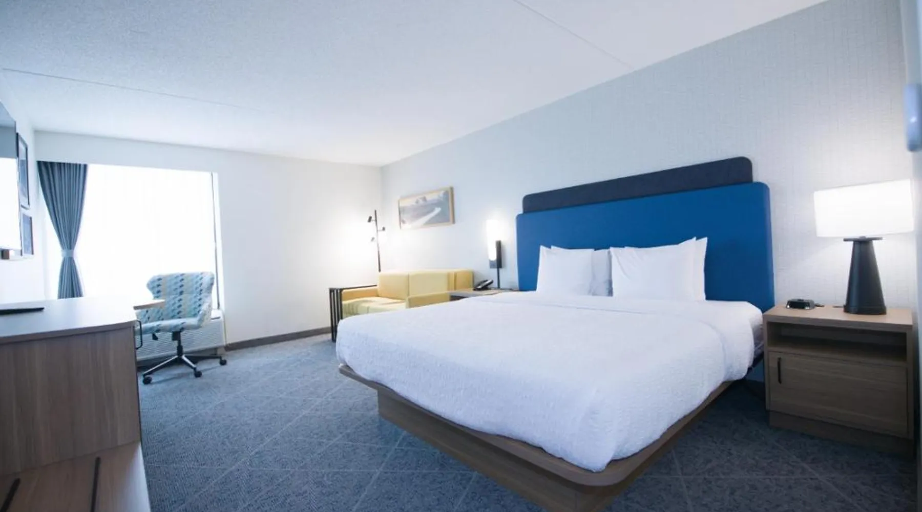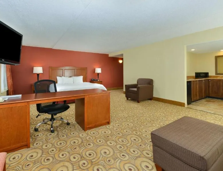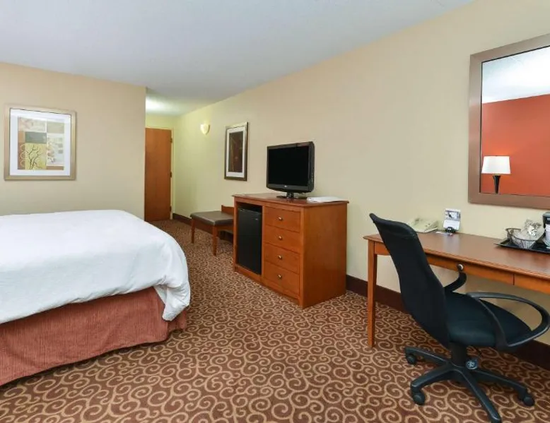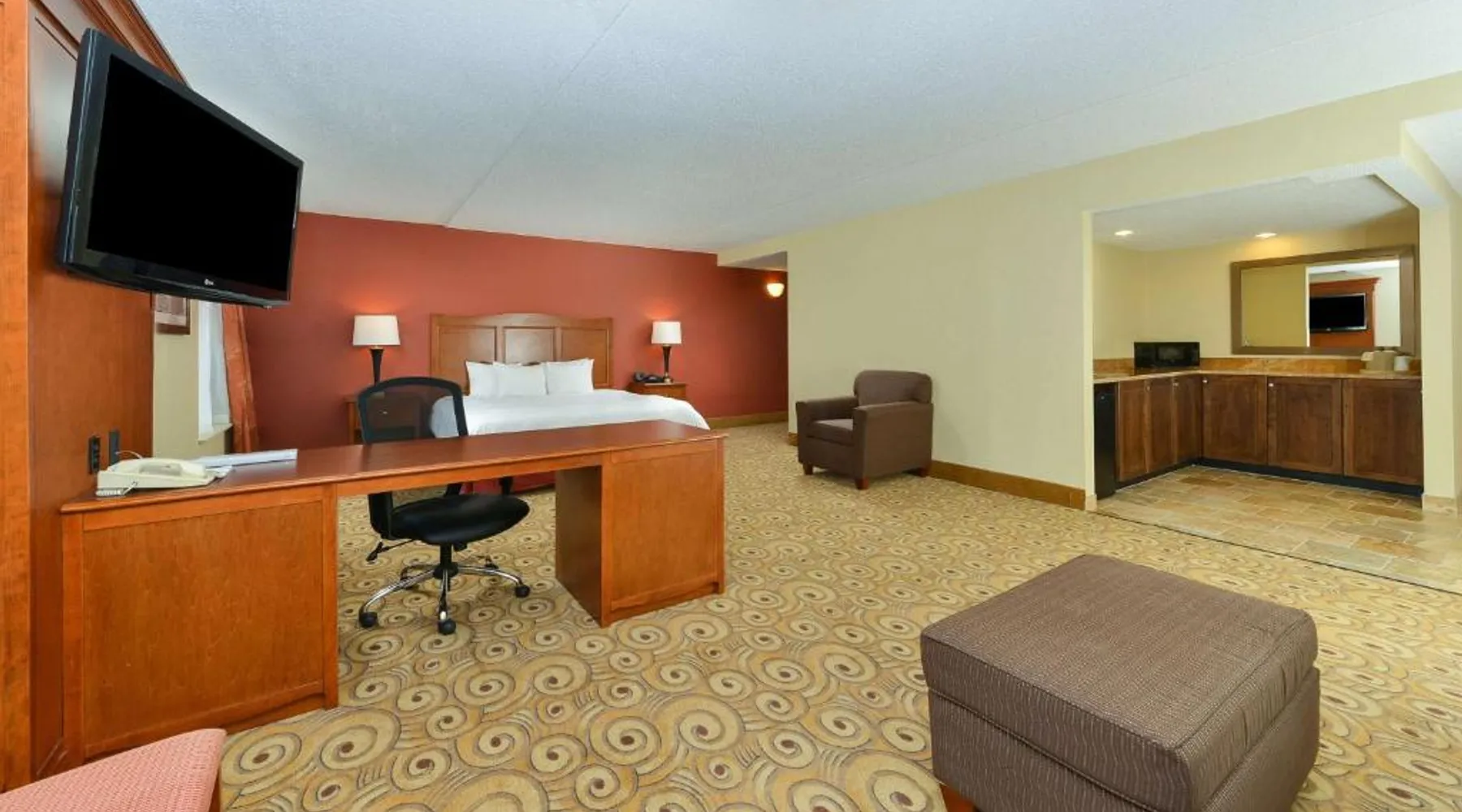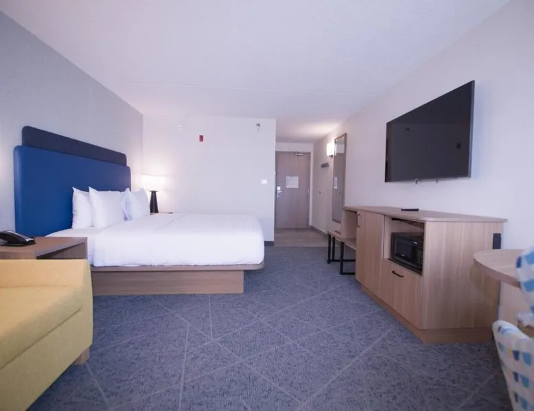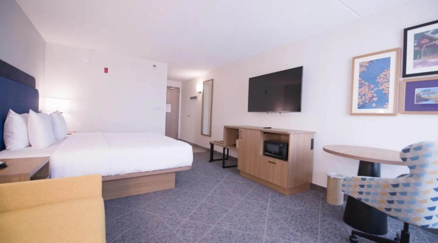 Comfortable Accommodations: Rooms feature air-conditioning, tea and coffee makers, hairdryers, refrigerators, microwaves, showers, TVs, and wardrobes. Additional amenities include sofa beds, walk-in showers, and seating areas. Leisure Facilities: Guests can enjoy an indoor swimming pool, fitness center, and sun terrace. The property also offers a fitness room, elevator, 24-hour front desk, minimarket, daily housekeeping service, business area, and outdoor seating area. Dining Experience: A complimentary American buffet breakfast is served, including juice, fresh pastries, cheese, and fruits. Location and Attractions: Located in Carol Stream, the hotel is 15 mi from Chicago O'Hare International Airport. Nearby attractions include United Center (26 mi), Lincoln Park Zoo (27 mi), and Willis Tower (29 mi). Guests appreciate the attentive staff, excellent breakfast, and clean rooms. This room features a flat-screen internet-ready TV, fridge, and individual climate-control system.