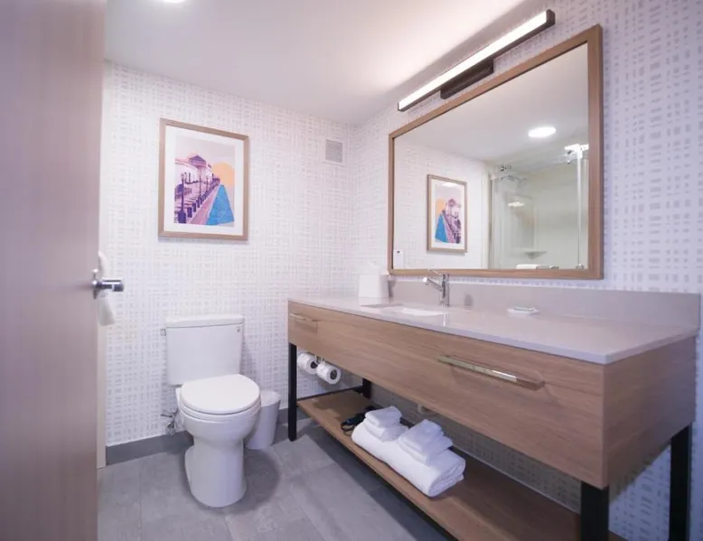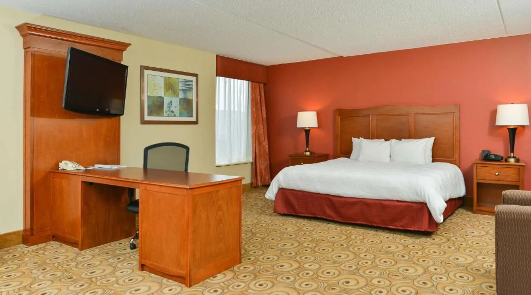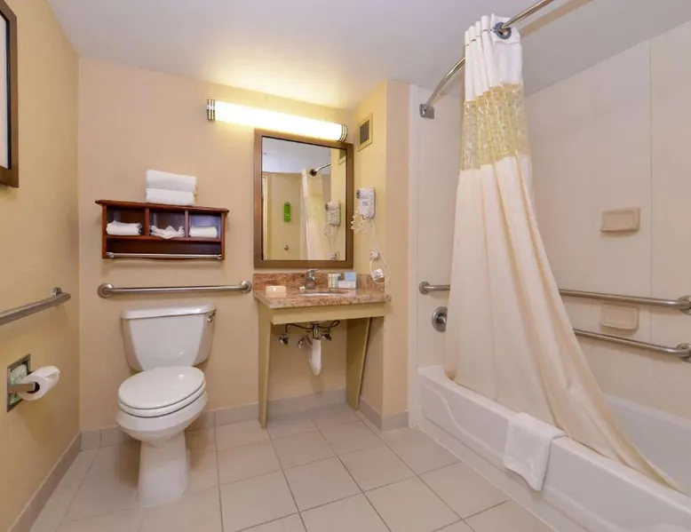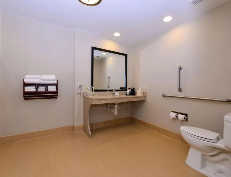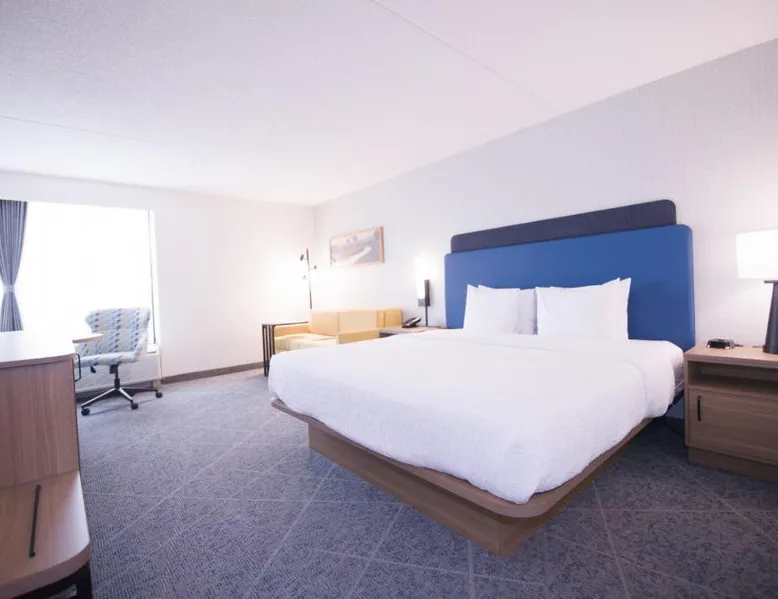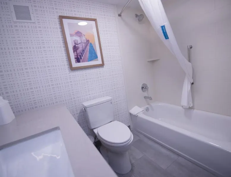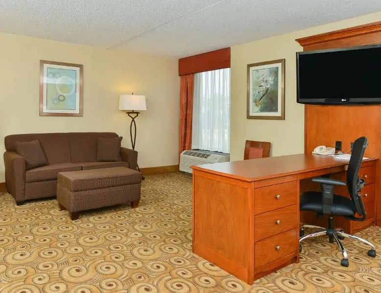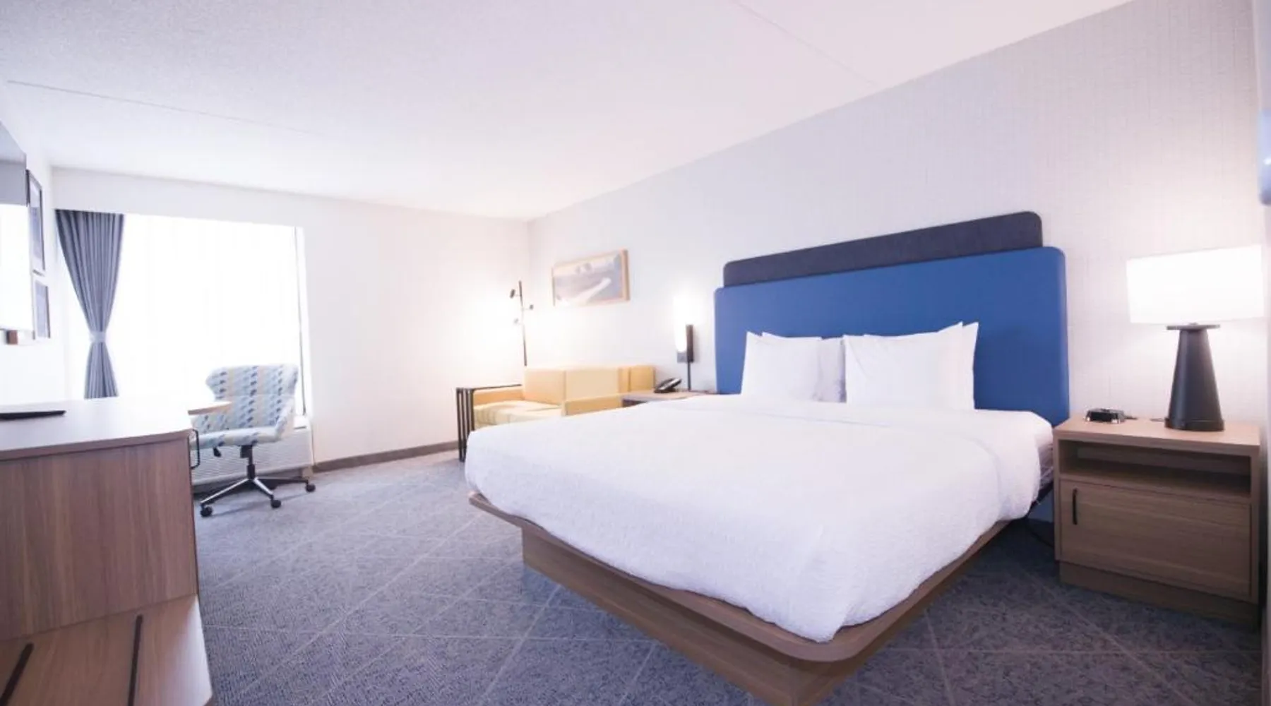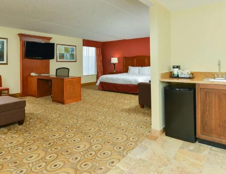 Comfortable Accommodations: Rooms feature air-conditioning, tea and coffee makers, hairdryers, refrigerators, microwaves, showers, TVs, and wardrobes. Additional amenities include sofa beds, walk-in showers, and seating areas. Leisure Facilities: Guests can enjoy an indoor swimming pool, fitness center, and sun terrace. The property also offers a fitness room, elevator, 24-hour front desk, minimarket, daily housekeeping service, business area, and outdoor seating area. Dining Experience: A complimentary American buffet breakfast is served, including juice, fresh pastries, cheese, and fruits. Location and Attractions: Located in Carol Stream, the hotel is 15 mi from Chicago O'Hare International Airport. Nearby attractions include United Center (26 mi), Lincoln Park Zoo (27 mi), and Willis Tower (29 mi). Guests appreciate the attentive staff, excellent breakfast, and clean rooms. This room features a flat-screen internet-ready TV, fridge, and individual climate-control system.