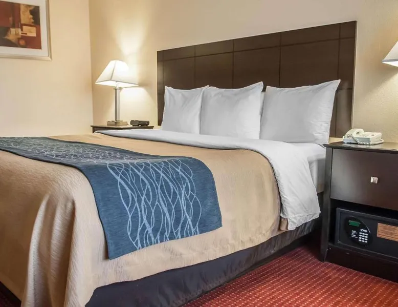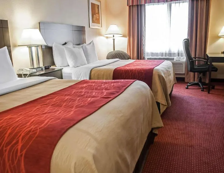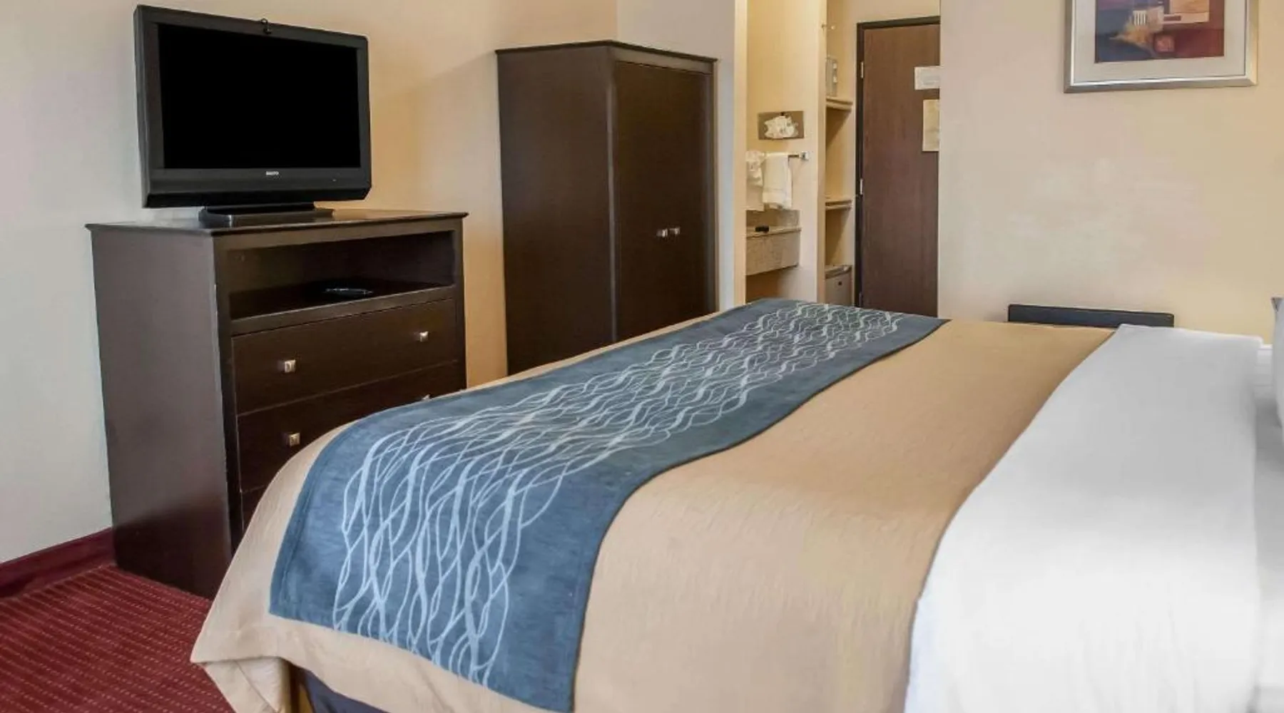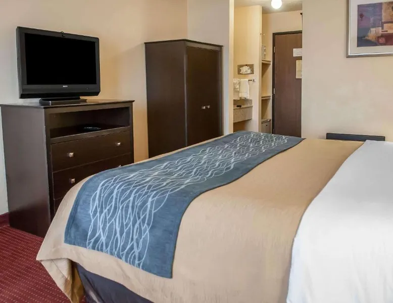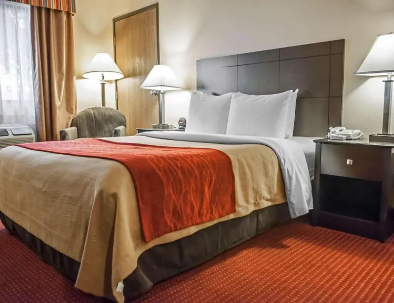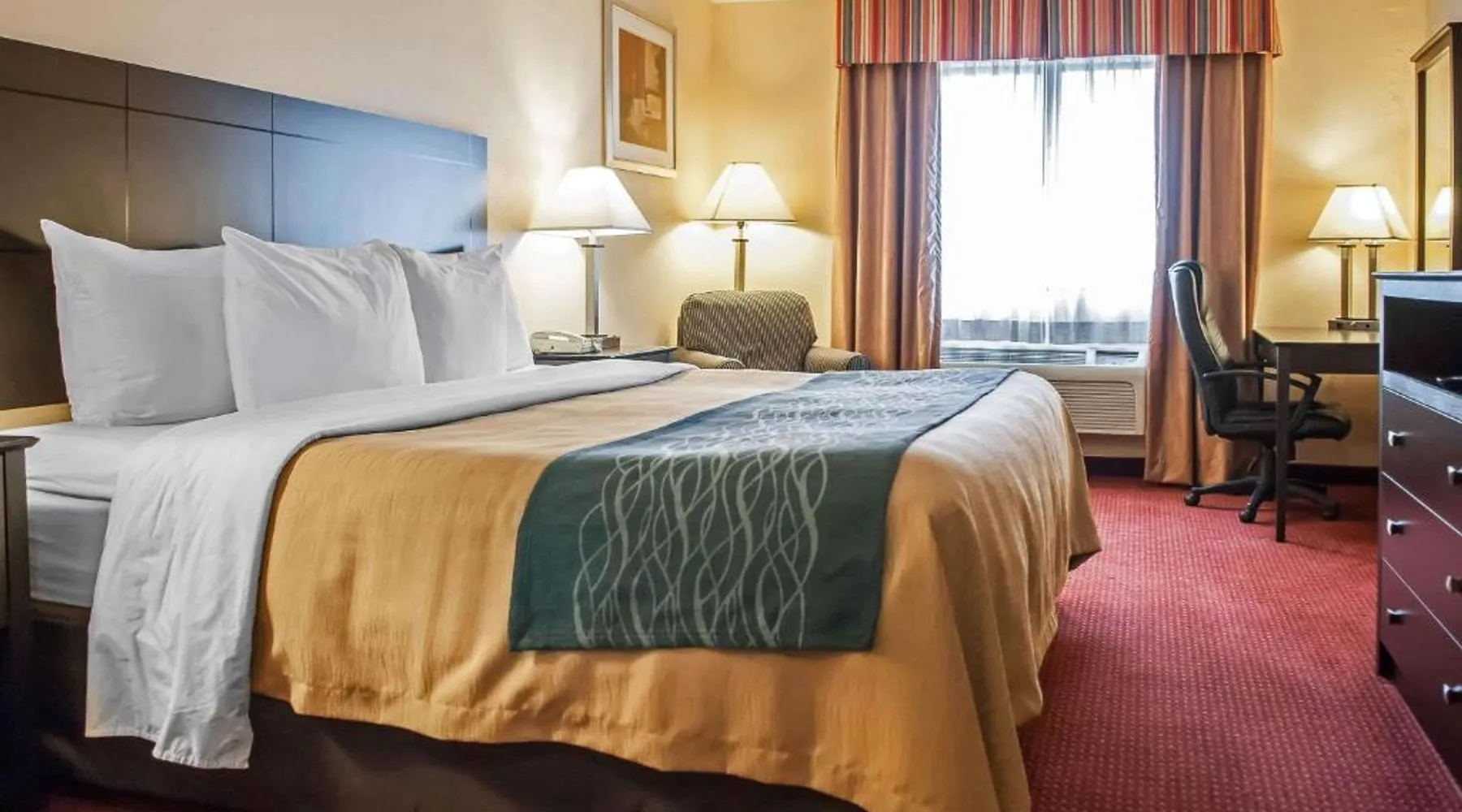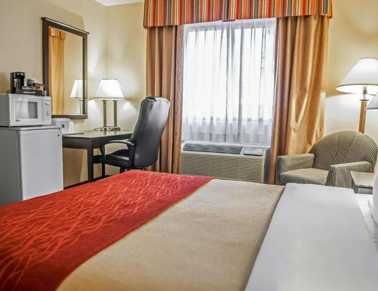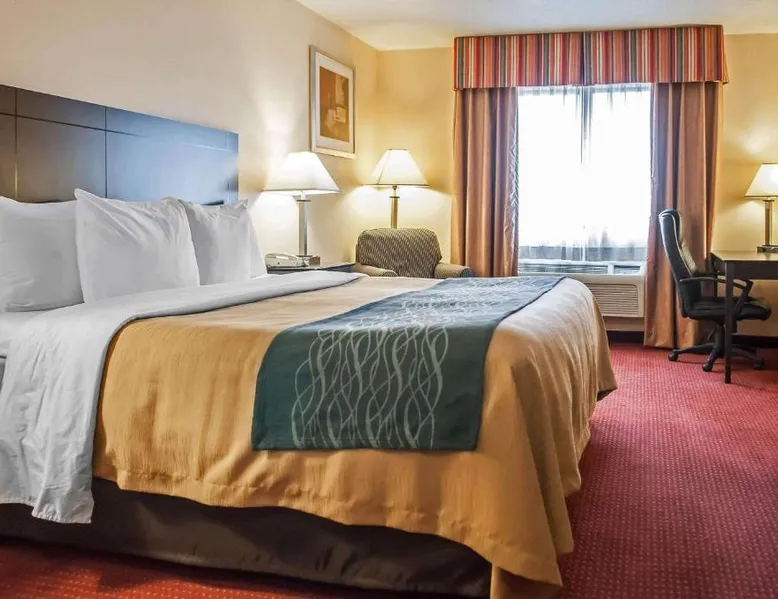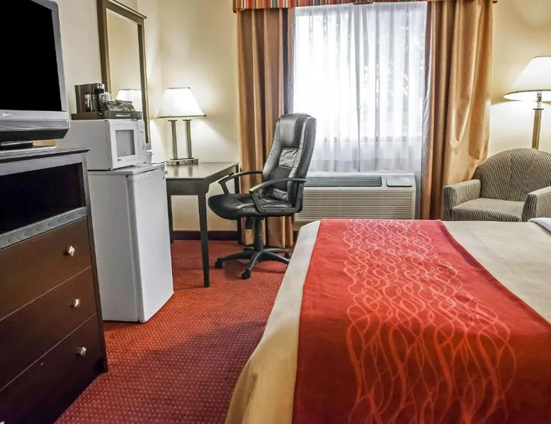 Comfortable Accommodations: Quality Inn Rio Rancho in Rio Rancho offers family rooms with private bathrooms, ensuring a pleasant stay. Each room features a work desk, TV, and complimentary WiFi. Convenient Facilities: Guests benefit from free on-site private parking, a 24-hour front desk, and a business area. Additional amenities include a tea and coffee maker, hairdryer, and a seating area. Delicious Breakfast: A continental buffet breakfast is served daily, offering juice, fresh pastries, and fruits. Private check-in and check-out services enhance the guest experience. Local Attractions: Located 19 mi from Albuquerque International Sunport, the inn is a 12-minute walk from Albuquerque Sweet Escape Ballooning. Nearby attractions include Cliff's Amusement Park (11 mi) and Petroglyph National Monument (11 mi). Free Wi-Fi, a flat-screen TV with premium channels, a microwave, a small fridge, a sofa, an ottoman and a work desk with ergonomic chair are included in this room.