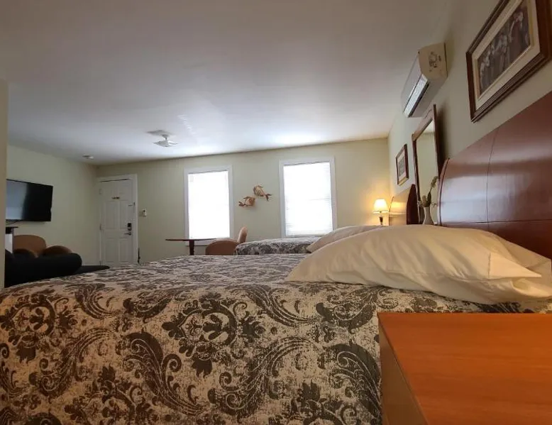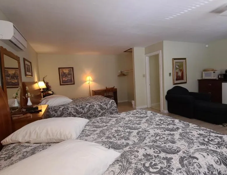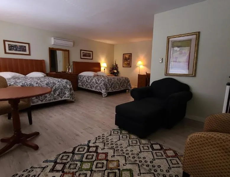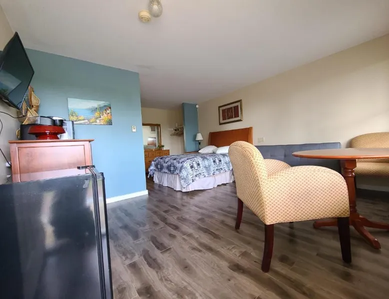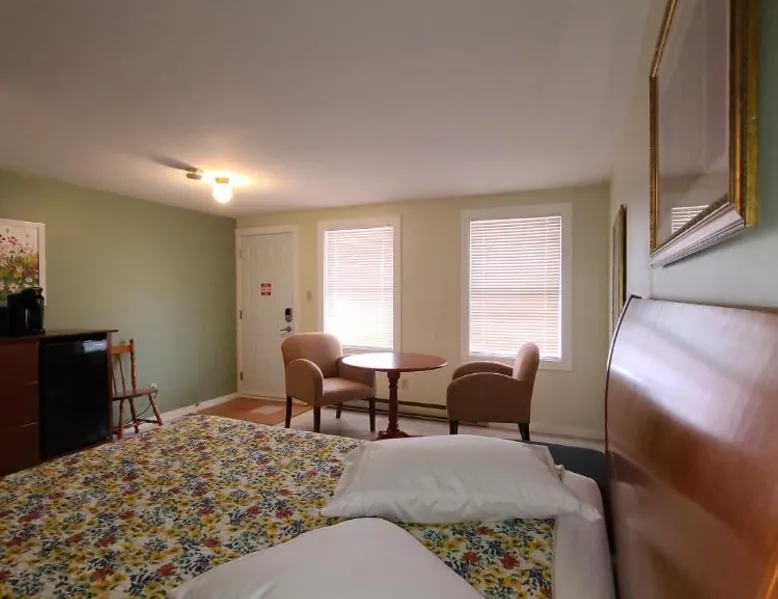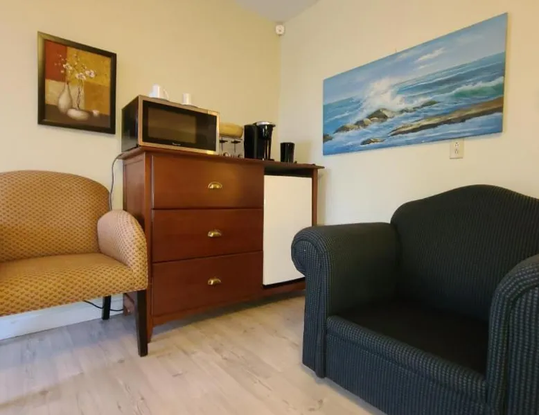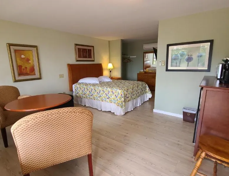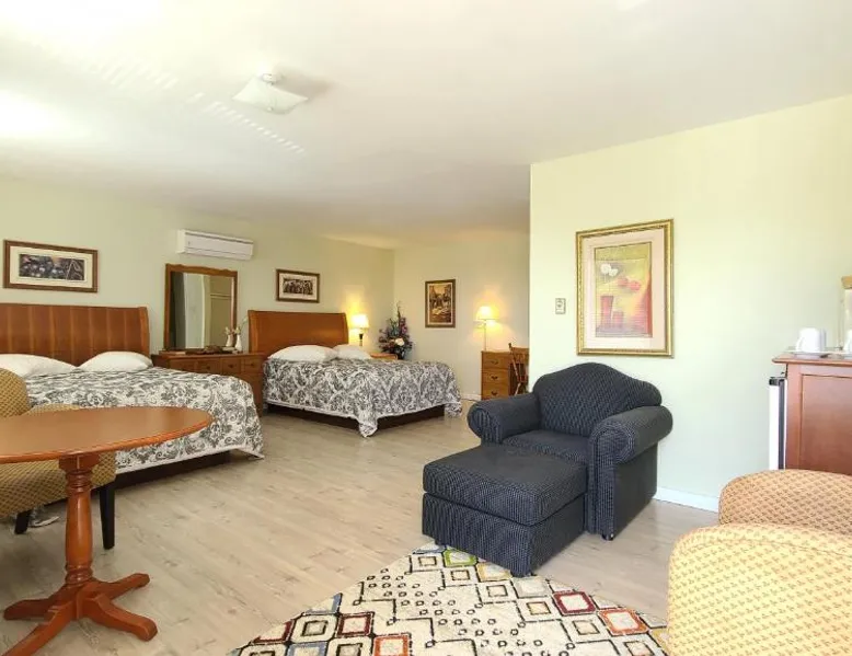 Comfortable Accommodations: Bouctouche Bay Inn in Bouctouche offers family rooms with private bathrooms, air-conditioning, and river views. Each room includes a balcony, sofa bed, and free WiFi. Outdoor Amenities: Guests can relax on the sun terrace or in the garden, enjoy the outdoor fireplace, and utilize the shared kitchen and outdoor seating area. The property also features a picnic area and bicycle parking. Convenient Facilities: The motel provides free on-site private parking, a dining area, and a work desk. Additional amenities include a barbecue, tea and coffee maker, and free toiletries. Activities and Location: Located 28 mi from Greater Moncton Roméo LeBlanc International Airport, the inn offers fishing, hiking, and cycling. Highly rated for room cleanliness, staff support, and comfort. This family room features a toaster, dining area and air conditioning. NOT PET FRIENDLY ROOM