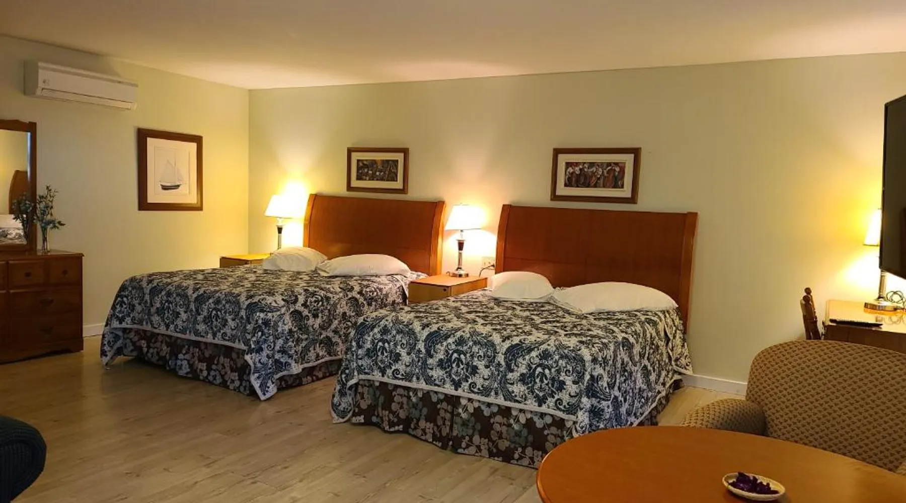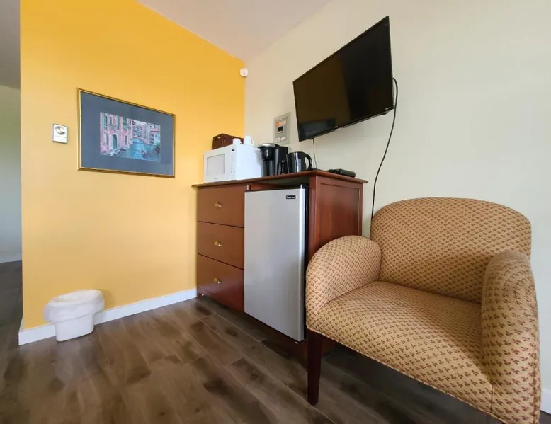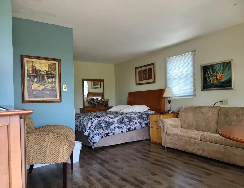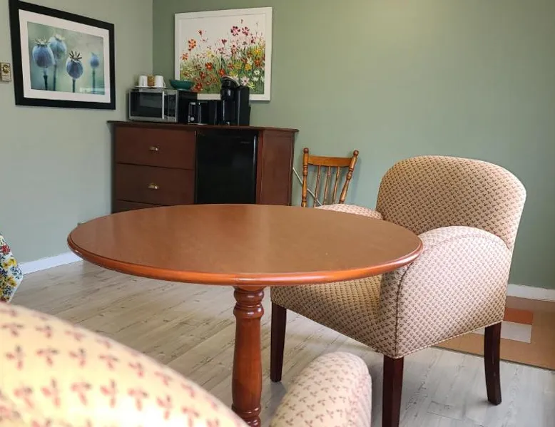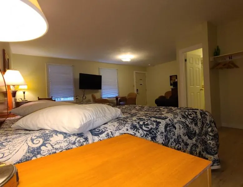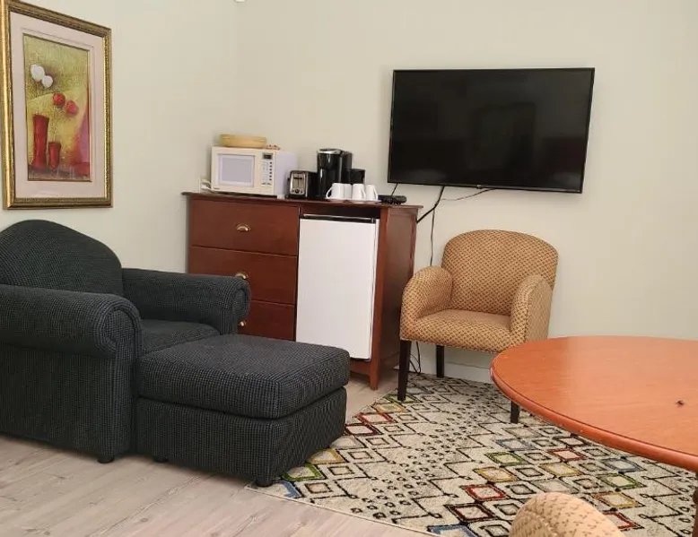 Comfortable Accommodations: Bouctouche Bay Inn in Bouctouche offers family rooms with private bathrooms, air-conditioning, and river views. Each room includes a balcony, sofa bed, and free WiFi. Outdoor Amenities: Guests can relax on the sun terrace or in the garden, enjoy the outdoor fireplace, and utilize the shared kitchen and outdoor seating area. The property also features a picnic area and bicycle parking. Convenient Facilities: The motel provides free on-site private parking, a dining area, and a work desk. Additional amenities include a barbecue, tea and coffee maker, and free toiletries. Activities and Location: Located 28 mi from Greater Moncton Roméo LeBlanc International Airport, the inn offers fishing, hiking, and cycling. Highly rated for room cleanliness, staff support, and comfort. This family room features a toaster, dining area and air conditioning. NOT PET FRIENDLY ROOM