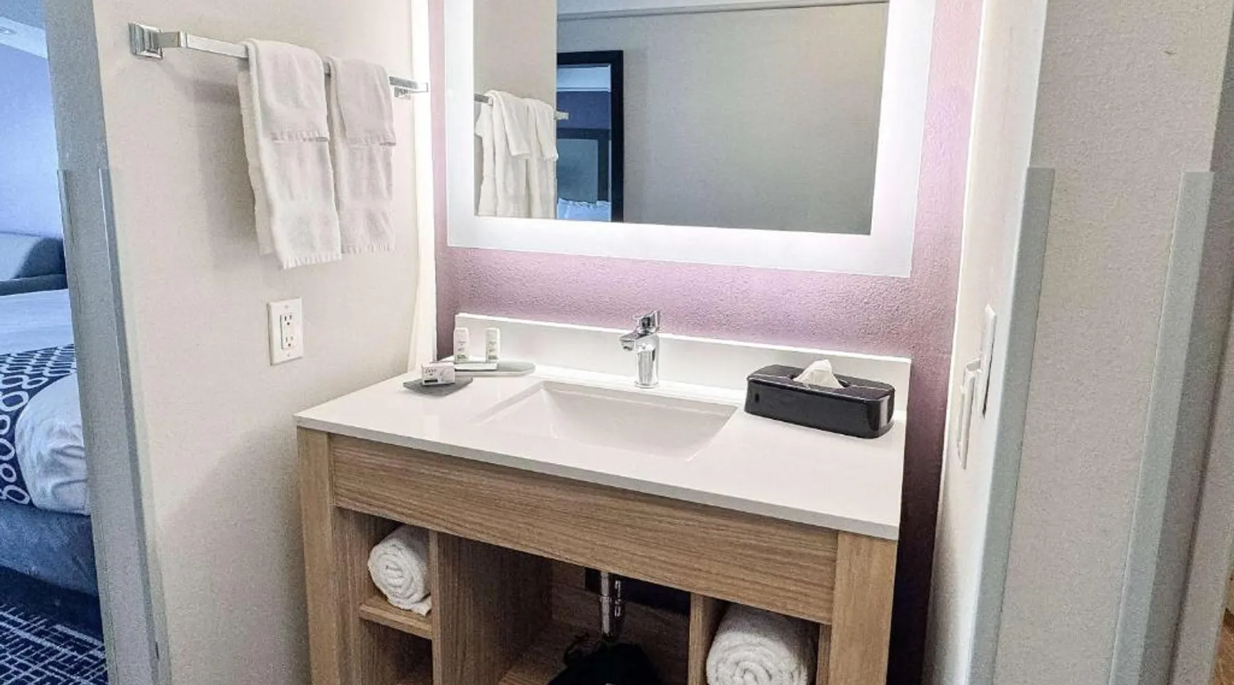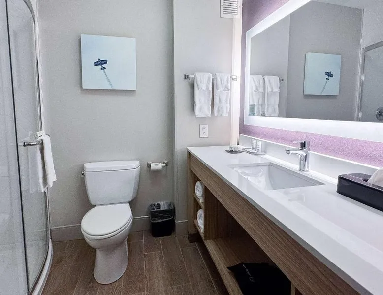 Located 6 miles from Cincinnati-Northern Kentucky International Airport, this hotel has an indoor pool and airport shuttle services. Downtown Cincinnati is 13 miles away. Each room at the La Quinta Inn & Suites Cincinnati Airport Florence features free Wi-Fi, cable TV, a microwave, and a refrigerator. Select suites offer a kitchenette or a sofa bed. Guests can work out in the on-site fitness center or visit the business center. The Cincinnati Airport La Quinta Inn has on-site laundry facilities. A daily continental breakfast is served in the lobby. Northern Kentucky University is a 20 minute drive from the hotel. The Newport Aquarium is 14 miles away. The Creation Museum is a 20 minute drive from the property. Featuring free toiletries, this double room includes a private bathroom with a bath, a shower and a hairdryer. The air-conditioned double room features a flat-screen TV with cable channels, a tea and coffee maker, a wardrobe and a tiled floor. The unit has 2 beds.