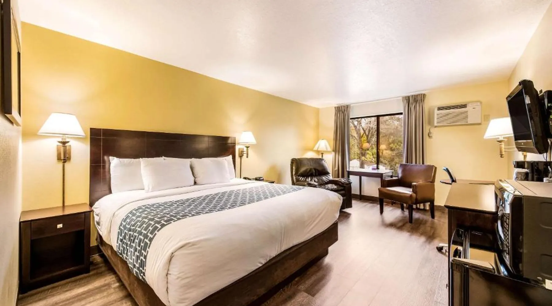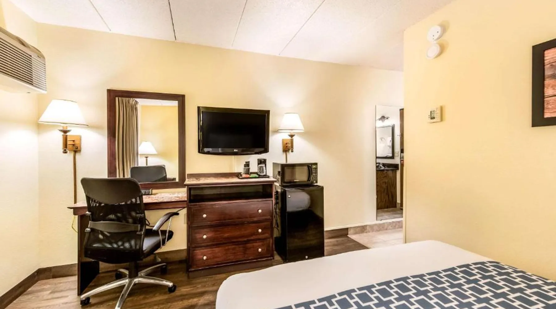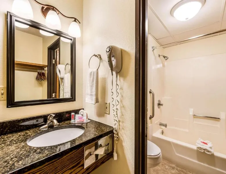 The 100 percent nonsmoking Econo Lodge® hotel is located near the Apache Mall, the Mayo Clinic, Mayo Civic Center, Olmsted County Fairgrounds and Graham Arena Complex, a hockey and event center. The Rochester International Airport is six miles from this hotel. The Mayo Clinic offers an art and architecture tour. Guests can also visit the Gilded Star Gallery, Rochester Art Center and Taylor-Gebler Gallery for a taste of local creativity. There are over 60 miles of paved bike trails winding throughout the city of Rochester. The hotel provides shuttle service to the Mayo Clinic and to St. Mary's Hospital Monday through Friday. This hotel offers many amenities, including free wireless high-speed Internet access, free continental breakfast, free 24-hour coffee service, free local and long distance calling in the continental U.S. Business travelers can appreciate high-speed wireless connections and access to copy and fax services. All guest rooms include refrigerators, microwaves, hair dryers and cable television with HBO. Coin-operated laundry facilities are provided for guest convenience. The hotel has plenty of free parking. This room features a flat-screen TV, microwave, refrigerator and coffee maker. A hairdryer is also included.