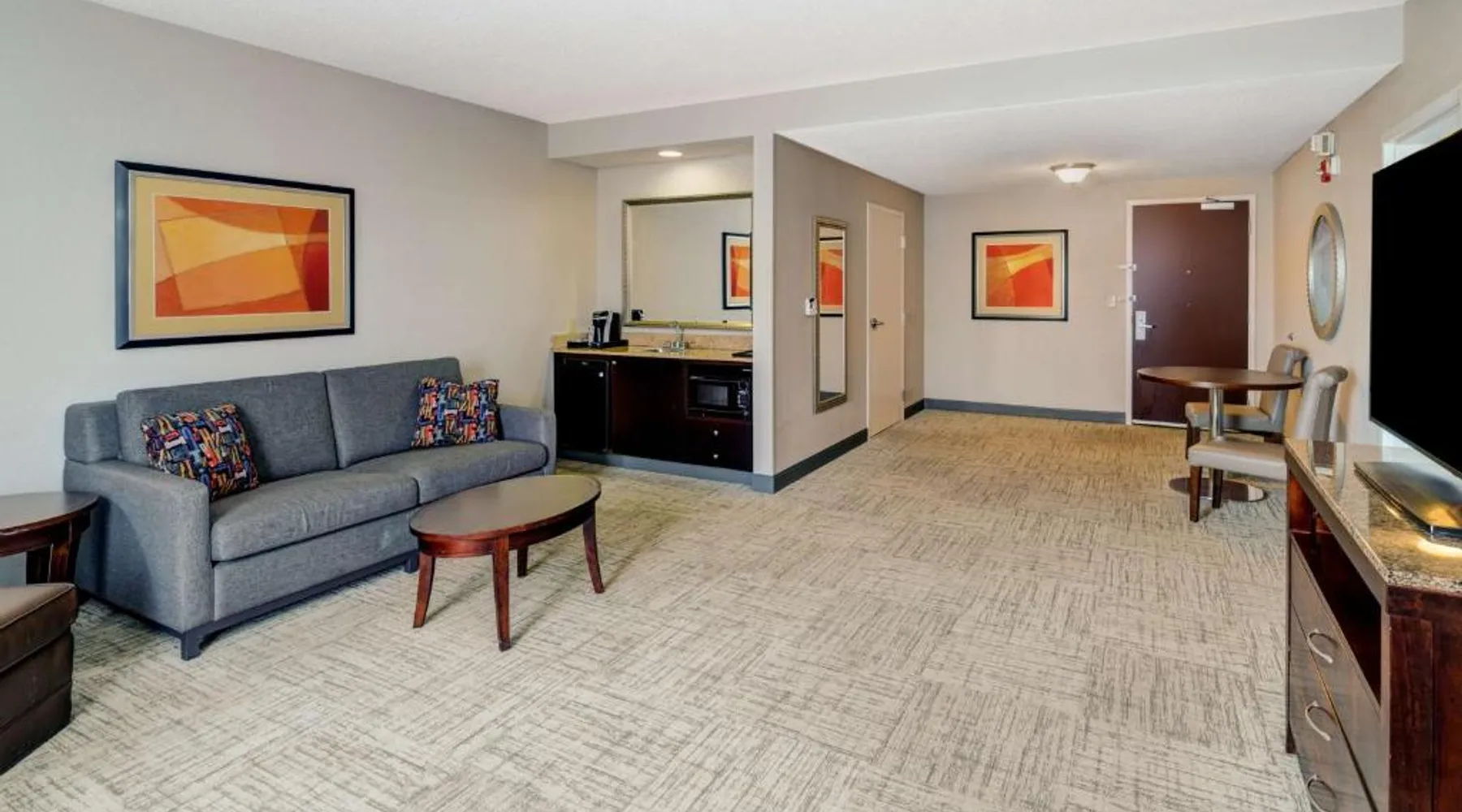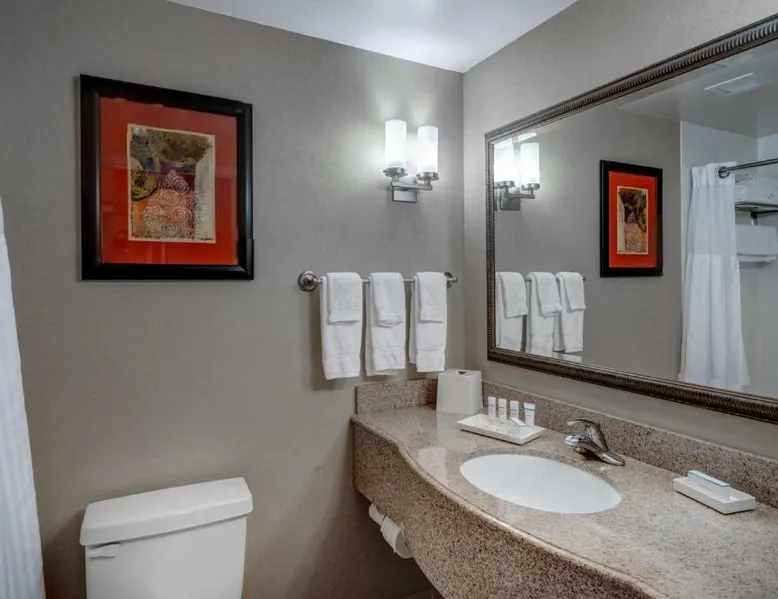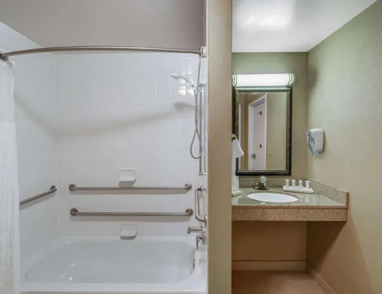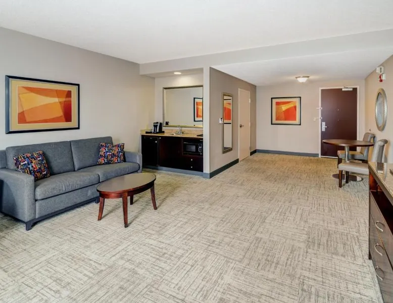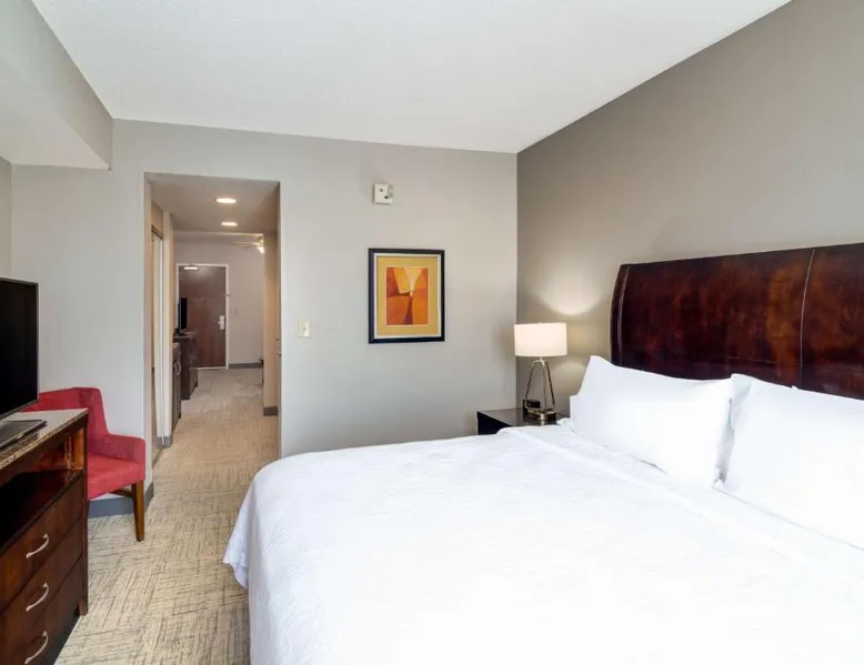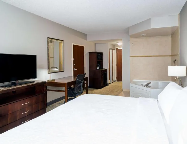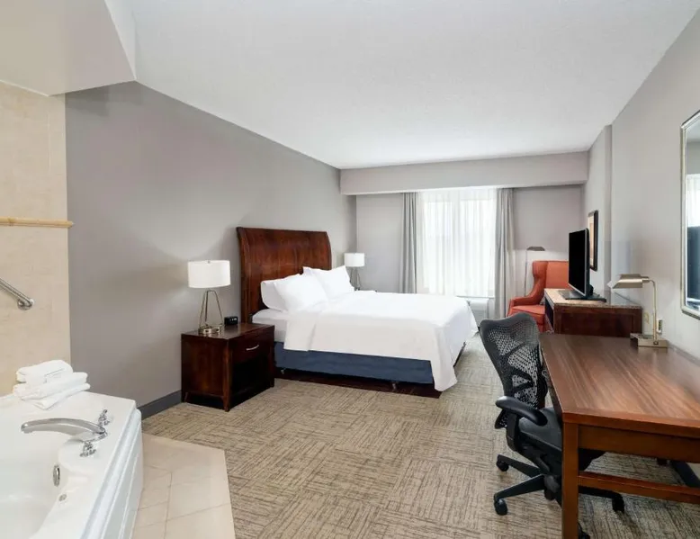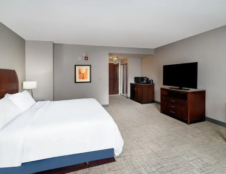 Comfortable Accommodations: Hilton Garden Inn Augusta in Augusta offers family rooms with air-conditioning, free WiFi, and modern amenities. Each room includes a work desk, refrigerator, and TV. Exceptional Facilities: Guests can enjoy a fitness center, indoor swimming pool, sun terrace, and hot tub. Additional facilities include a lounge, outdoor fireplace, and business area. Dining Experience: The family-friendly restaurant serves American cuisine for dinner. A child-friendly buffet is available, and breakfast is provided as an American buffet. Prime Location: Located 16 mi from Augusta Regional Airport, the hotel is near attractions such as Augusta Golf Club (2.1 mi) and Augusta National Golf Club (3.7 mi). Free on-site parking is provided. This suite features a microwave, refrigerator, and a flat-screen TV with cable.