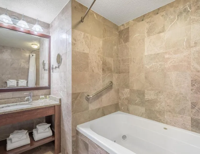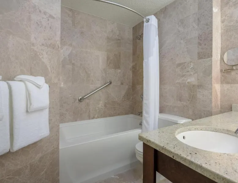 Comfortable Accommodations: Holiday Inn Cape Cod - Hyannis by IHG in Hyannis offers family rooms with air-conditioning, private bathrooms, and modern amenities. Each room includes a tea and coffee maker, refrigerator, work desk, and free toiletries. Dining and Leisure: The family-friendly restaurant serves American cuisine for dinner. Guests can relax at the sun terrace, seasonal outdoor swimming pool, indoor pool, fitness center, and bar. Free WiFi is available throughout the property. Convenient Location: Located 0.6 mi from Cape Cod Gateway Airport, the hotel is near attractions such as Sandwich Glass Museum (12 mi), Heritage Museums & Gardens (13 mi), and Cape Cod National Seashore (30 mi). Free on-site private parking is provided. Guest Services: The hotel offers a 24-hour front desk, daily housekeeping, room service, and express check-in and check-out. Additional amenities include a minimarket, coffee shop, and electric vehicle charging station. Located on the lower level, this suite features a king bed and a sofa bed with two full bathrooms. This suite has a private patio, Kuerig coffee maker and refrigerator.