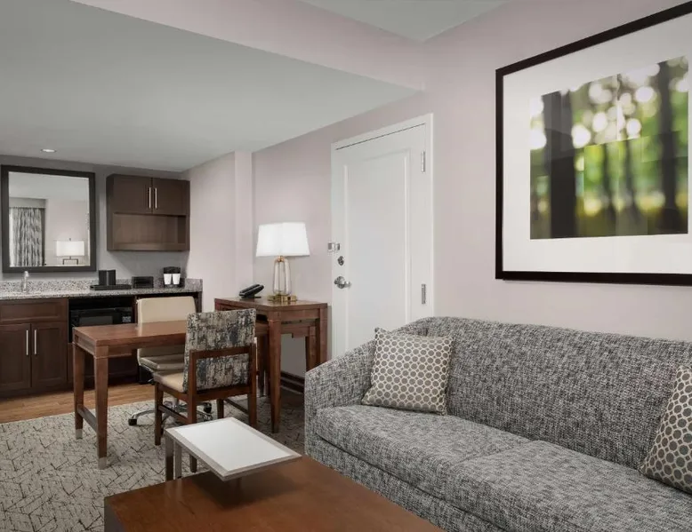 Located off of the Henry G. Shirley Memorial Highway (Interstate 95), this Springfield hotel offers a complimentary grab-and-go breakfast and an outdoor pool. Arlington city center is 13 mi away. Free WiFi, a refrigerator, and a microwave are provided in each room at this Springfield Embassy Suites. Extras include a flat-screen TV with satellite channels, and free toiletries in the private bathroom. All guests are invited to a nightly evening reception with complimentary snacks and beverages. A fitness center is on site as well at Embassy Suites Springfield. Lake Accotink Park is 15 minutes’ drive from the property. Mount Vernon is 7 mi away. This suite features a microwave and a refrigerator.