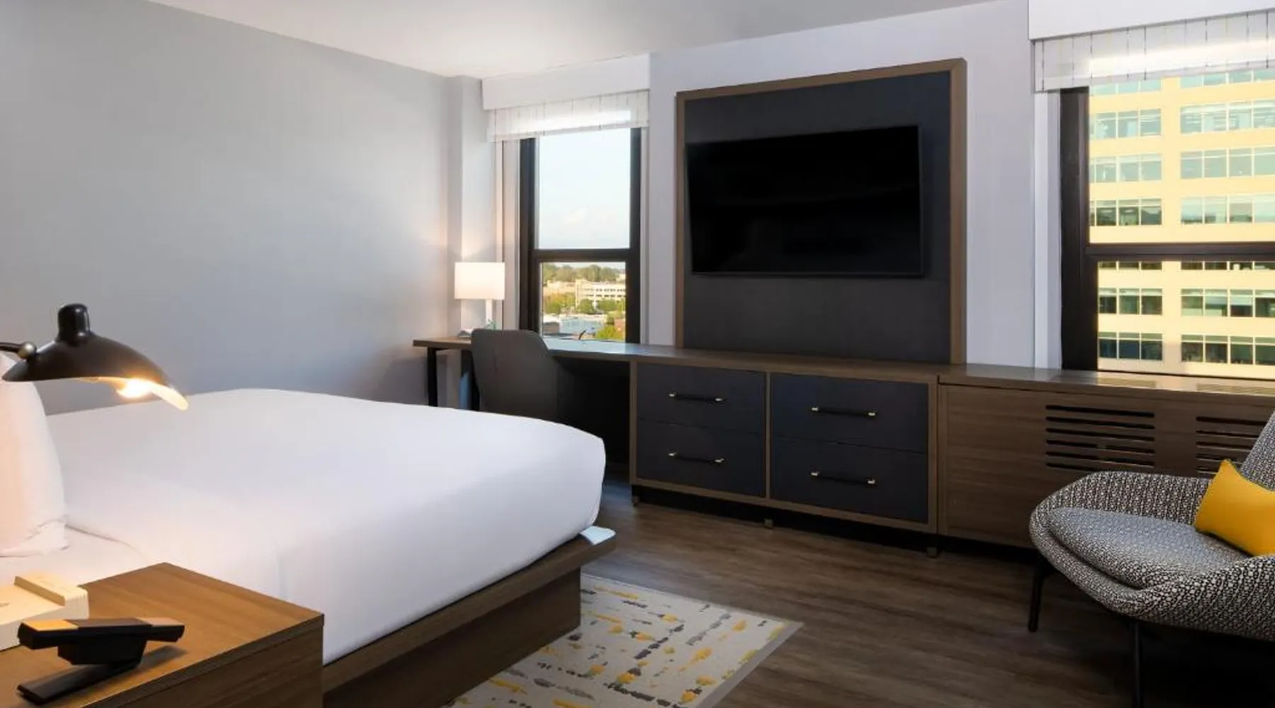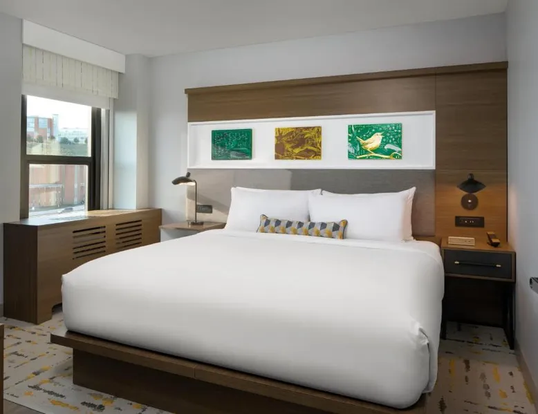 Comfortable Accommodations: Hotel Indigo Chattanooga - Downtown by IHG in Chattanooga offers air-conditioned rooms with private bathrooms, tea and coffee makers, and free WiFi. Each room includes a work desk, TV, and parquet floors. Dining and Leisure: The modern restaurant serves American cuisine with local specialties, warm dishes, and fruits. Guests can also enjoy a bar and outdoor seating area. Additional facilities include a fitness center, sun terrace, and garden. Prime Location: Located in the city center, the hotel is less than 0.6 mi from Tennessee Aquarium and Hunter Museum of American Art. Chattanooga Metropolitan Airport is 9.3 mi away. Nearby attractions include Chattanooga Riverwalk and Walnut Street Bridge. Guest Services: Highly rated for its attentive staff, convenient location, and room cleanliness, the hotel offers a 24-hour front desk, business area, and paid on-site private parking. Featuring free toiletries, this suite includes a private bathroom with a shower and a hairdryer. This suite has air conditioning, a tea and coffee maker, flat-screen TV with cable channels, as well as wine/champagne for guests. The unit has 1 bed.