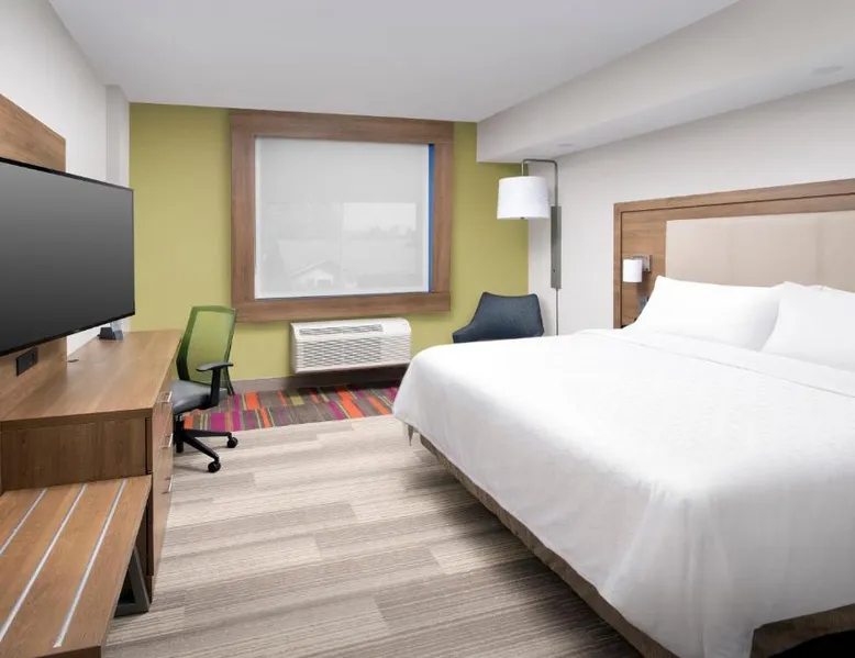 Less than 1 mile from the beautiful beaches on the Atlantic Ocean, this Jacksonville Beach hotel features an outdoor pool and spacious rooms with free Wi-Fi and a flat-screen cable TV. All modern rooms at the Holiday Inn Express Jacksonville Beach include a work desk, microwave and refrigerator. A coffee maker is provided in all rooms. Guests can enjoy free access to the on-site fitness room and business center. The free, hot breakfast selection includes eggs, breakfast meats, pancakes and more. Adventure Landing Amusement Park is less than 5 minutes' drive from this hotel and the Jacksonville Beach Golf Club is 1.3 miles away. Beaches History Museum is around a 10-minute walk away. Bed type preference cannot be guaranteed as it will be allocated upon arrival based on availability.