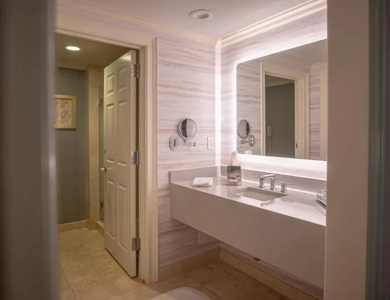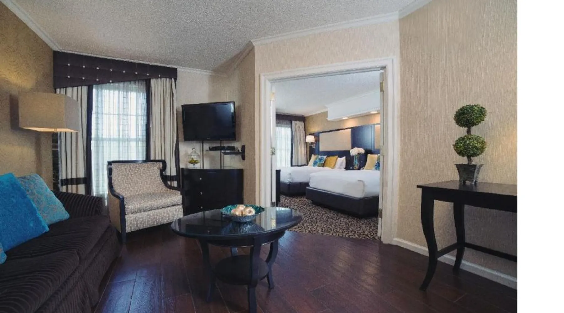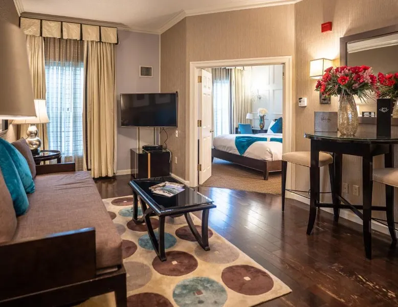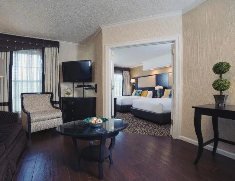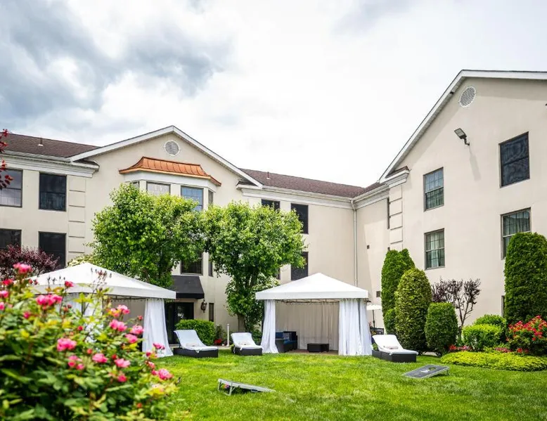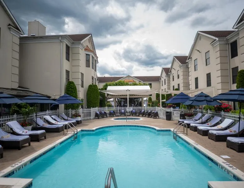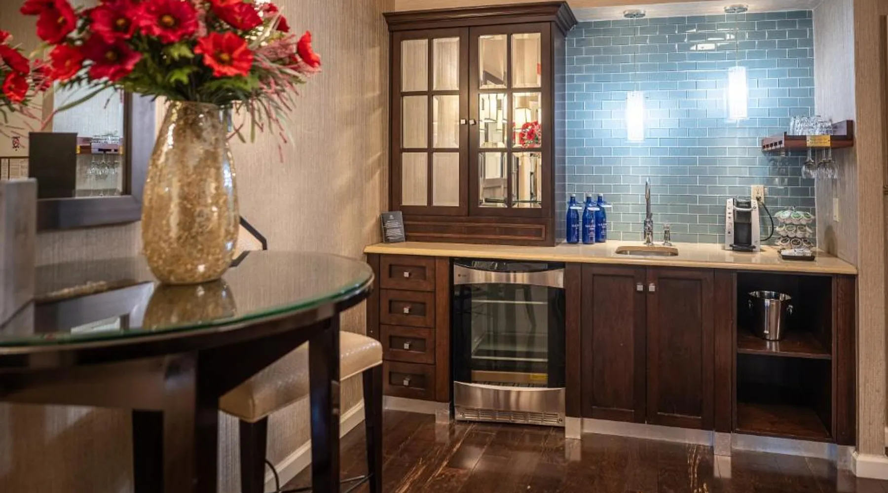 Providing elegant all-suite accommodations furnished with fully equipped kitchens, this Woodbury, New York hotel is located on the North Shore of Long Island and is surrounded by local attractions. Free Wi-Fi is provided to all guests. Guests at The Inn At Fox Hollow Hotel are offered a daily full American breakfast. Complimentary dinner is served from Mondays through Thursdays (excluding holidays).. An on-site Bar and Lounge is located off the main reception. Lounge by the outdoor swimming pool or relax in the outdoor courtyard, complete with beautiful gardens. Enjoy in-room flat-screen TVs. Additional amenities at Fox Hollow include a 24-hour fitness center and on-site boutiques. The on-site award-winning Volpe Restaurant and Lounge serves Italian cuisine for dinner. The bar area is open 7 days a week. Guests at The Inn At Fox Hollow Hotel can discover a number of historic sites, local shopping centers and top-rated golf courses in the surrounding areas. A wine country and scenic hiking trails are also available nearby. Central Melville is 10 minutes' drive away. The spacious double room features air conditioning, a tea and coffee maker, as well as a private bathroom boasting a shower and a hairdryer. Guests can make meals in the kitchen that has a refrigerator, a dishwasher, kitchenware and a microwave. The double room provides a wardrobe, a safe deposit box and heating. The unit has 2 beds.