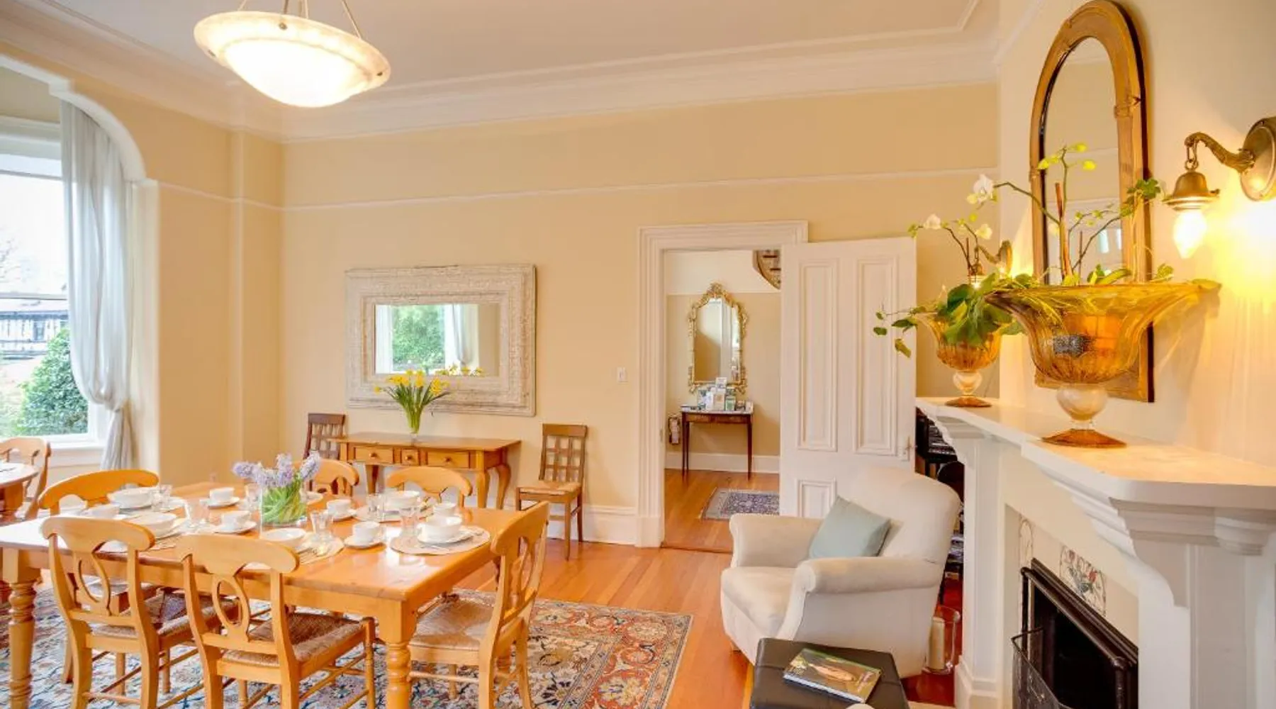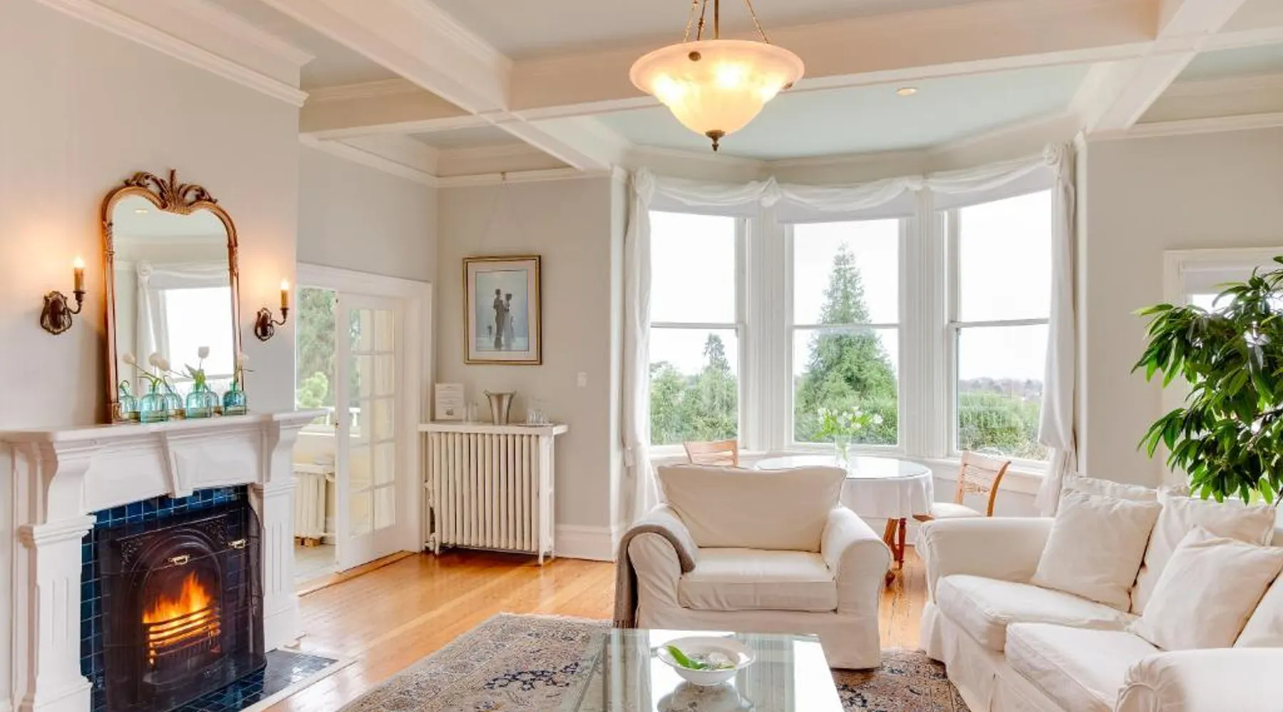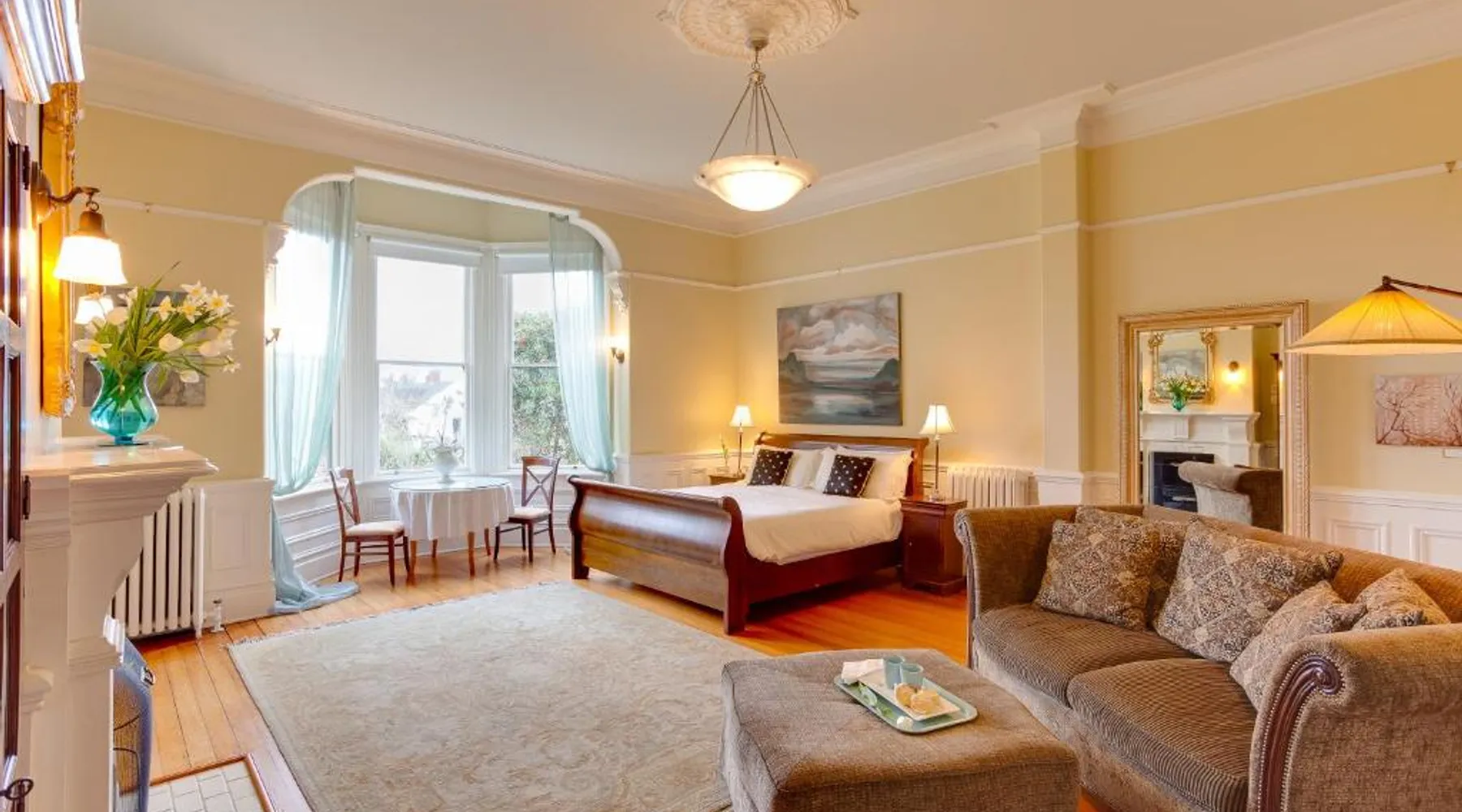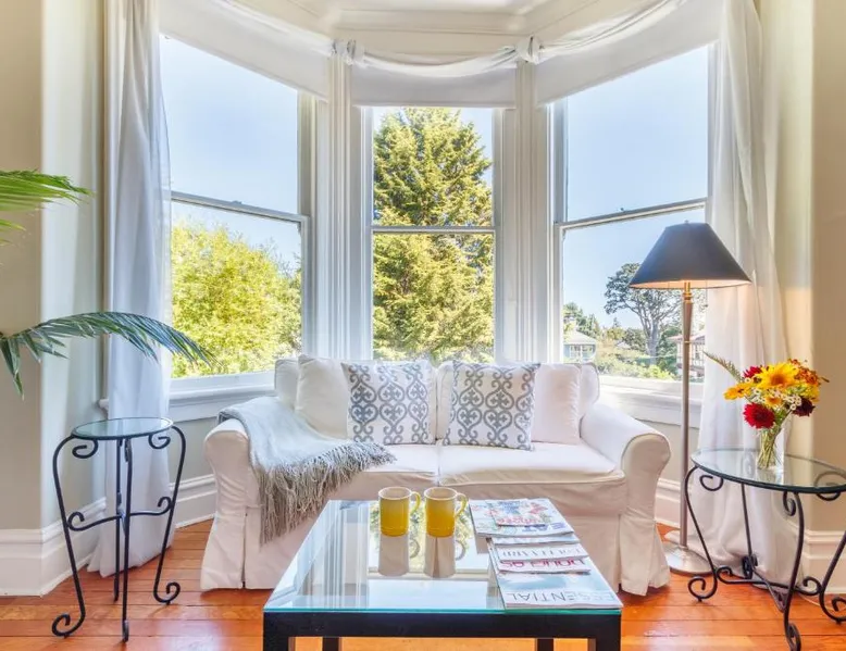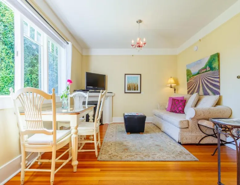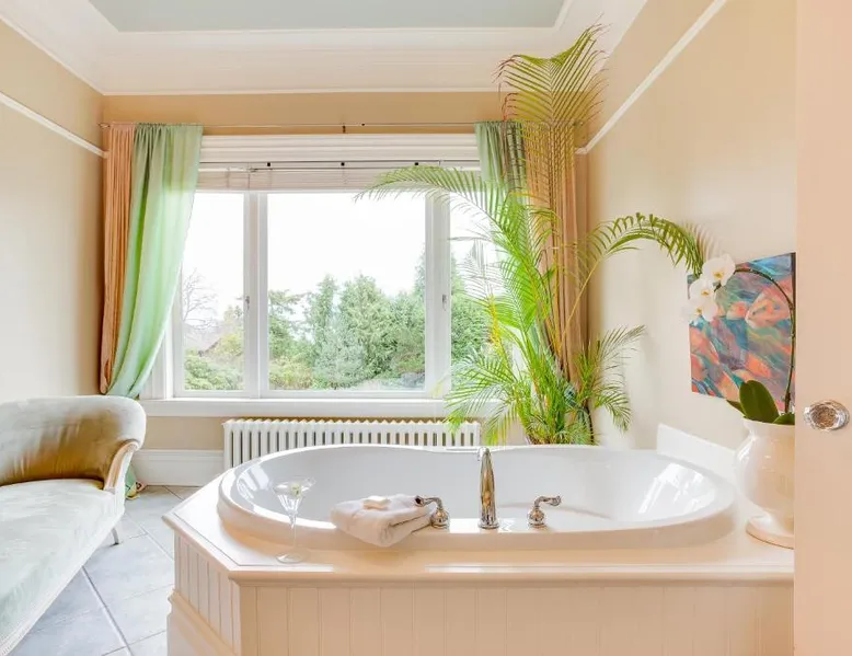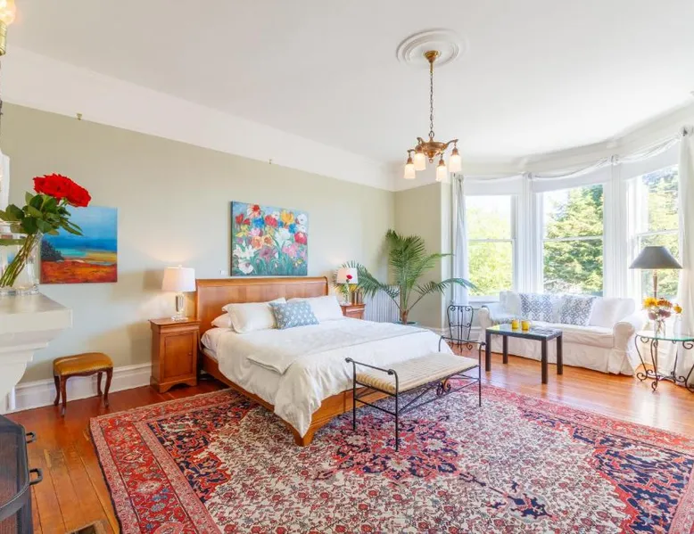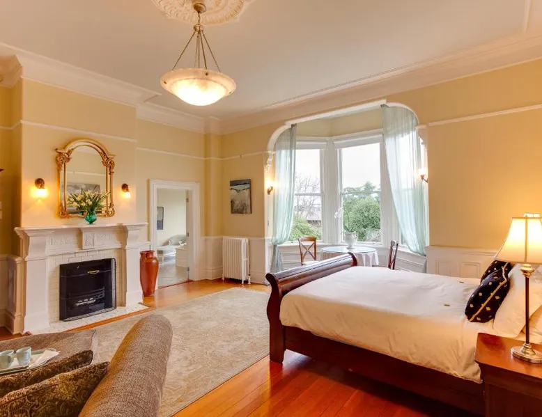 This adult only 110-year-old Italian mansion in historic Victoria is adjacent to the Government House and Gardens. It features a daily homemade breakfast and luxury rooms with a 2-person jetted tub. The elegant rooms at Fairholme Manor are styled with hardwood floors and clean white walls. Each room features a TV and VCR, small refrigerator and bathrobes. Many boast 12-foot ceilings or large bay windows. Guests can enjoy a deluxe breakfast including homemade jams, fresh baked scones and fresh fruit, in the bright dining room or on the porch. Fairholme Manor Inn uses its own homegrown vegetables along with produce from local farms. This European-style B&B features 1 acre of lush gardens overlooking the Olympic Mountains and Juan de Fuca Straits. In-room massages can be arranged and free Wi-Fi is available for added convenience. Craigdarroch Castle is just a 5-minute walk from this inn and the Royal British Columbia Museum is 1.5 mi away. Large suite features a separate living room and dining area. Also full ocean and mountain views. Free Wi-Fi and a flat-screen TV are provided.