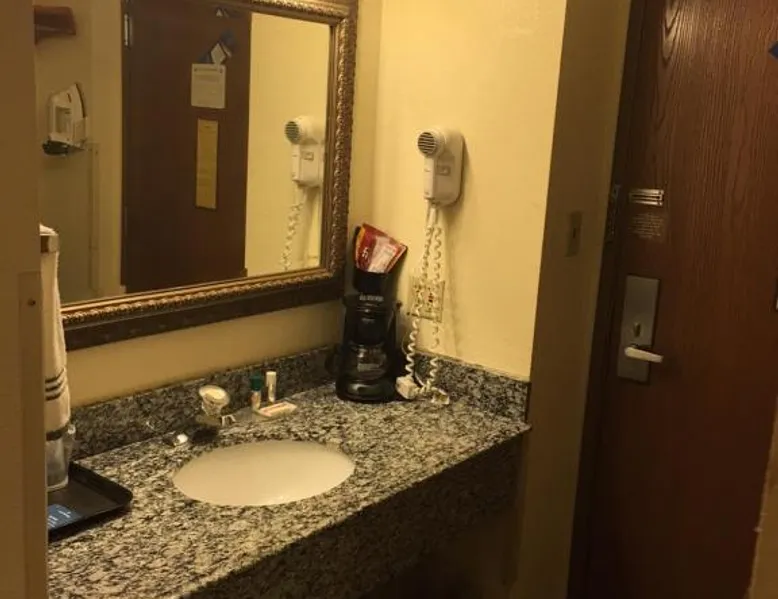 Comfortable Accommodations: Baymont by Wyndham Paducah in Paducah offers comfortable rooms with air-conditioning, private bathrooms, and free WiFi. Each room includes a tea and coffee maker, hairdryer, seating area, free toiletries, bath or shower, carpeted floors, and a TV. Convenient Facilities: Guests benefit from a elevator, 24-hour front desk, full-day security, and room service. Free on-site private parking is available. The hotel is 4.3 mi from Barkley Regional Airport and close to attractions such as Noble Park and Alben Barkley Museum. Guest Satisfaction: Visitors appreciate the bed comfort, value for money, and bathroom comfort. The spacious double room features a private bathroom, air conditioning, a tea and coffee maker, as well as a seating area with a flat-screen TV. The double room provides a carpeted floor and heating. The unit offers 1 bed.
