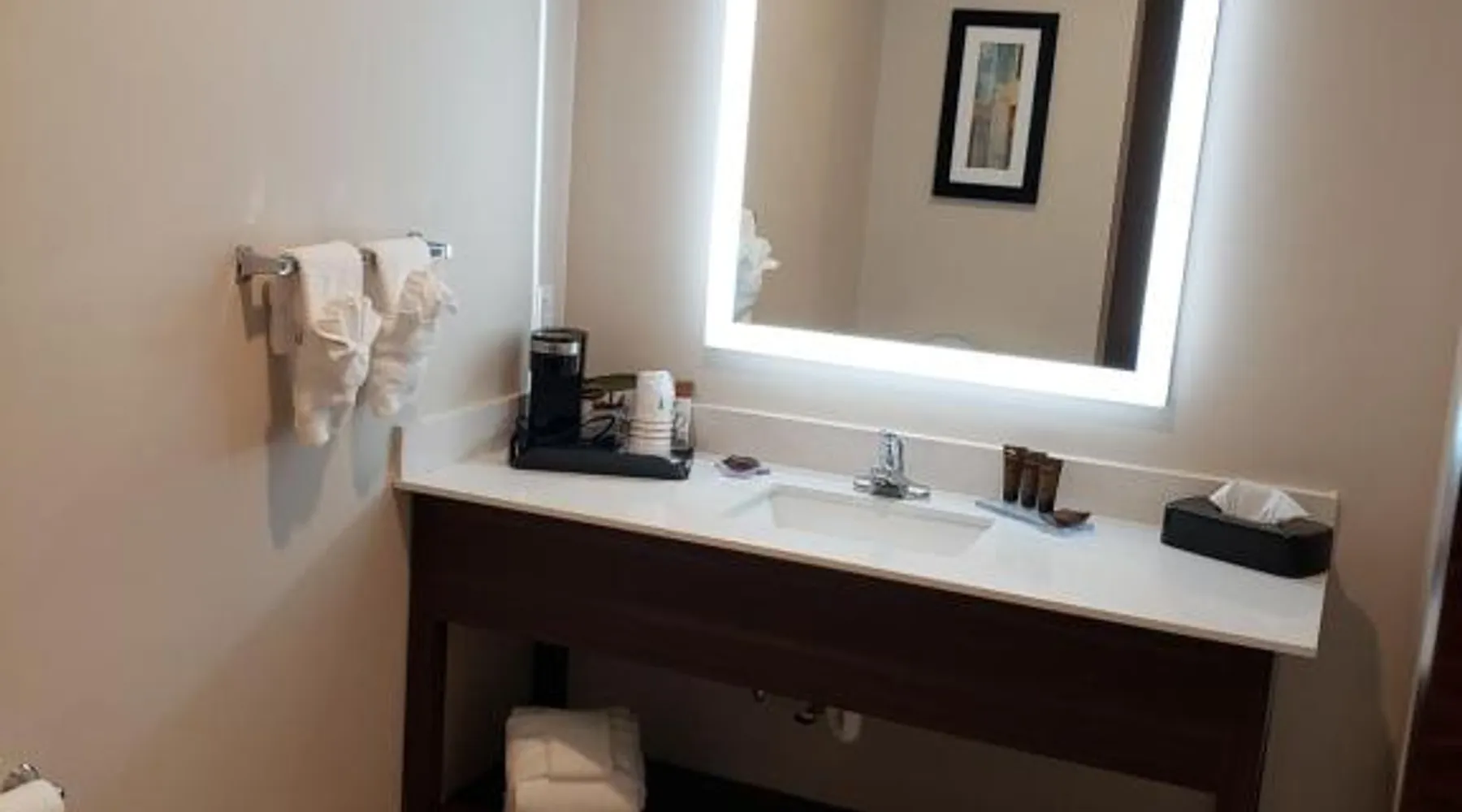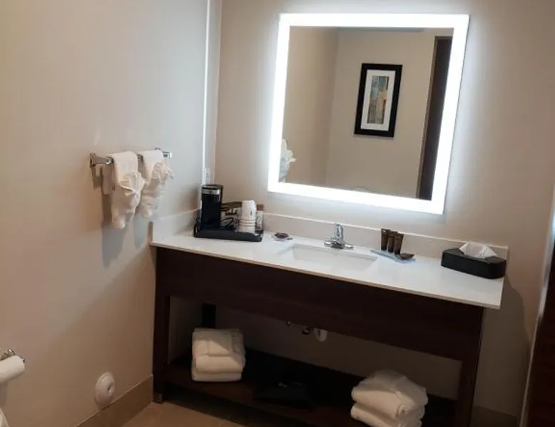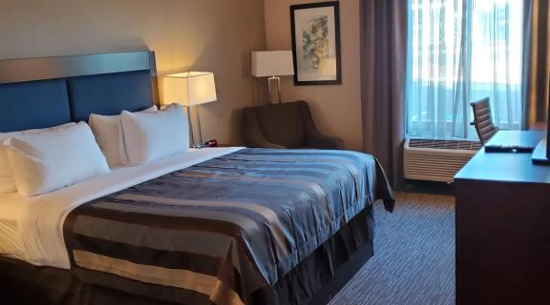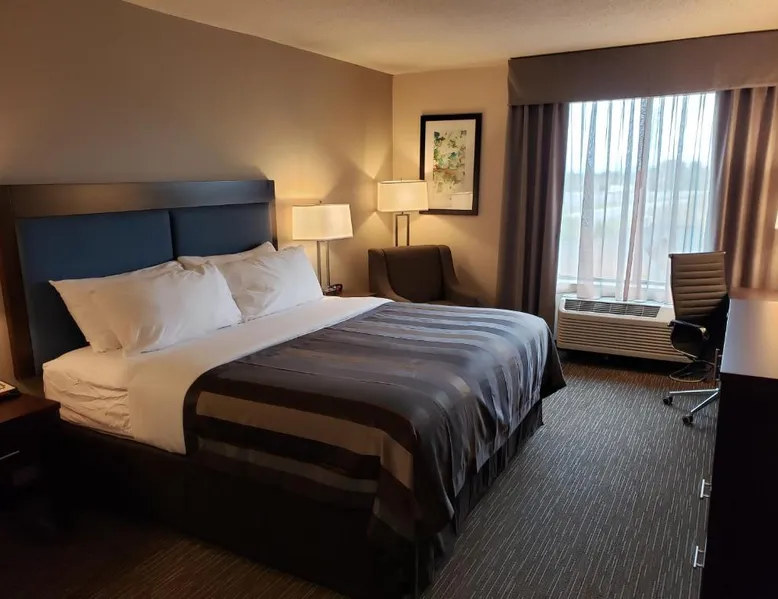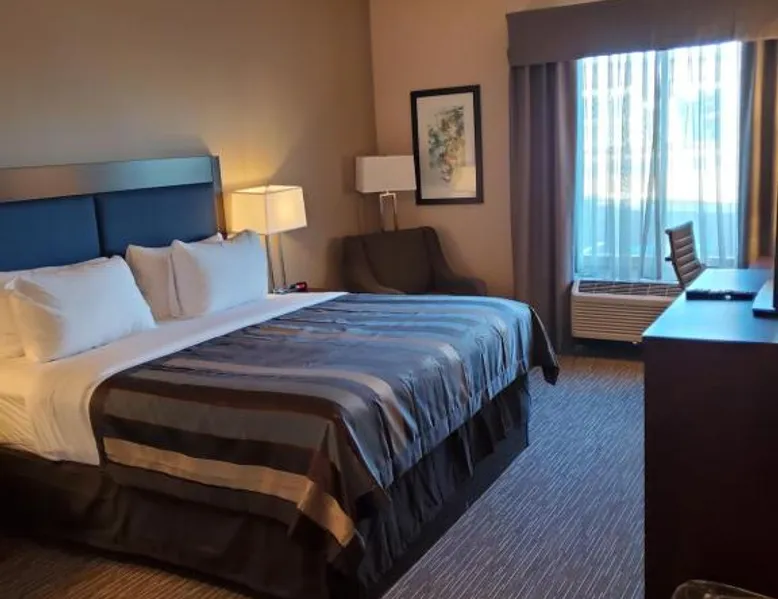 Comfortable Accommodations: Wingate by Wyndham Christiansburg in Christiansburg offers air-conditioned rooms with private bathrooms, tea and coffee makers, and free WiFi. Each room includes a work desk, refrigerator, microwave, and TV. Facilities and Services: Guests can enjoy a fitness center, lounge, and 24-hour front desk with express check-in and check-out services. Free on-site private parking is available, along with a elevator for easy access. Breakfast and Dining: A continental buffet breakfast is served daily, featuring juice and fruits. The hotel also provides a lounge for relaxation. Location and Attractions: Located 27 mi from Roanoke Airport, the hotel is near Lane Stadium (9.9 mi), English Field (9.9 mi), and Virginia Tech (12 mi). Radford University is 14 mi away. The spacious double room offers air conditioning, a tea and coffee maker, as well as a private bathroom featuring a bath or a shower and a hairdryer. The unit offers 1 bed.
