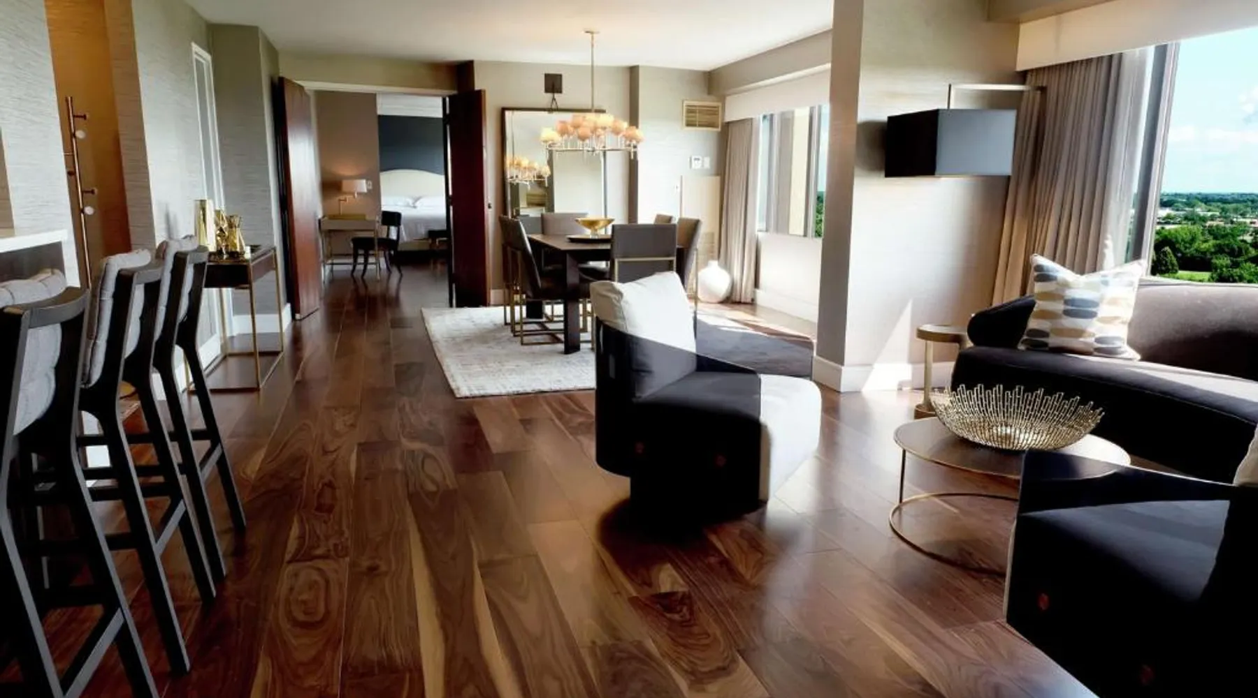This upscale resort in Oak Brook Hills features an 18-hole championship golf course and 2 restaurants. The Morton Arboretum is a 15-minute drive away. The spacious rooms at Hilton Chicago Oak Brook Hills Resort & Conference Center include a lounge chair and cable TV. Guests at the Oak Brook Hills Resort have free access to the indoor and outdoor pools, fully equipped gym and the business center. Willow Crest Golf Club is a 150-acre estate and has an award-winning golf course. B.Restaurant overlooks the golf course and specializes in seasonal cuisine, the Lobby Bar offers a lounge inside the restaurant. Tin Cup Grille features classic American cuisine. Brookfield Zoo and Wheaton College are a 20-minute drive from the Oak Brook Hills Resort. The spacious suite features air conditioning, a tea and coffee maker, a seating area, a safe deposit box, as well as a flat-screen TV with cable channels. The unit has 2 beds.