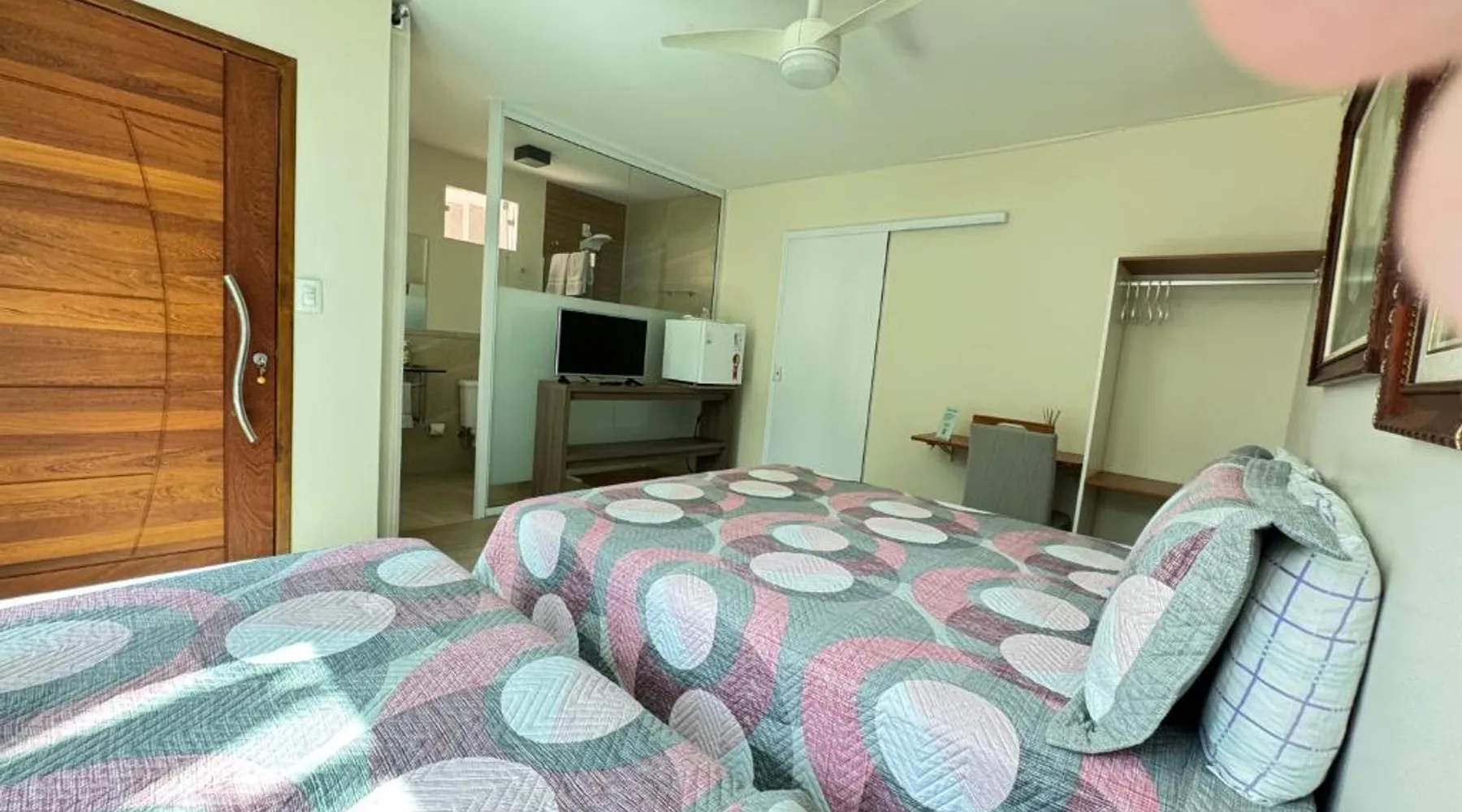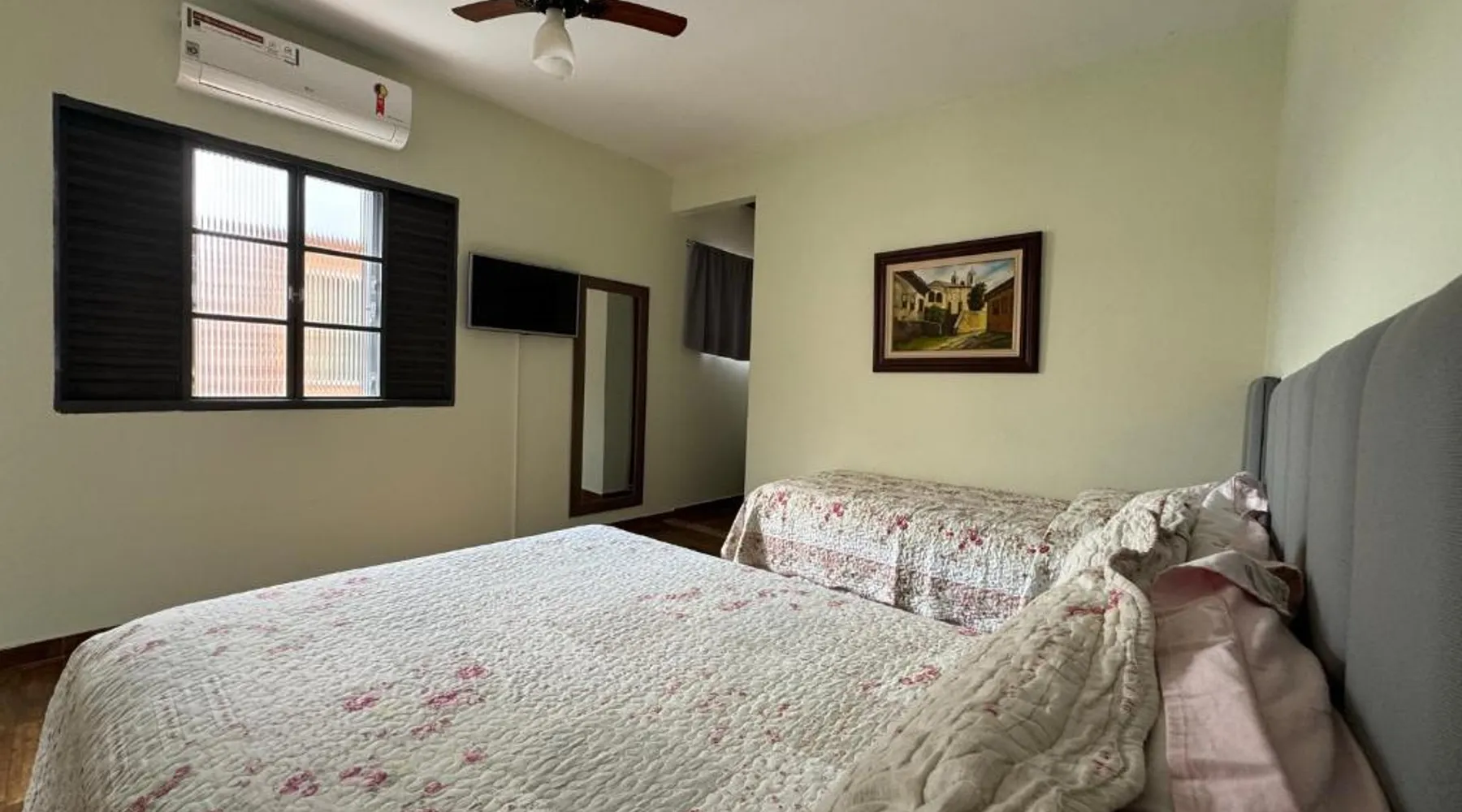 Comfortable Accommodations: Pousada Familiar Vilage Bed & Breakfast Homestay in Volta Redonda offers family rooms with private bathrooms, air-conditioning, and free WiFi. Each room includes a work desk, TV, and wardrobe. Breakfast and Facilities: Guests enjoy a continental buffet breakfast with juice, cheese, and fruits. The homestay provides free toiletries, a mini-bar, and streaming services. Additional amenities include a private entrance, outdoor dining area, and ground-floor unit. Convenient Services: The property offers a paid shuttle service, housekeeping, luggage storage, and a dressing room. Reception staff speak English and Portuguese. Rio de Janeiro/Galeão International Airport is 76 mi away. Providing free toiletries, this double room includes a private bathroom with a shower. The double room provides air conditioning, a private entrance, a mini-bar, a wardrobe, as well as a flat-screen TV with streaming services. The unit offers 1 bed.