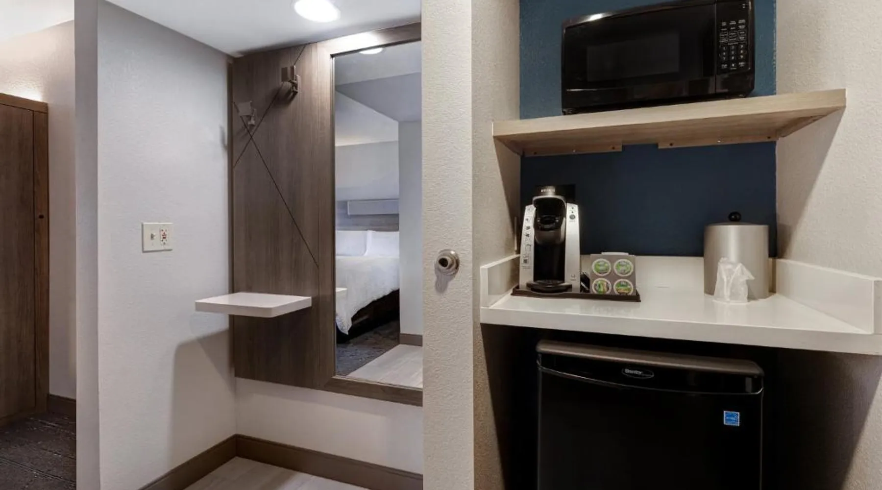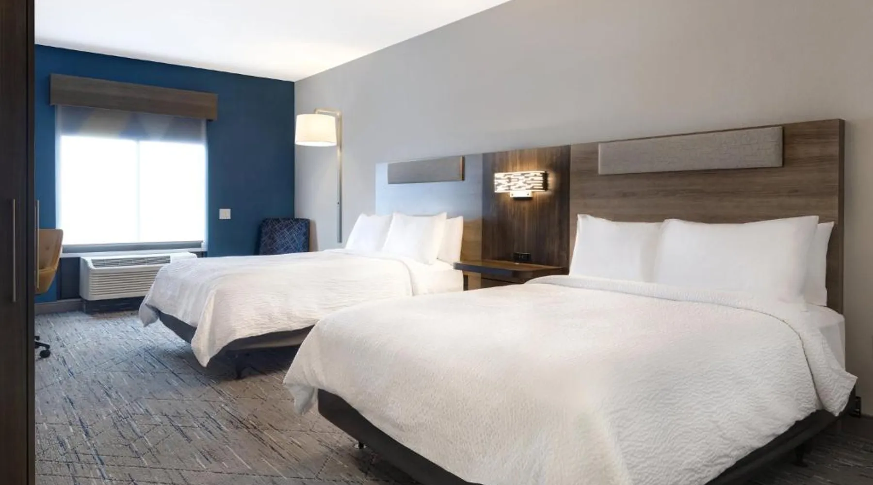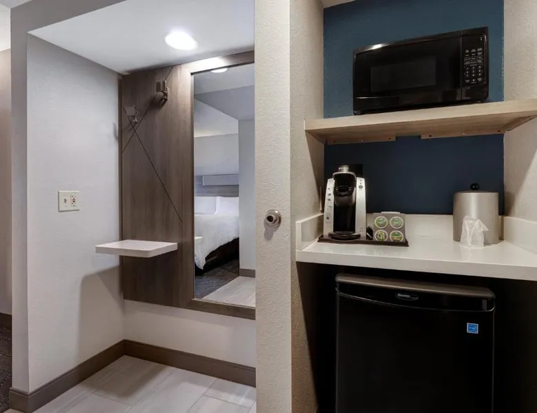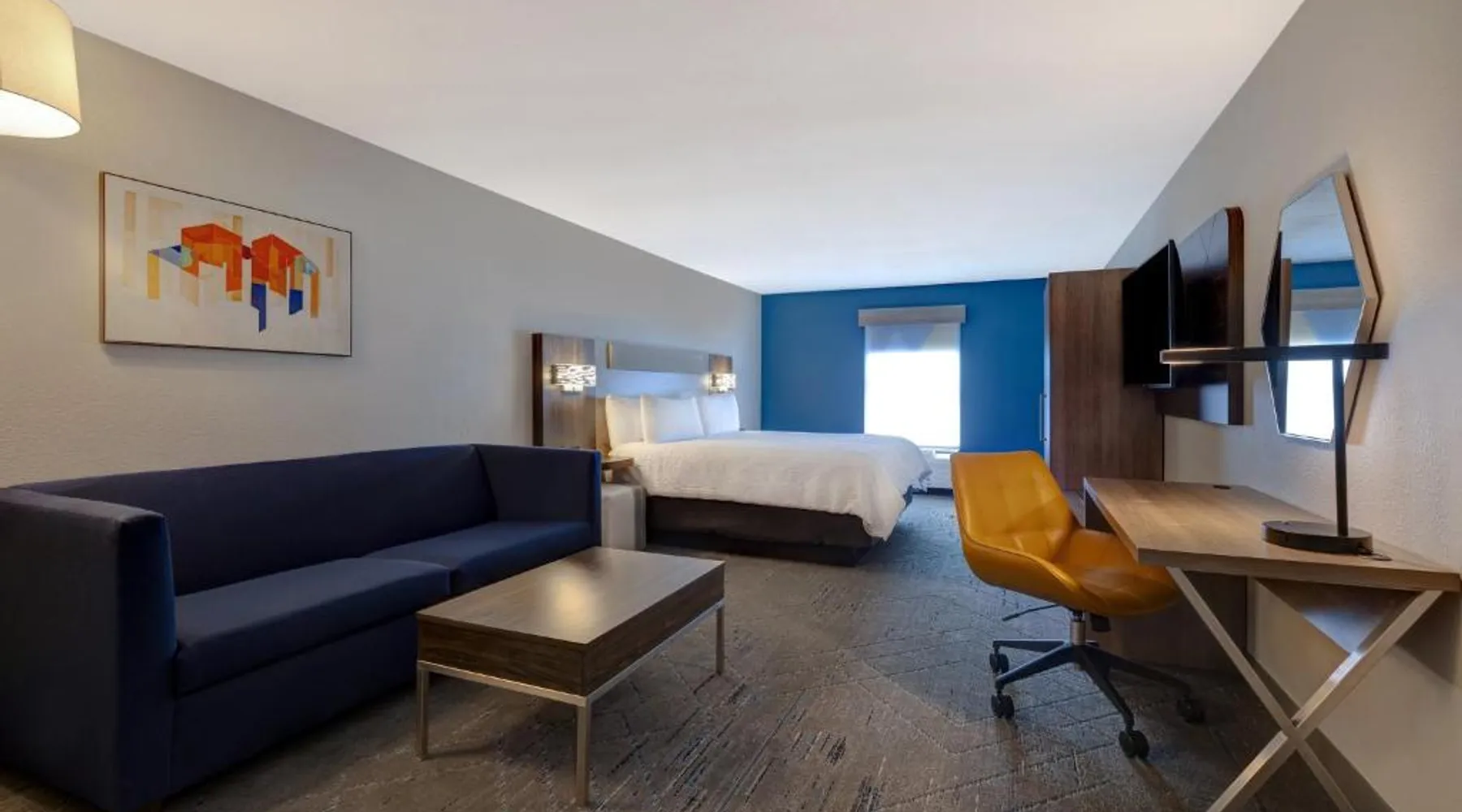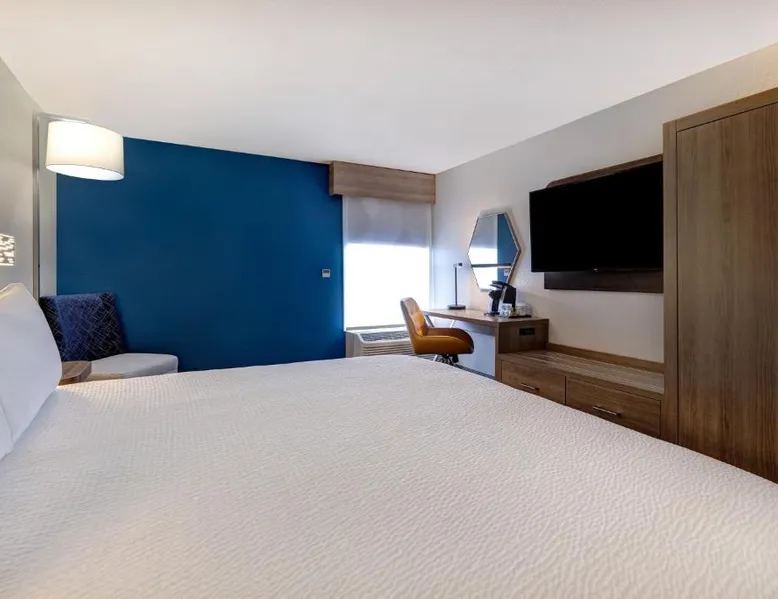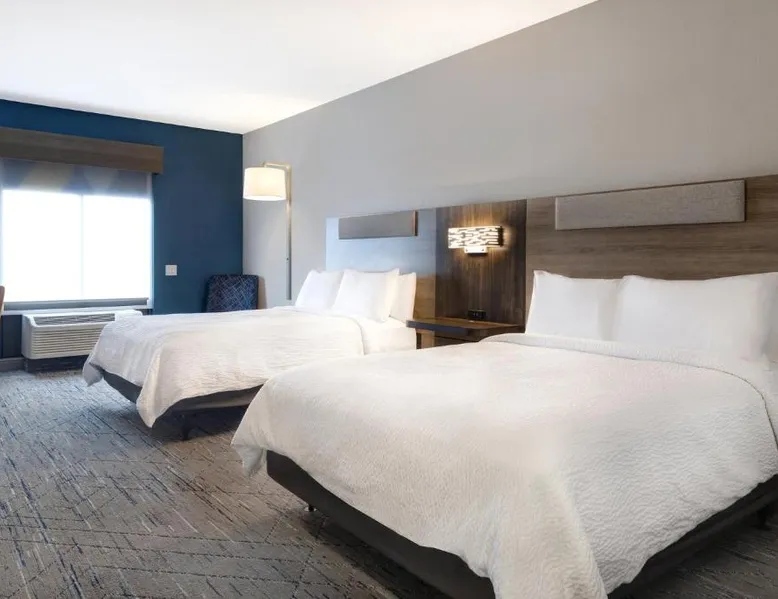 Comfortable Accommodations: Holiday Inn Express & Suites - Kansas City KU Medical Center by IHG in Kansas City offers comfortable rooms with air-conditioning, private bathrooms, and modern amenities. Each room includes a work desk, TV, and free WiFi. Facilities and Services: Guests can enjoy a fitness center, 24-hour front desk, daily housekeeping, and express check-in and check-out services. Free on-site parking is available, along with a continental buffet breakfast featuring fresh pastries, pancakes, fruits, and juice. Prime Location: Located 19 mi from Kansas City International Airport, the hotel is near attractions such as the National World War I Museum at Liberty Memorial (3 mi), Union Station Kansas City (3.1 mi), and Legoland Discovery Center Kansas City (3.1 mi). A restaurant is also in the surroundings. Guest Satisfaction: Highly rated for room cleanliness, convenient location, and location of the property. The spacious double room provides air conditioning and heating, as well as a private bathroom featuring a hairdryer.