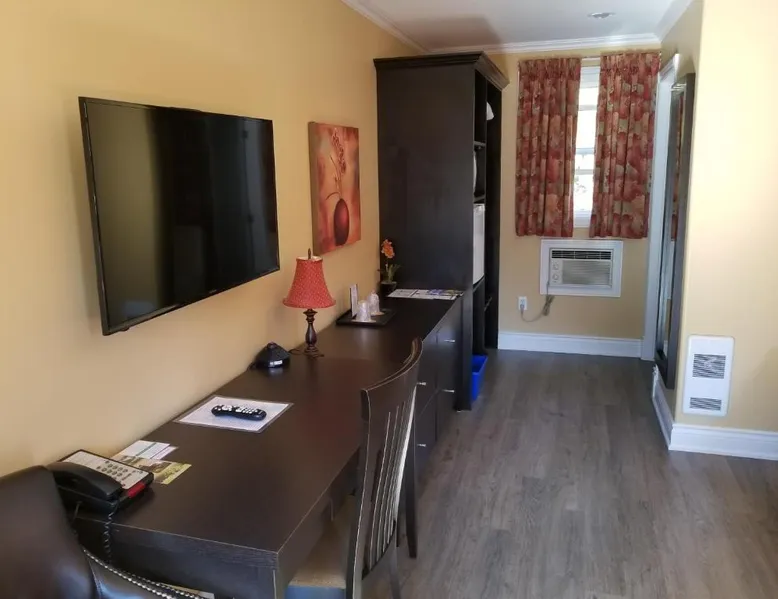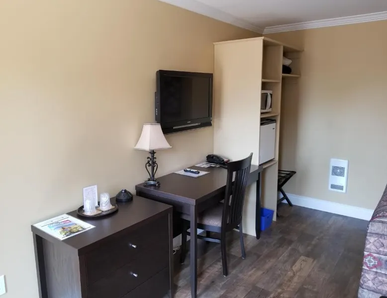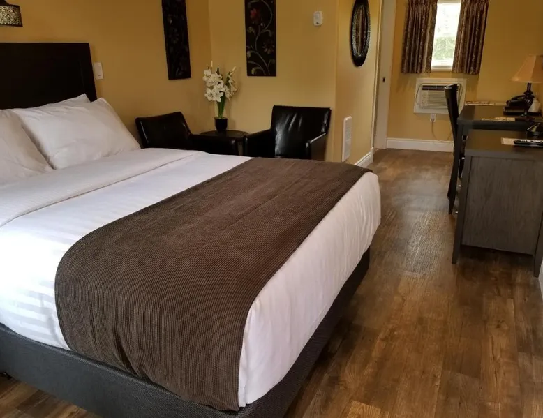 Comfortable Accommodations: Sunny Isle Motel in Summerside offers clean, comfortable rooms with private bathrooms, air-conditioning, and garden views. Each room includes a tea and coffee maker, refrigerator, TV, and free toiletries. Essential Facilities: Guests enjoy a garden and free WiFi, along with an outdoor seating and picnic area. Free on-site private parking is available. Additional amenities include a balcony, patio, work desk, and microwave. Convenient Location: Located 35 mi from Charlottetown Airport, the motel is near attractions such as Red Shores at Summerside Raceway (2.5 mi), Anne of Green Gables Museum (16 mi), Harbourfront Theater (1.9 mi), and Confederation Bridge (24 mi). Guest Satisfaction: Highly rated for room cleanliness, convenient location, and room comfort, the motel ensures a pleasant stay for all visitors. This air-conditioned double room is consisted of of a flat-screen TV with cable channels, a private bathroom as well as a patio. The unit has 1 bed.